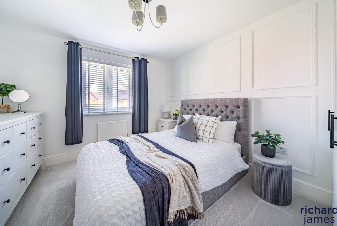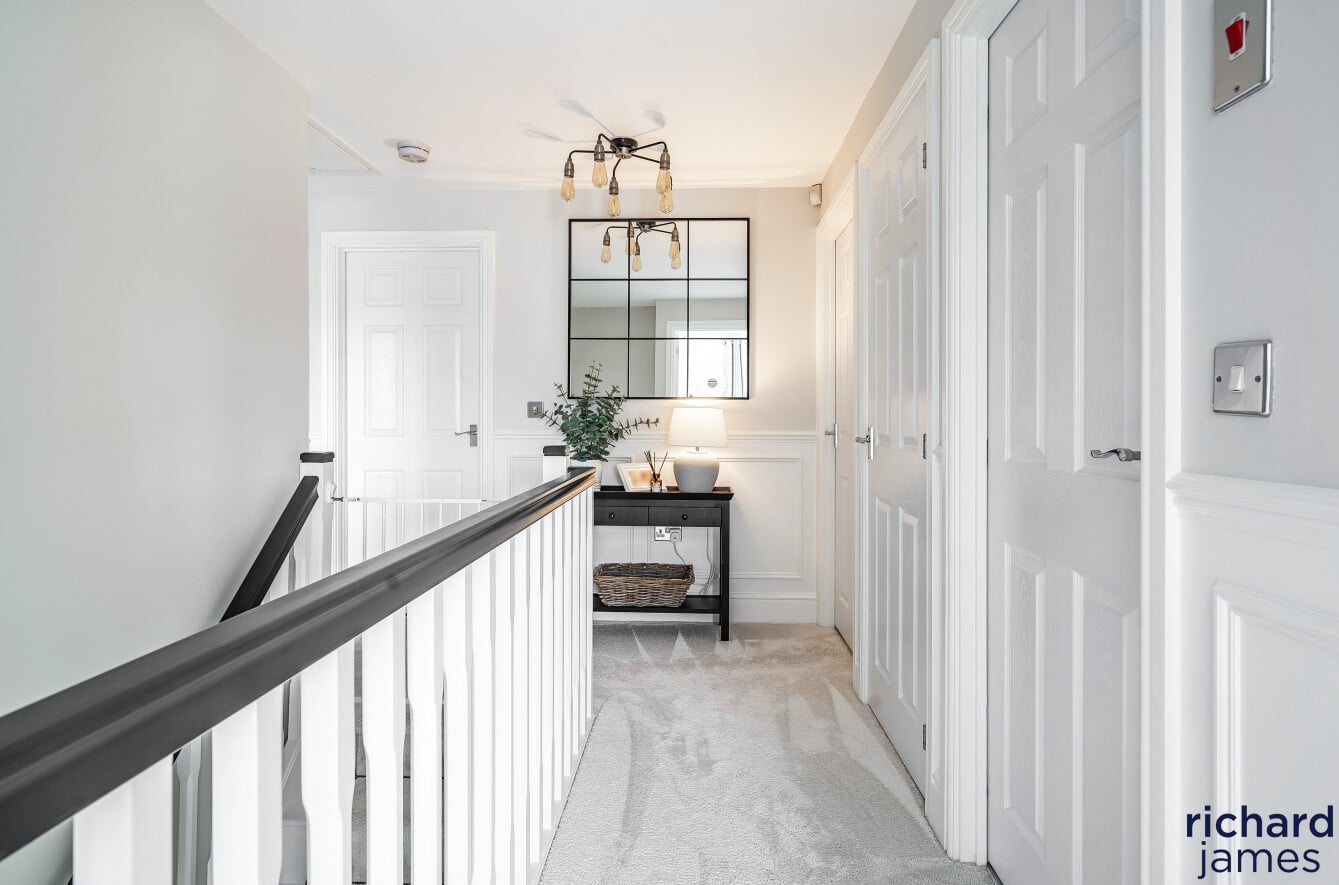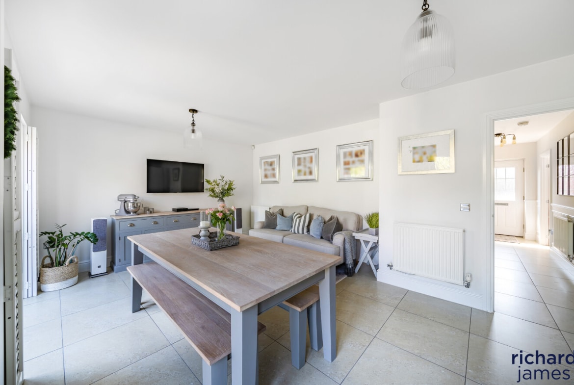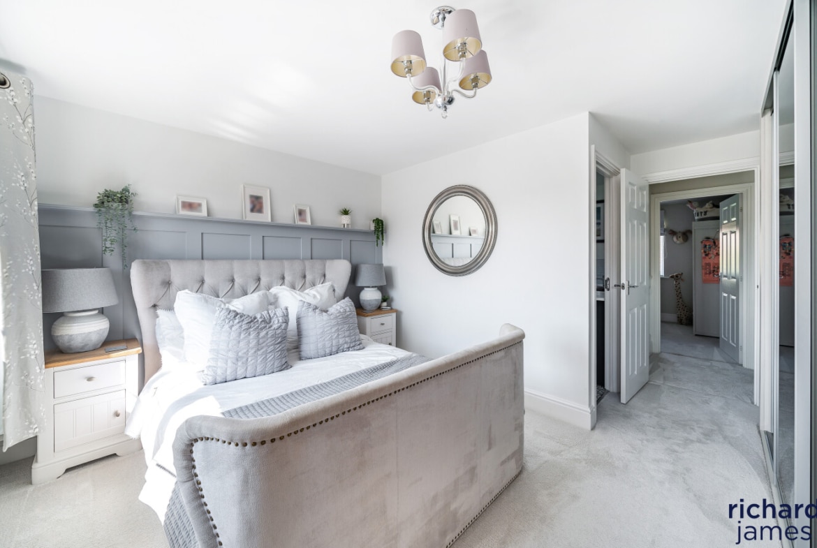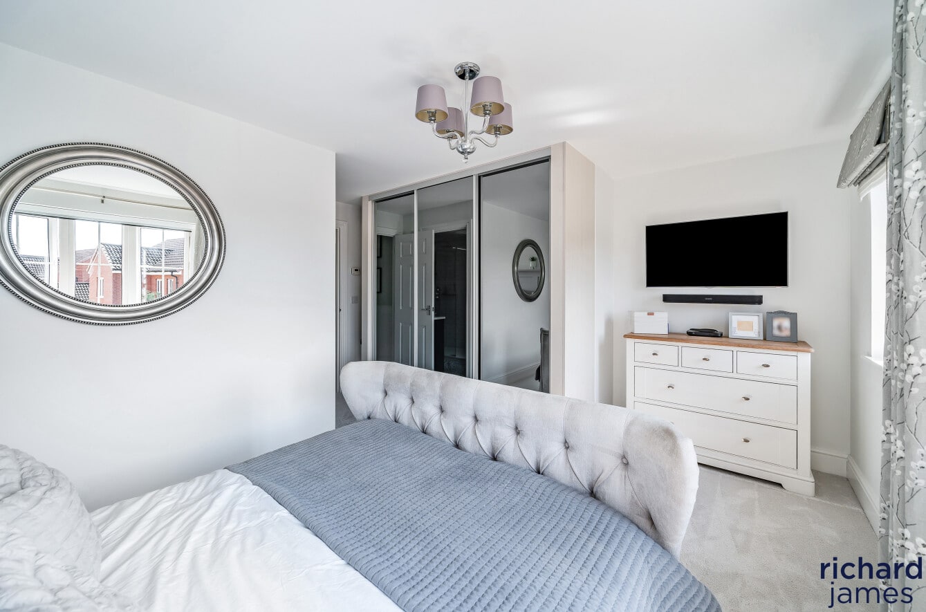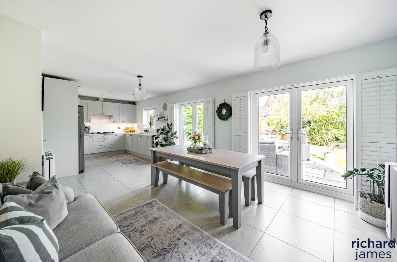 Built by messrs. Charles Church Homes, the property has been updated by the current owners to include many bespoke features, as well as a refitted 28ft Kitchen/Dining/Family Room, with integrated Neff appliances and patio doors opening into the landscaped Rear Garden, Refitted Ensuite with walk-in shower and ‘his and hers’ sinks and Double Garage, with twin remote controlled up and over doors.
