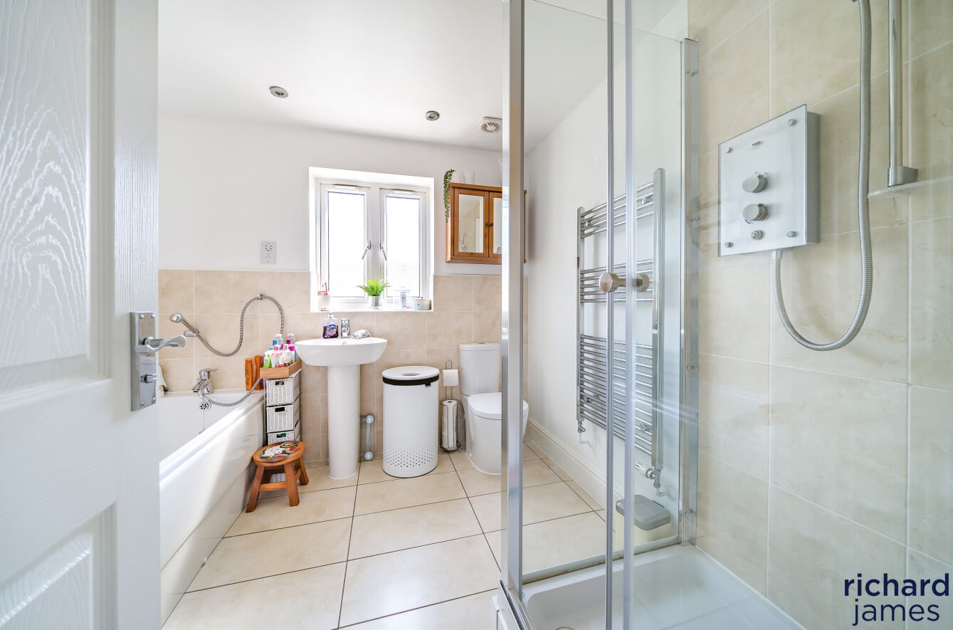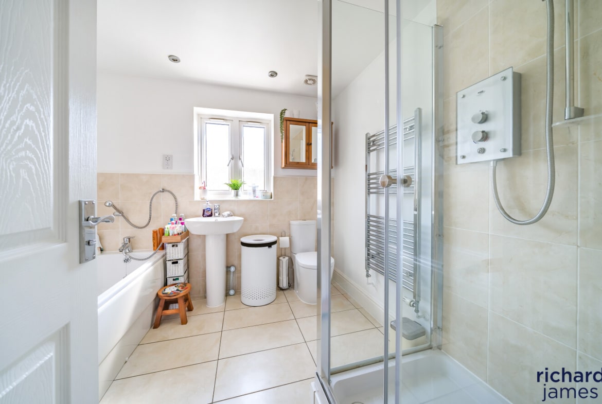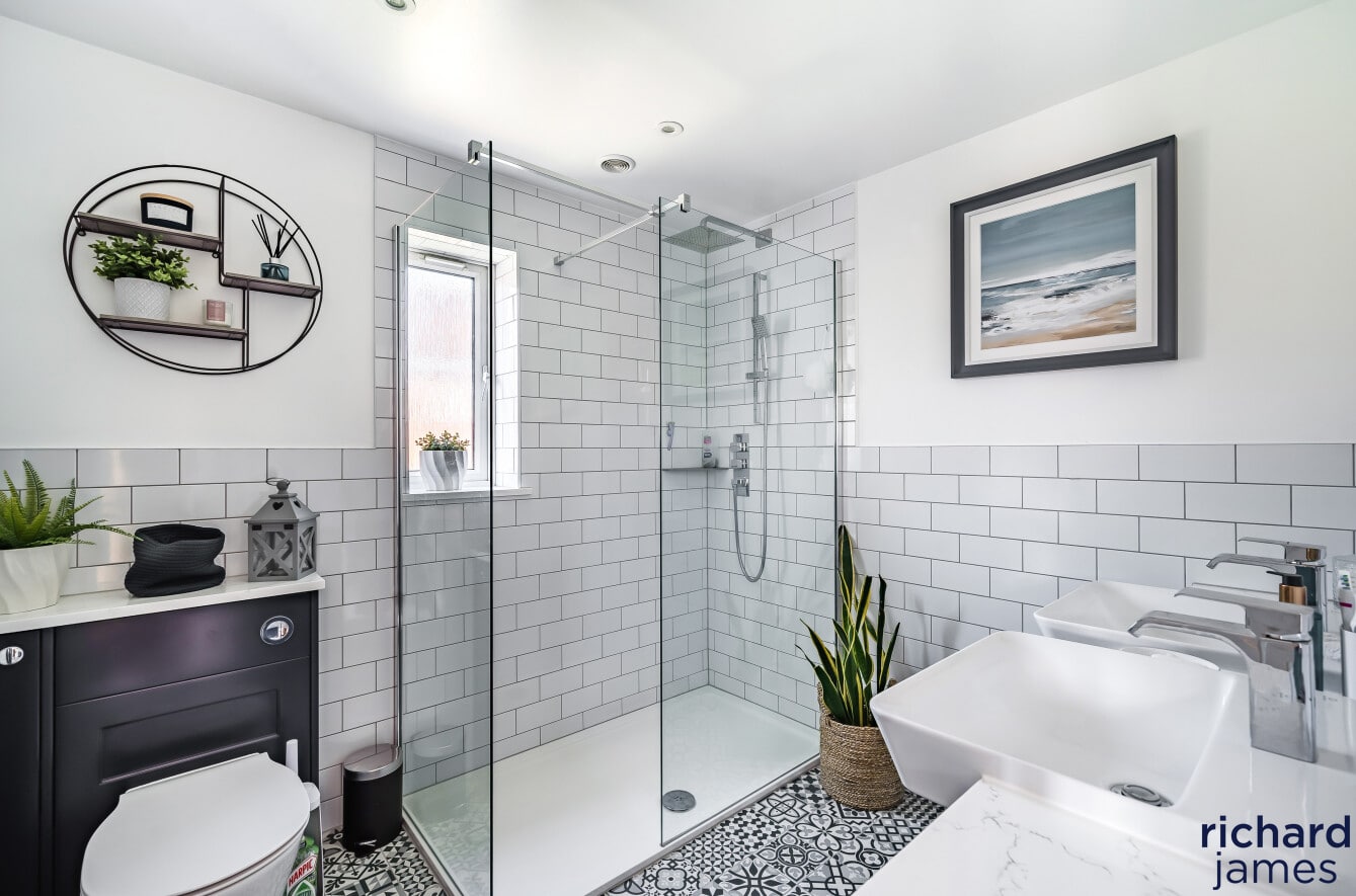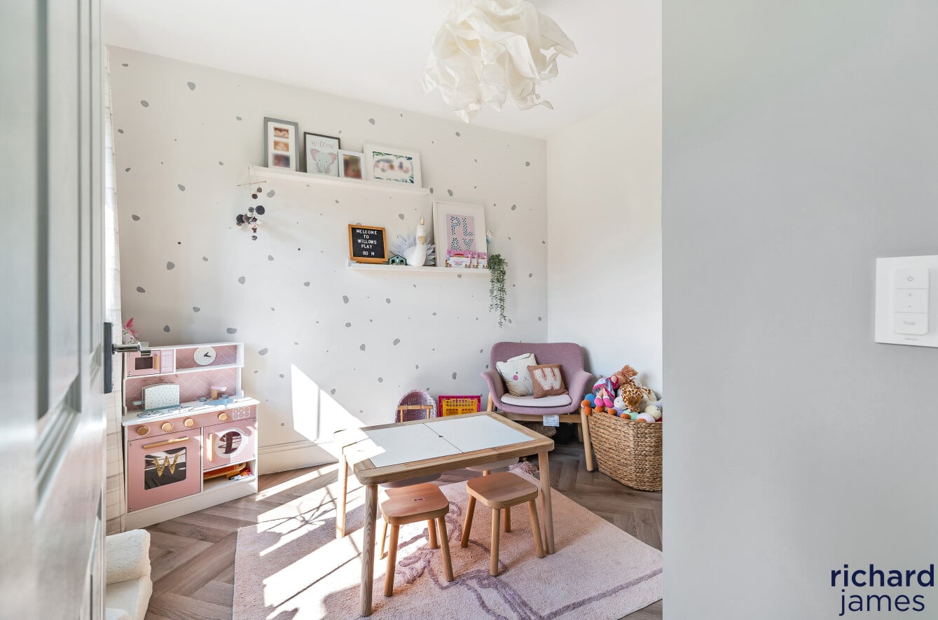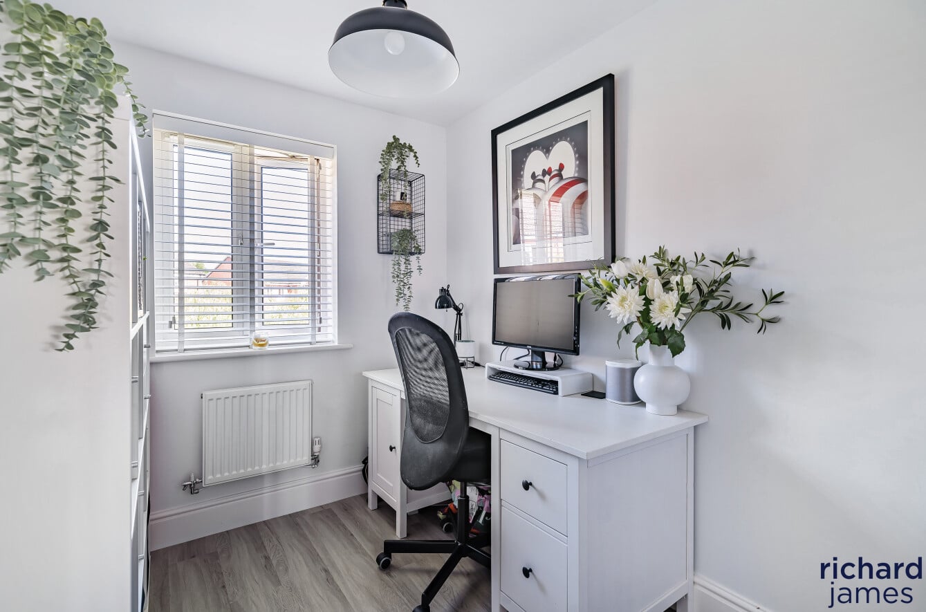Built by messrs. Charles Church Homes, the property has been updated by the current owners to include many bespoke features, as well as a refitted 28ft Kitchen/Dining/Family Room, with integrated Neff appliances and patio doors opening into the landscaped Rear Garden, Refitted Ensuite with walk-in shower and ‘his and hers’ sinks and Double Garage, with twin remote controlled up and over doors.