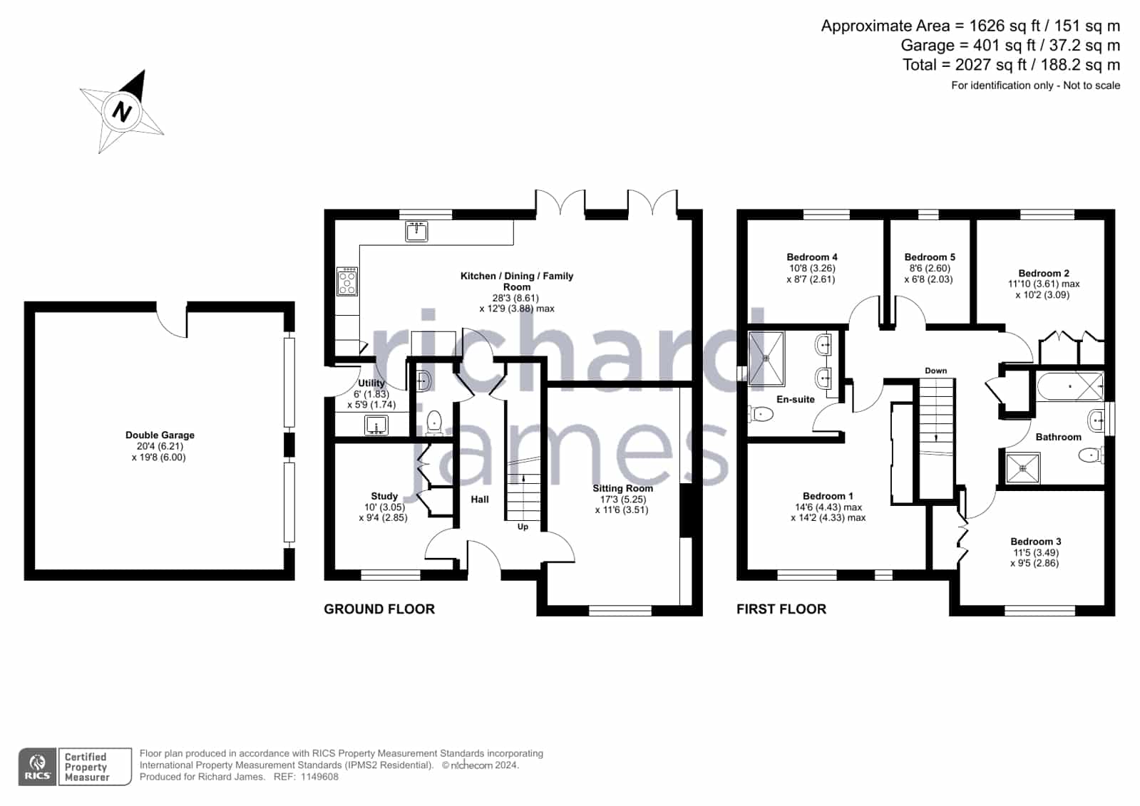 The spacious accommodation includes a welcoming Hallway, Cloakroom, Study, Sitting Room with feature fireplace, the stunning 28ft Kitchen/Dining/Family Room and separate Utility Room. With the Galleried Landing, Five Bedrooms, refitted Ensuite to Bedroom One and four piece Family Bathroom, to the first floor.