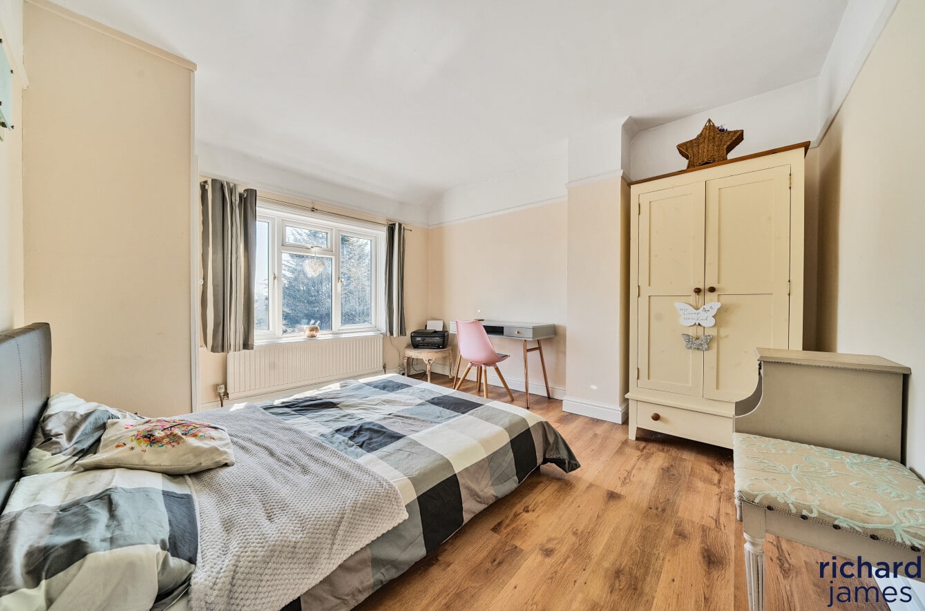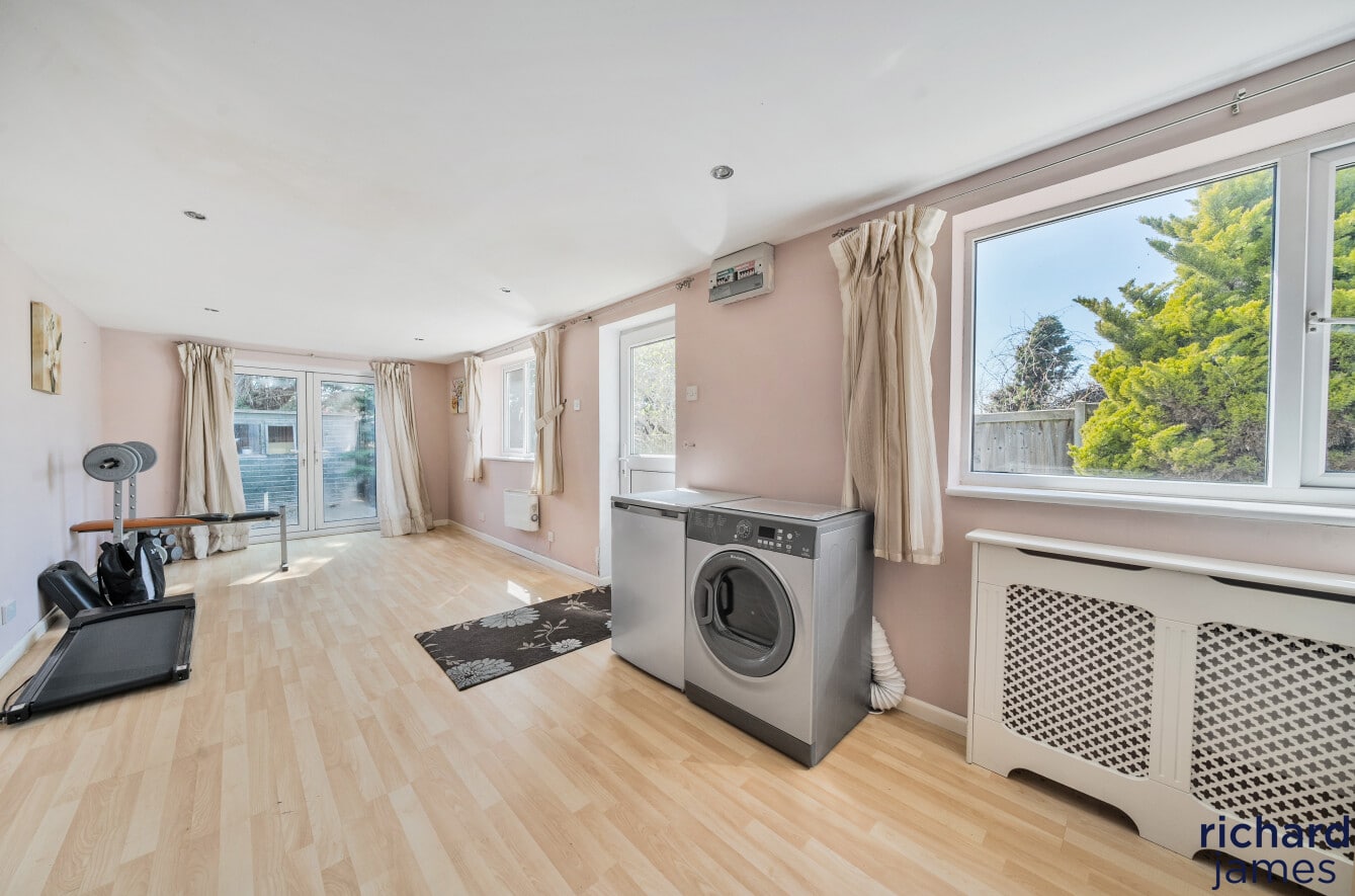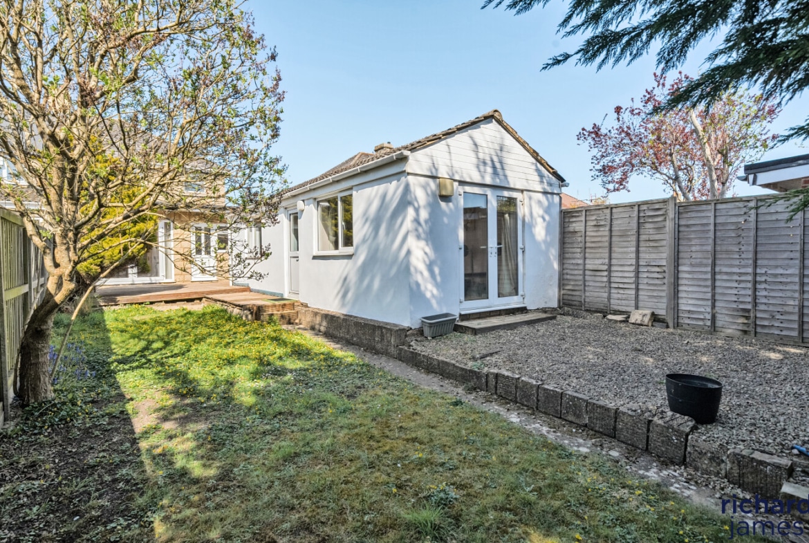 Spacious and extended family home in a sought-after area. Features include a large living room, bright kitchen, three bedrooms, and a private rear garden. Benefits from a large driveway and a self-contained garden studio with en suite—ideal for guests or rental. Located close to local amenities, schools, and transport links. Offered with no onward chain.