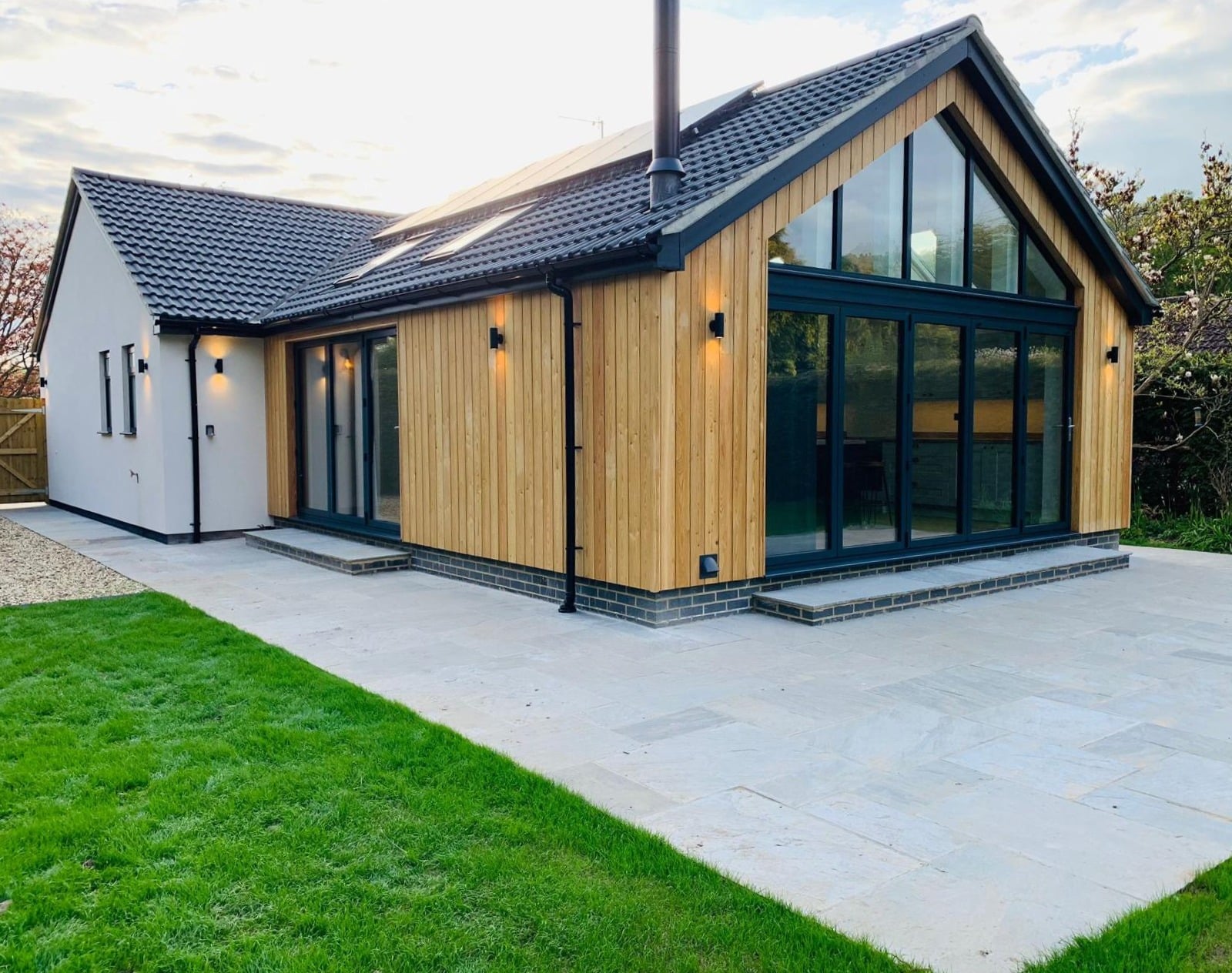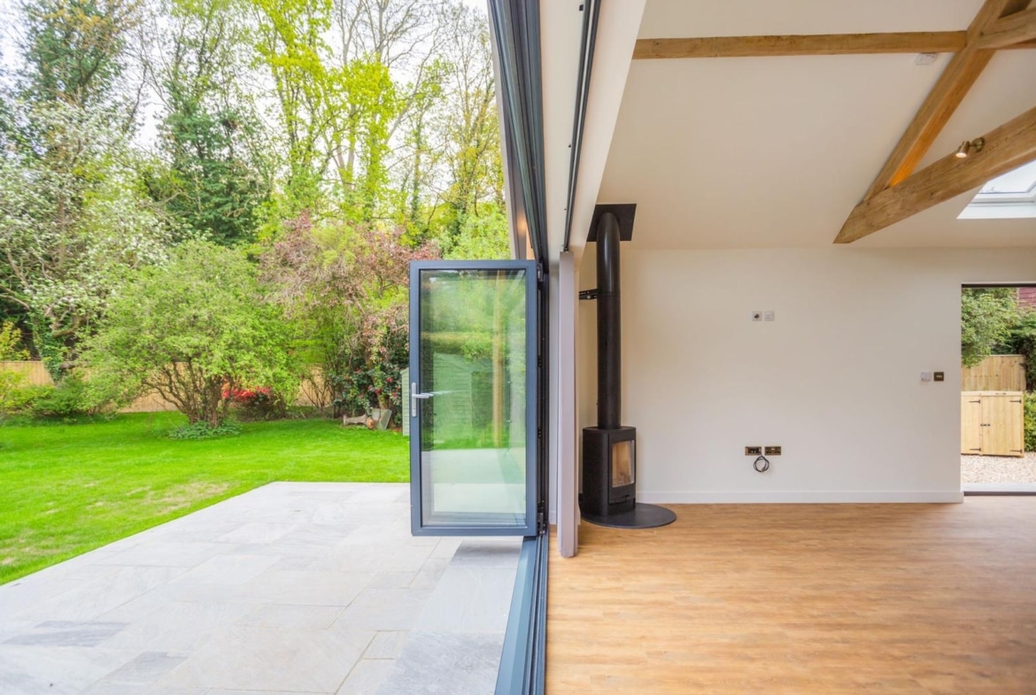 Step inside to discover approximately 1,270 square feet of thoughtfully designed accommodation, all conveniently arranged on a single level. The heart of the home is the breathtaking newly added 7.5m x 6.5m kitchen/dining/family room, where a striking vaulted ceiling with exposed beams creates a sense of grandeur. This stunning space is bathed in natural light, thanks to the expansive five-panel anthracite bifold doors that open seamlessly onto the rear garden. A central breakfast island provides a stylish focal point for entertaining, while a modern wood-burning stove adds warmth and charm.