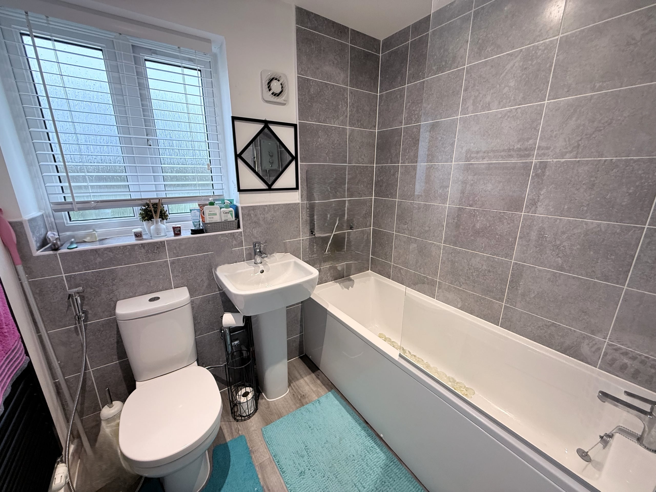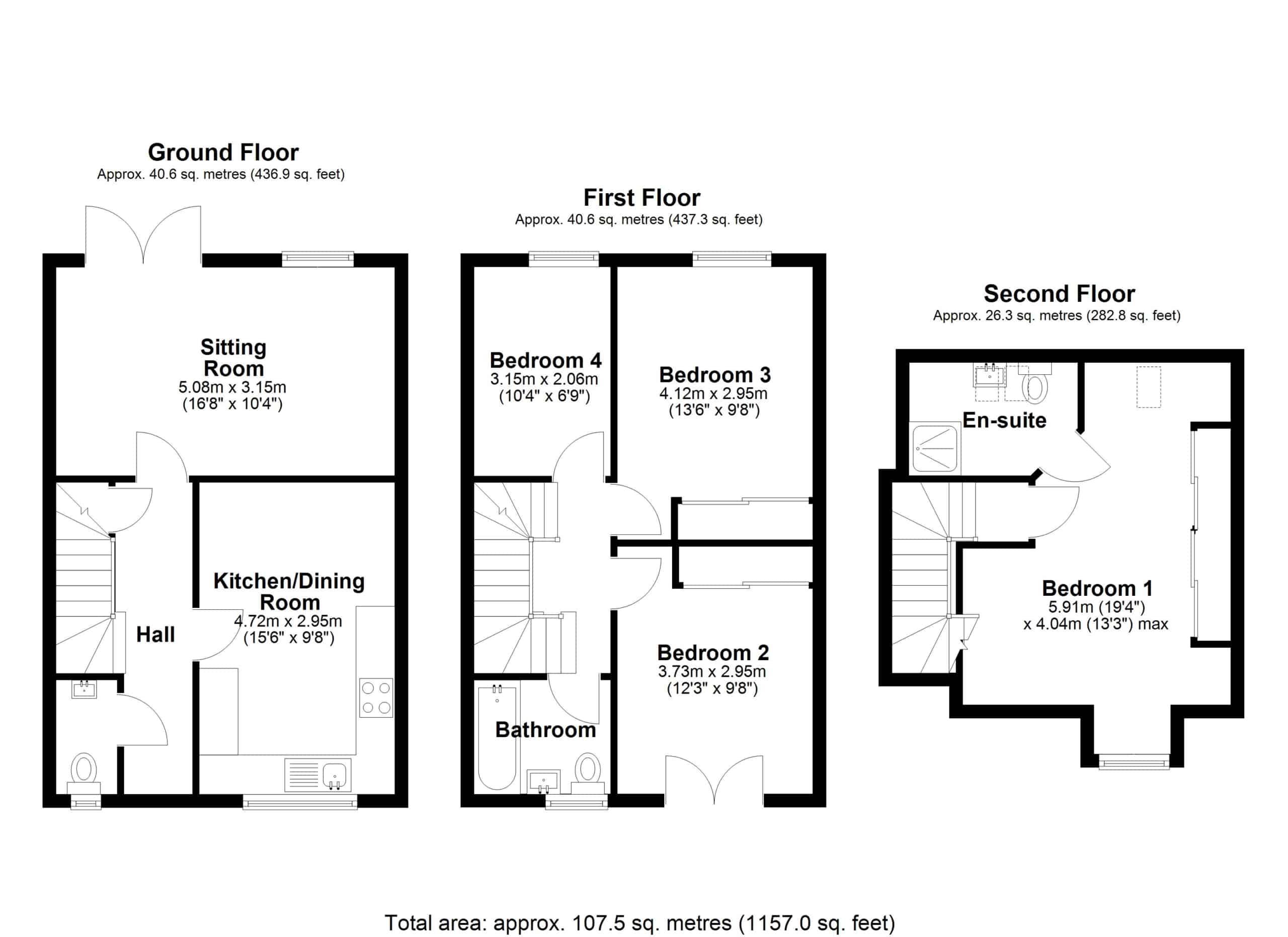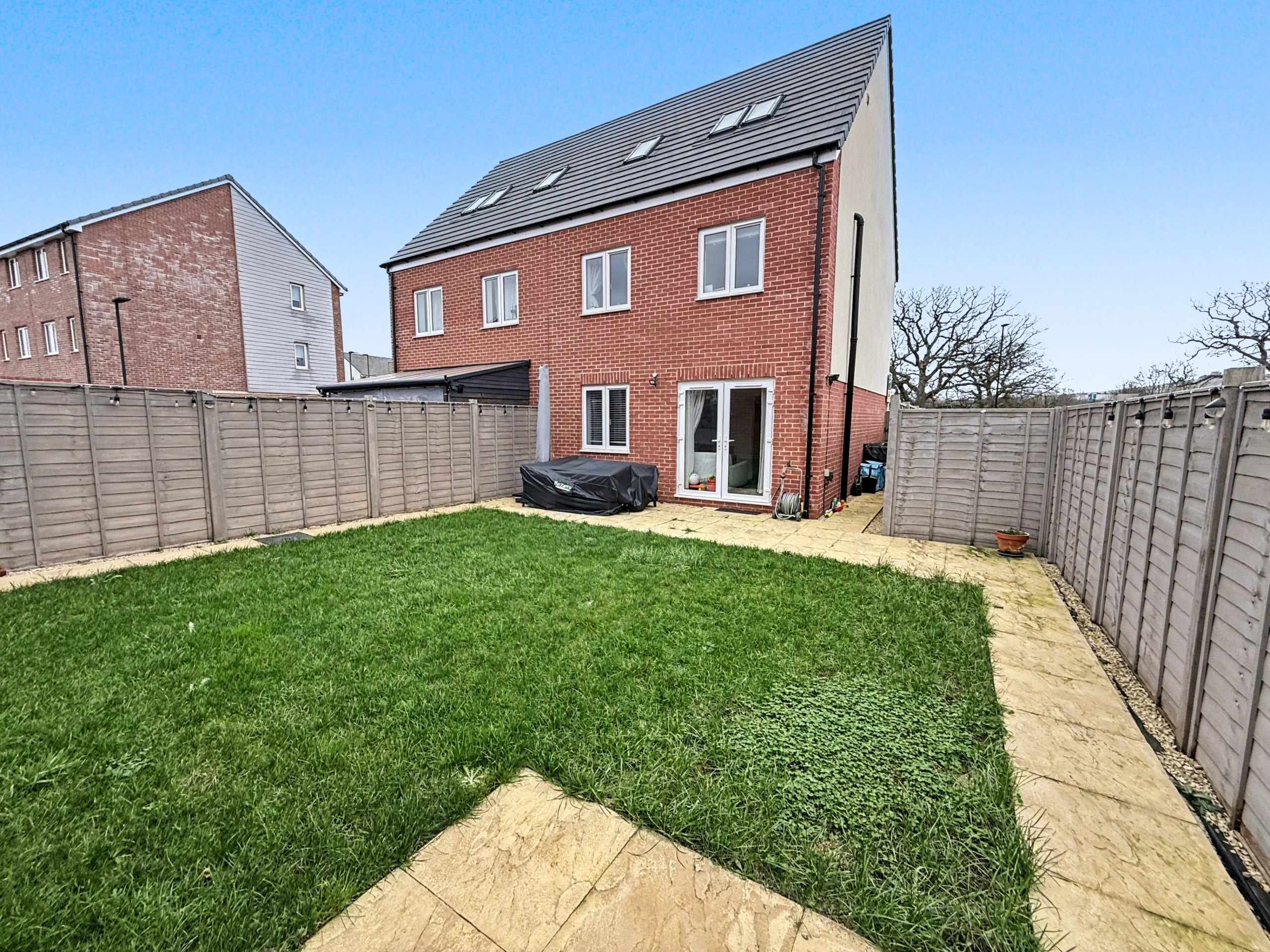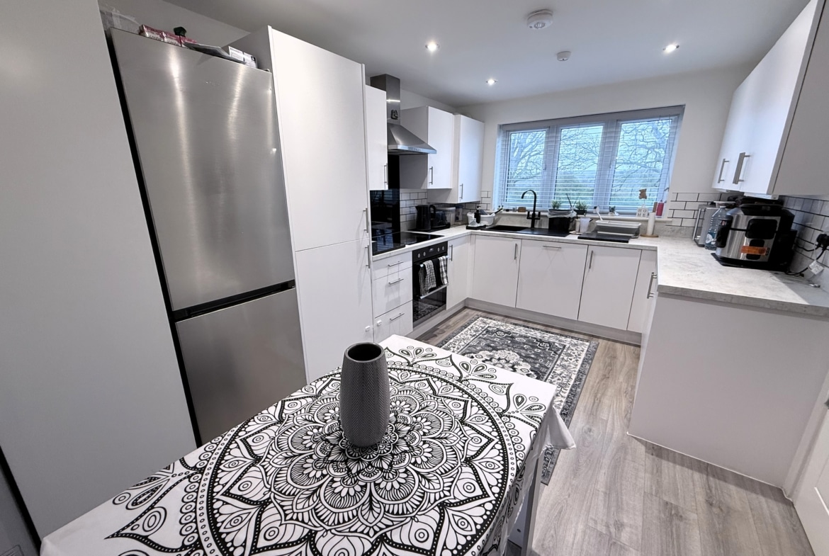 The deceptively spacious accommodation offers nearly 1200sqft of living space, which comprises: Hall, Cloakroom, fitted 15′ Kitchen/Dining Room and 16′ Sitting Room with PVCu double doors opening into the pleasant Rear Garden. To the first floor, you’ll find three of the Bedrooms with ‘Juliette’ balcony leading out from the third Bedroom, as well as the Family Bathroom, with white three piece suite. With additional built-in wardrobes to both Bedroom Two & Three. With an impressive 19′ Master Bedroom with fitted wardrobes and En-suite Shower Room, to the top floor.