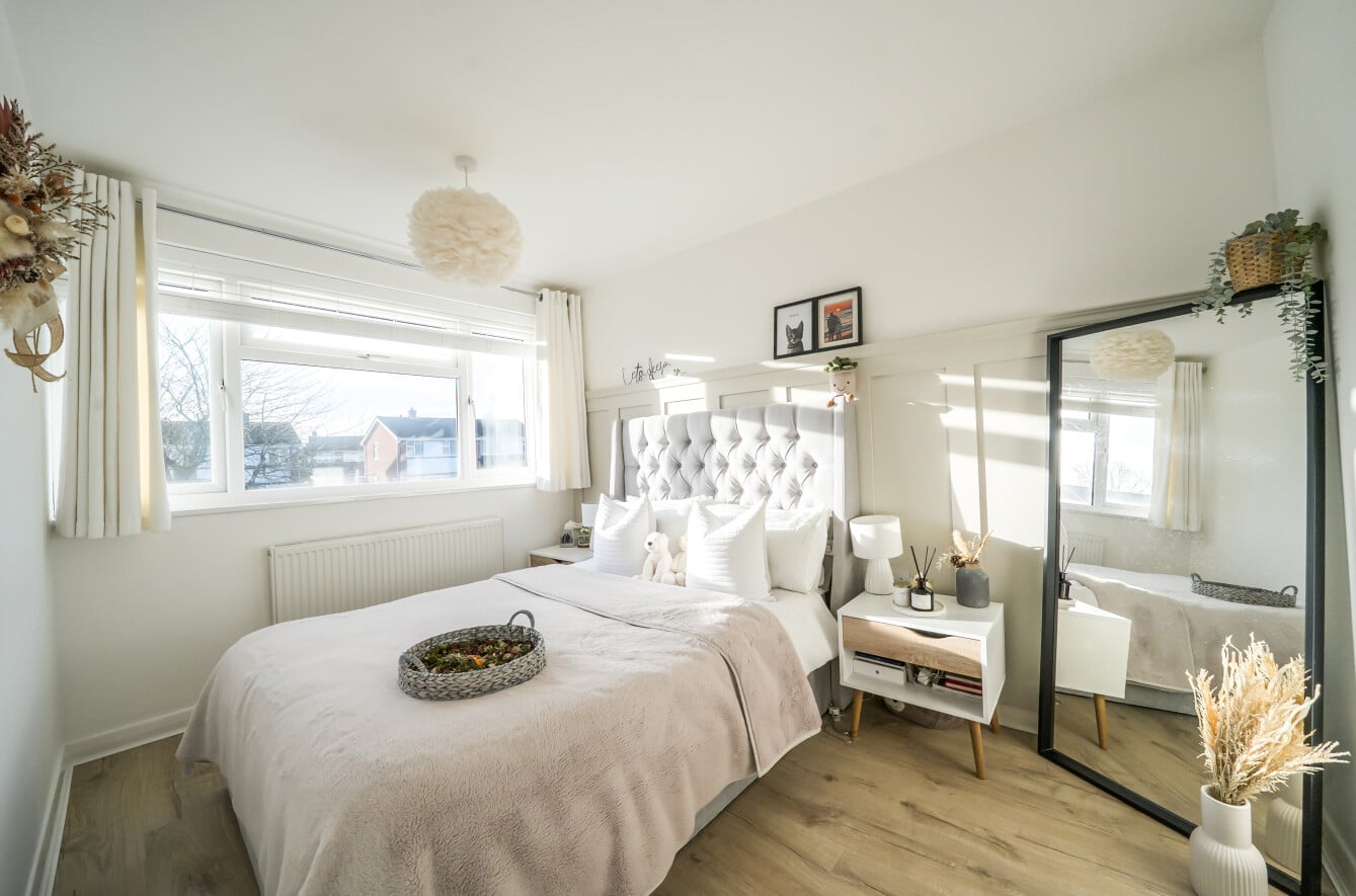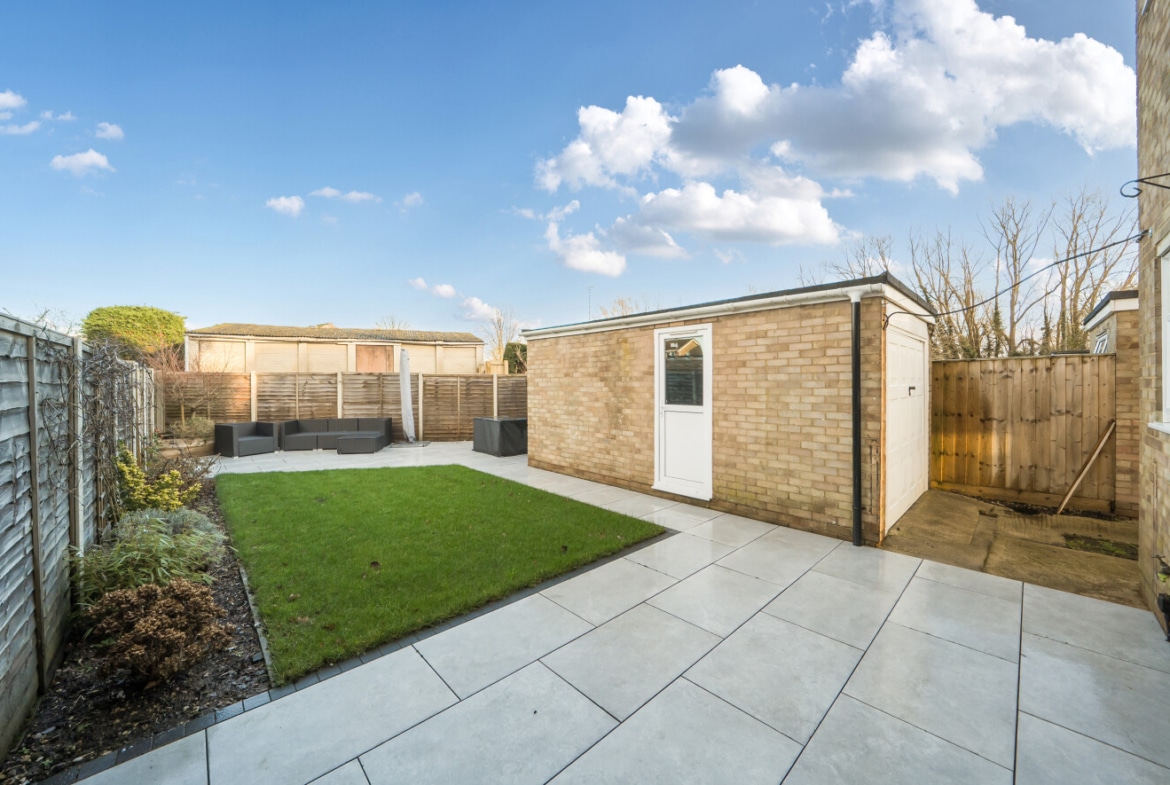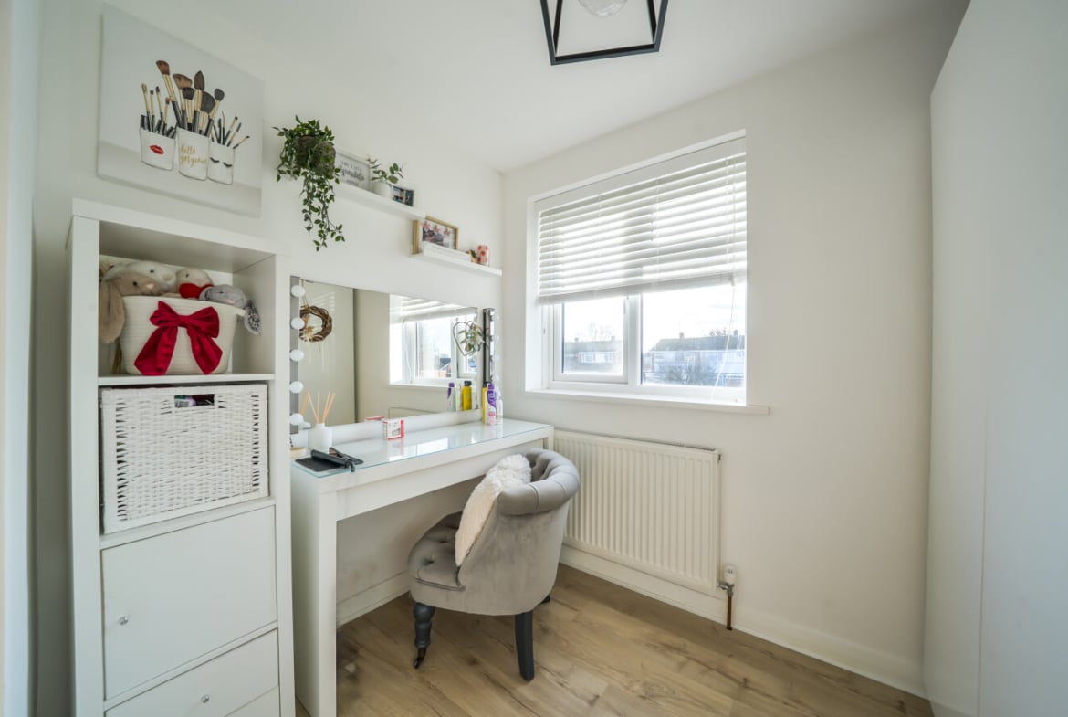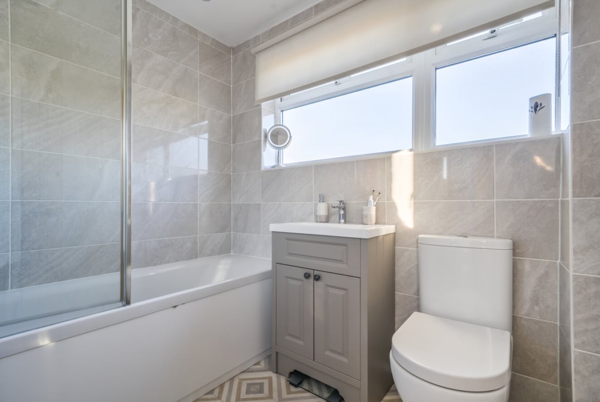 The ground floor is completed by access to a modern garden, providing a great outdoor space. Upstairs, there are two bright and airy double bedrooms, both offering excellent space for furniture and storage. The third bedroom is versatile, making it ideal as a child’s room, home office, or guest room. The first floor is finished with a contemporary family bathroom.