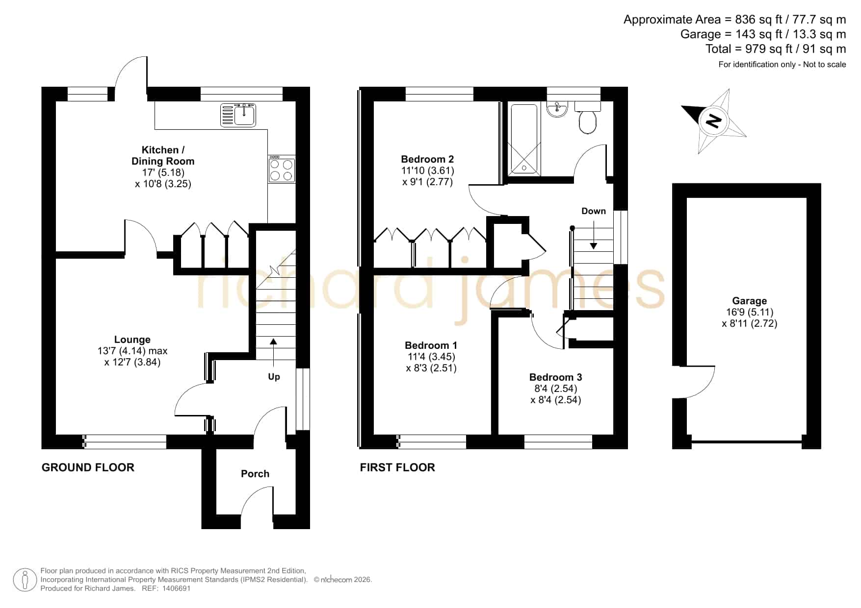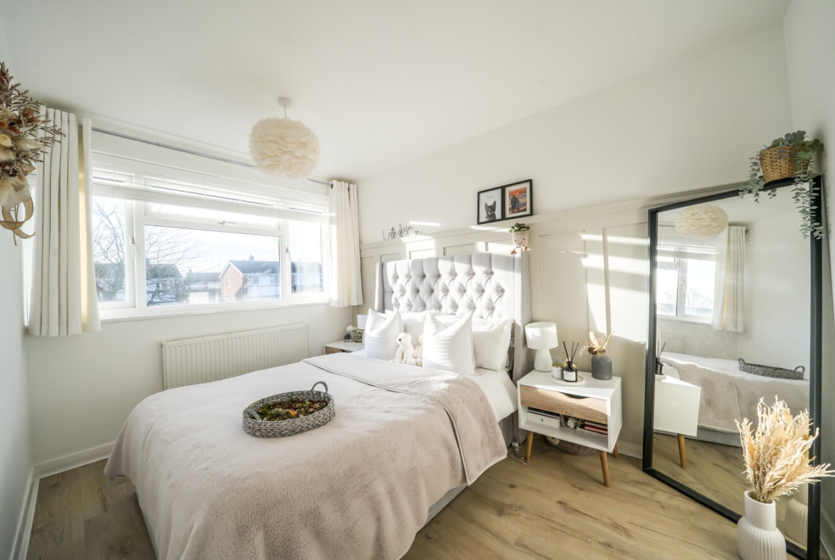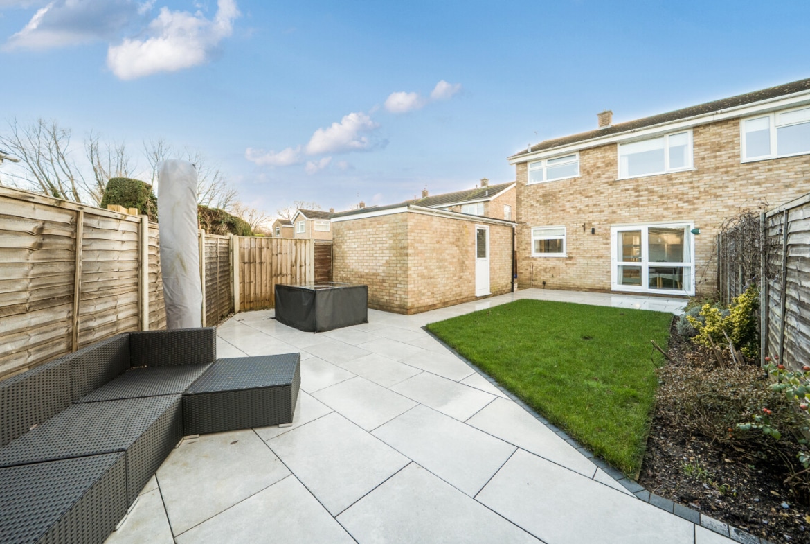 The ground floor is completed by access to a modern garden, providing a great outdoor space. Upstairs, there are two bright and airy double bedrooms, both offering excellent space for furniture and storage. The third bedroom is versatile, making it ideal as a child’s room, home office, or guest room. The first floor is finished with a contemporary family bathroom.