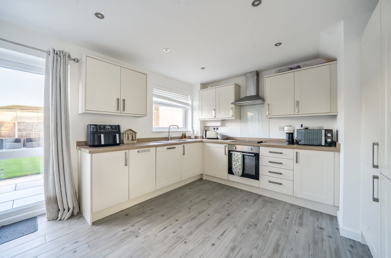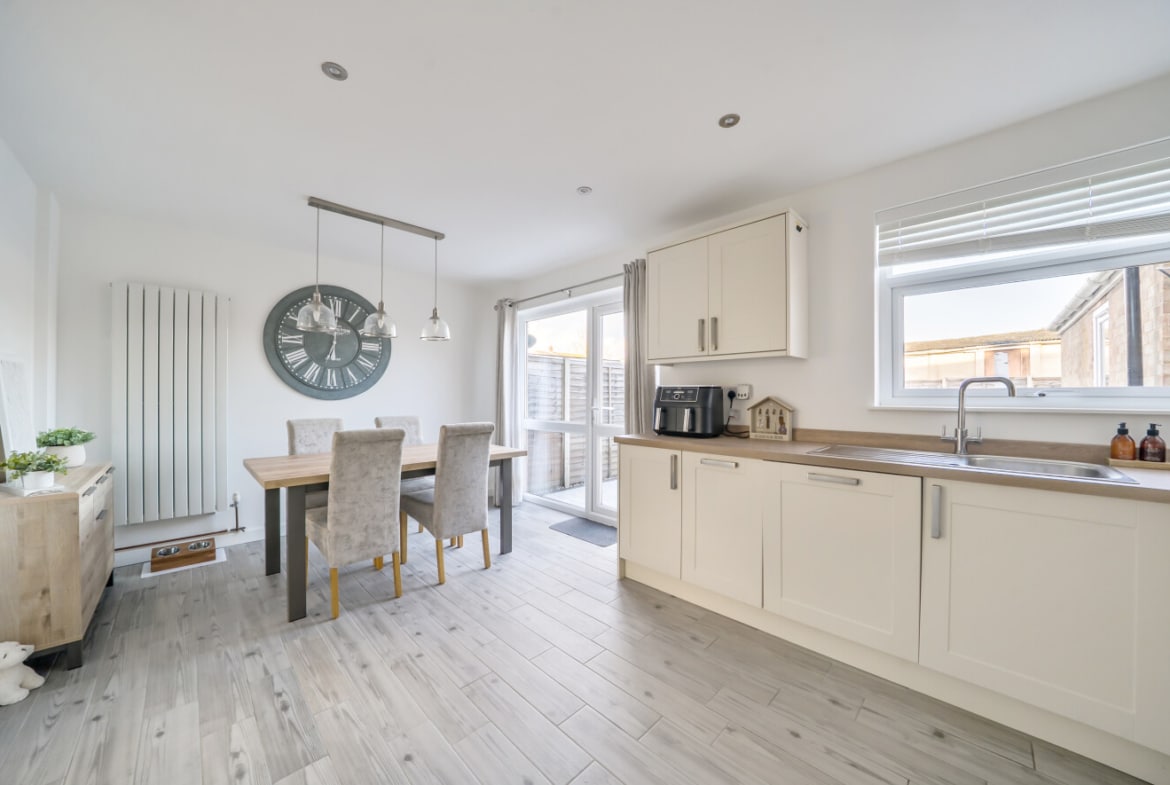 This modern three-bedroom home is set in a great location and offers stylish, well-planned living throughout. The property begins with a large driveway and the added benefit of a handy garage. Inside, there is a welcoming porch leading into a spacious open reception room, perfect for relaxing and everyday lounging. This flows seamlessly into a stunning modern open-plan kitchen diner, ideal for both family life and entertaining.
