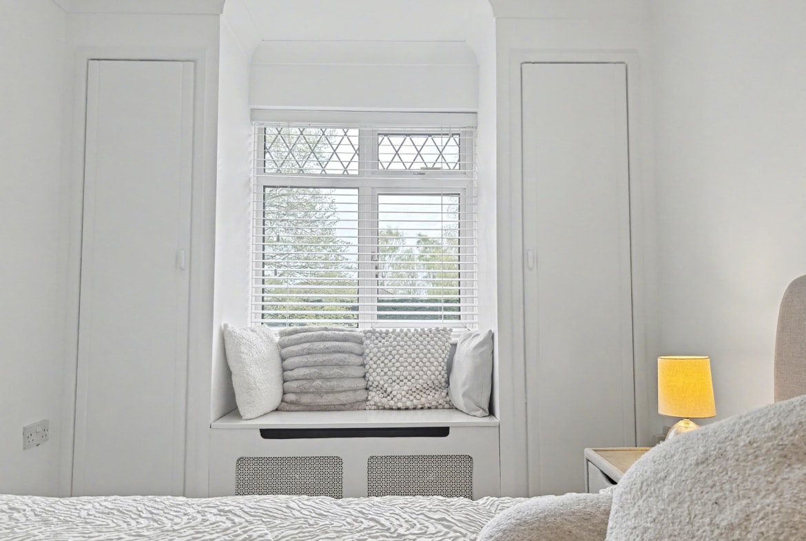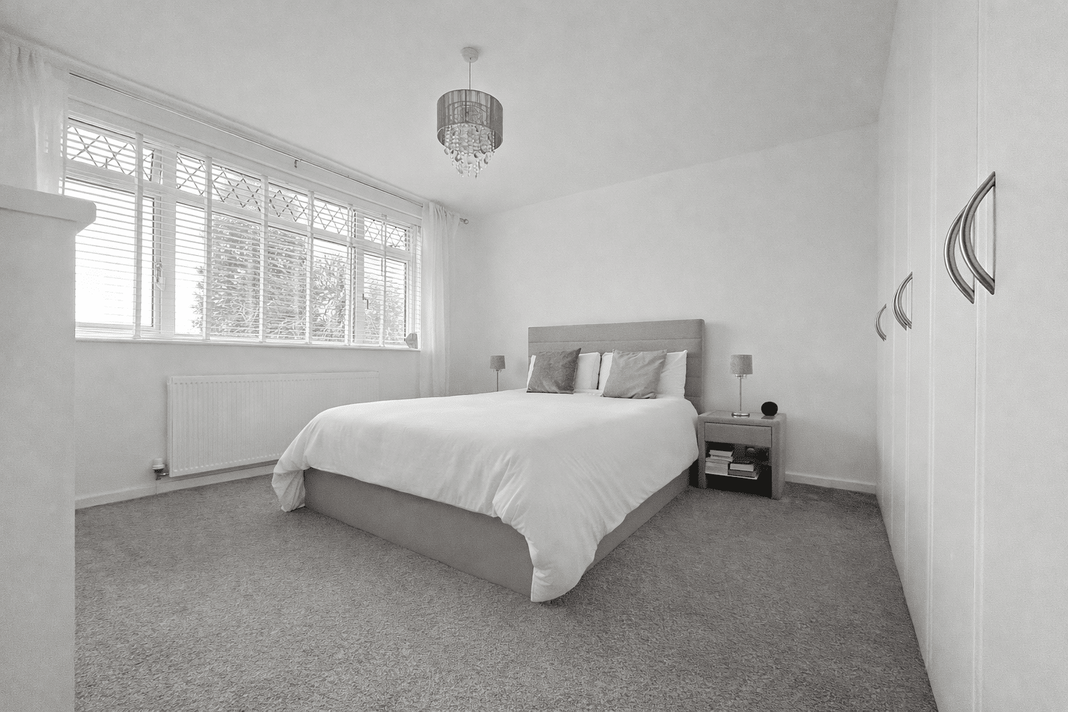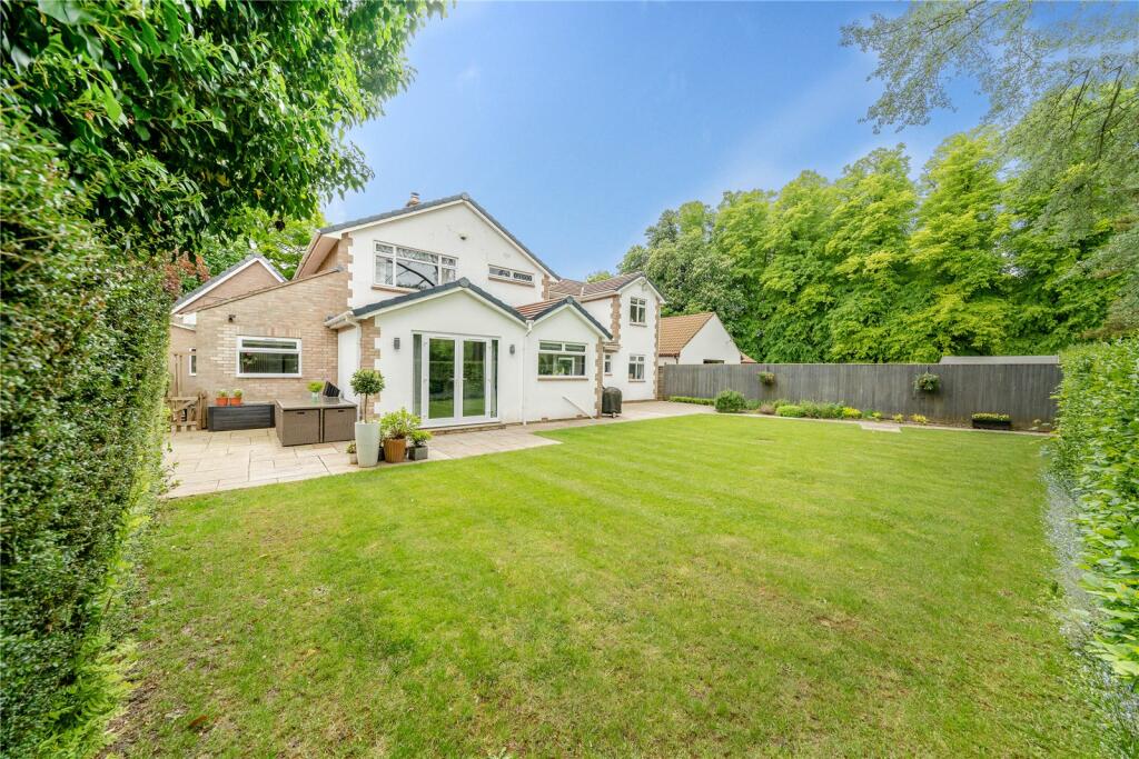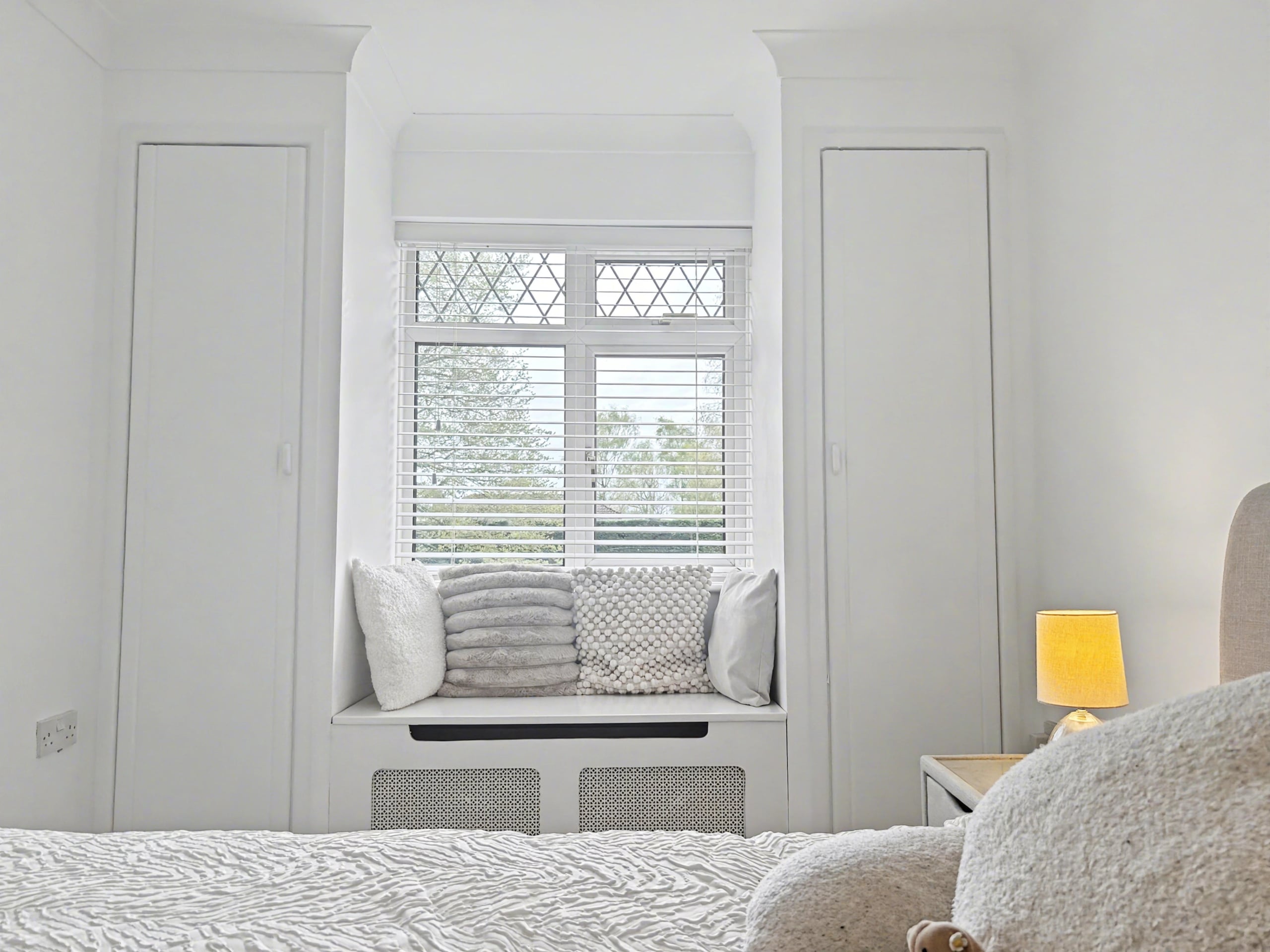 Upstairs, a spacious landing provides access to all rooms and includes an airing cupboard housing a gas-fired Worcester Bosch boiler. The principal bedroom features a stylish four-piece en-suite bathroom and a walk-in wardrobe. There are three further well-proportioned bedrooms, along with a large family bathroom fitted with a four-piece suite, including a separate bath and shower.