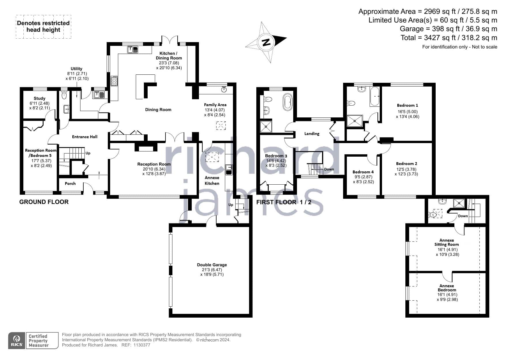 The annexe, which can be accessed both internally and via its own private entrance, offers excellent flexibility. The ground floor comprises a spacious kitchen/breakfast room, while the first floor includes a shower room, a sitting room/bedroom, and an additional double bedroom.