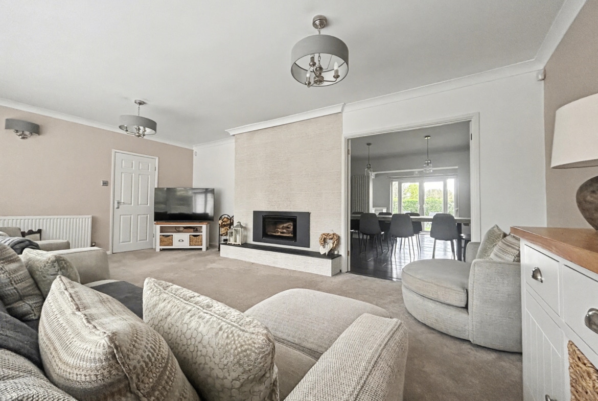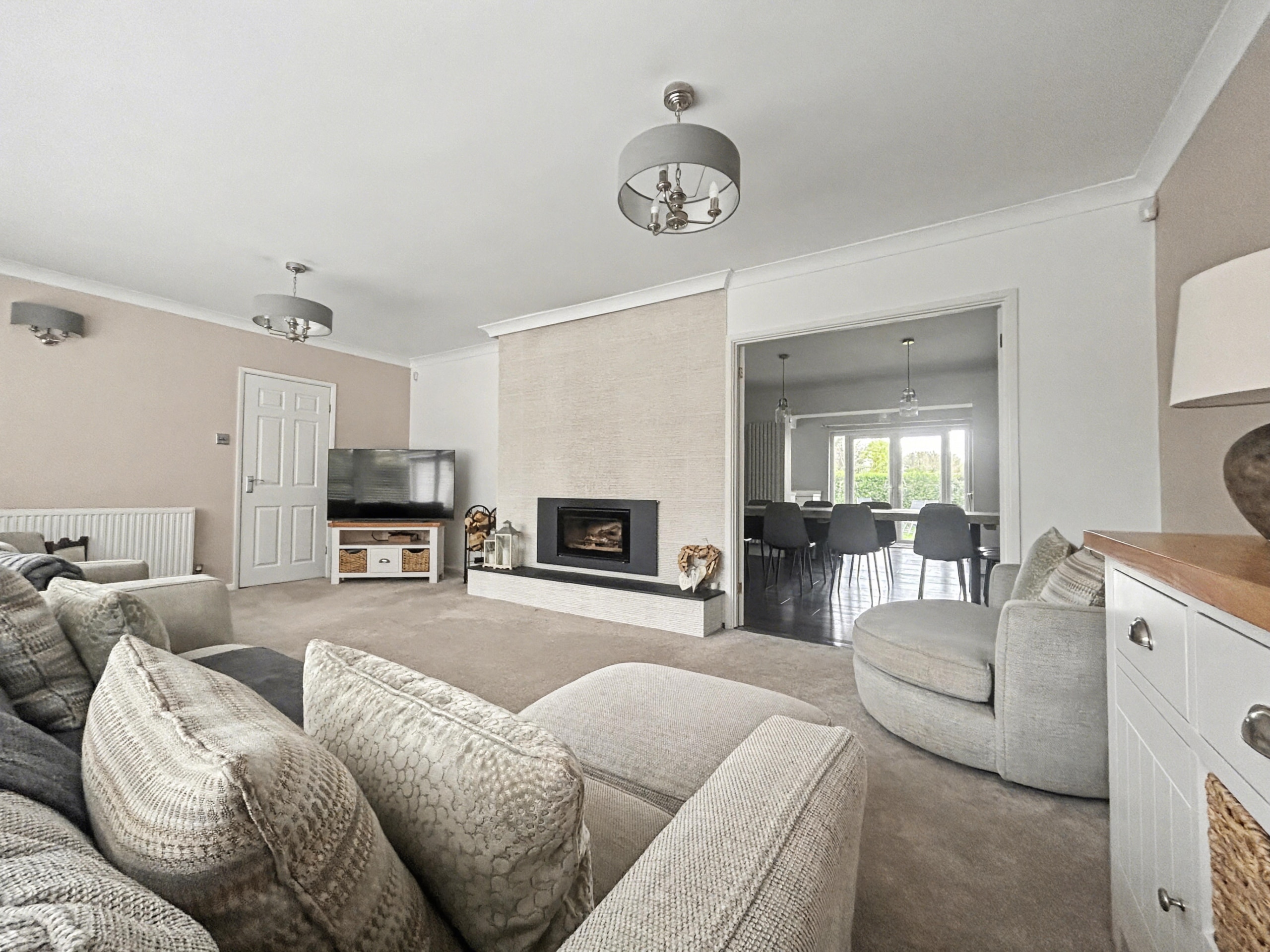 A true highlight of the home is the impressive refitted kitchen/dining room, measuring approximately 9.11m x 7.08m. This stunning space is fitted with an extensive range of built-in appliances, including an electric range cooker with two warming drawers, two dishwashers, three fridges, and a water softener. The kitchen flows seamlessly into a family area and is further complemented by a utility room with direct access to the garden. The family area also leads to a secondary kitchen, serving the annexe.