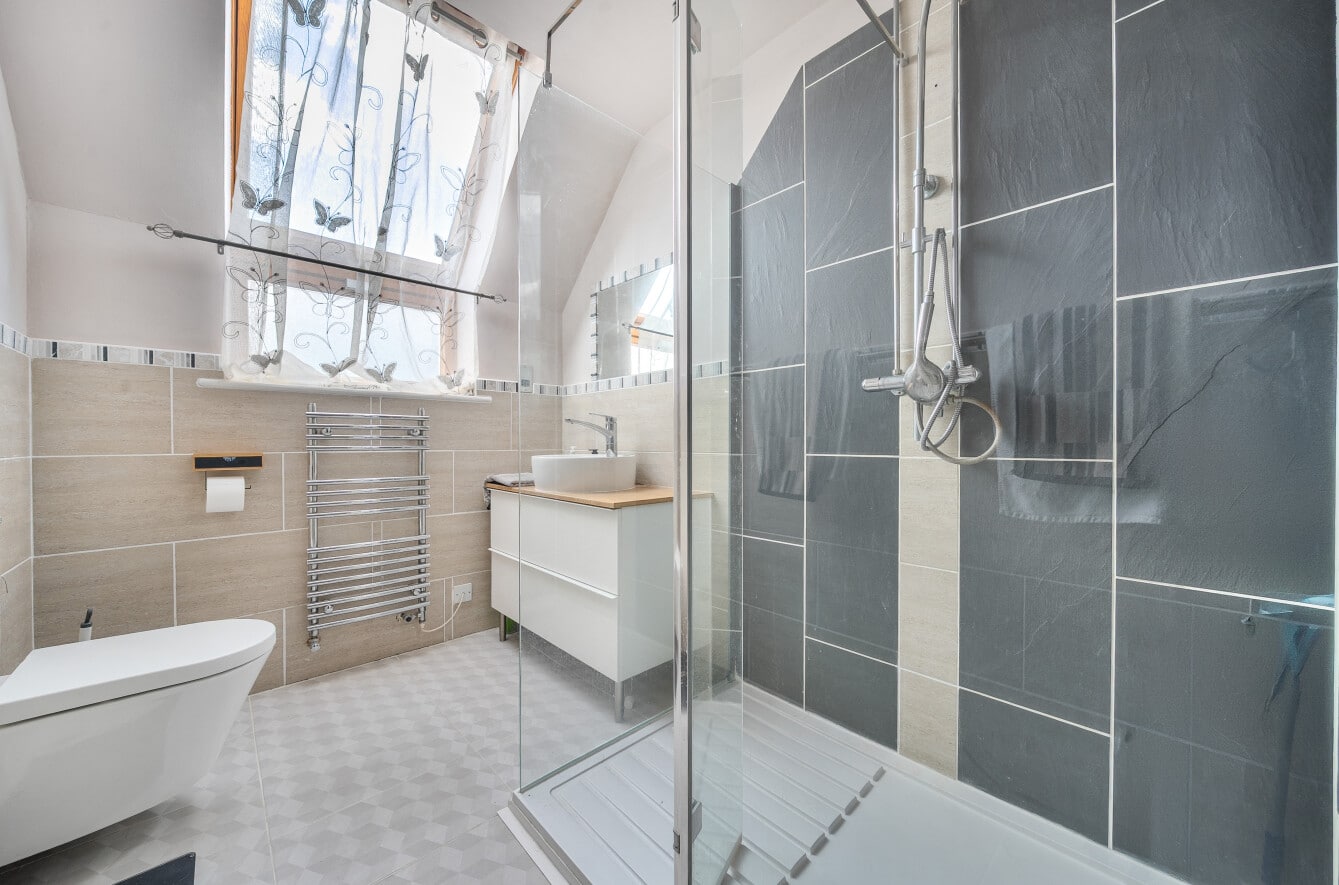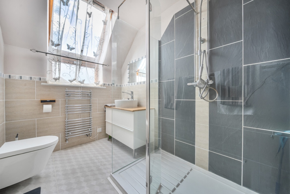 Upstairs, the property offers three well-proportioned bedrooms. The principal bedroom benefits from excellent dimensions and an En-Suite shower room while bedrooms two and three provide flexible space for family, guests, or home working. A family bathroom completes the first floor.
