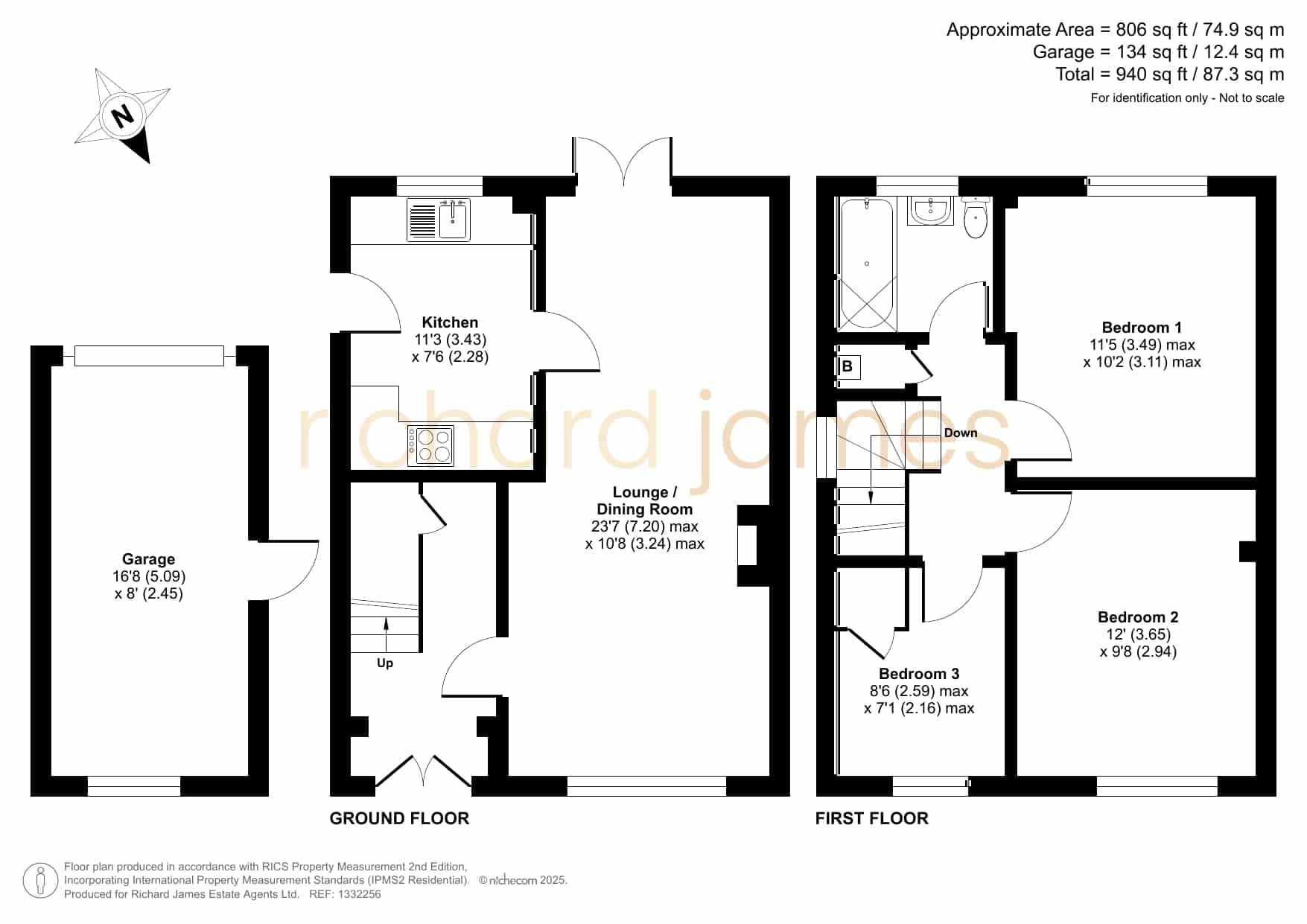 A beautifully maintained and move-in ready 3-bedroom semi-detached home, ideally located close to schools, shops, and transport links. Features include a private garage and parking space at the rear, a well-kept front garden, a spacious lounge/diner, and a kitchen with ample storage. The south-west facing rear garden offers a sunny, private outdoor space. Upstairs boasts two generous double bedrooms, a good-sized single bedroom, and a large family bathroom—perfect for families or those needing a home office. A well-laid-out home in a convenient, sought-after location.