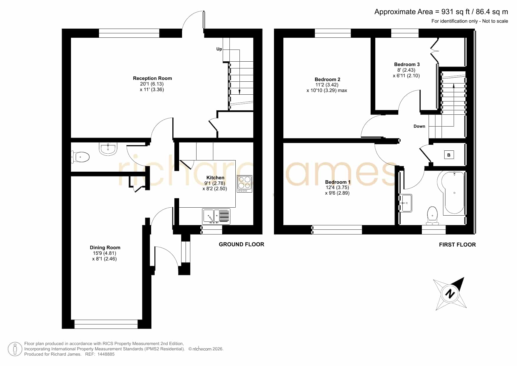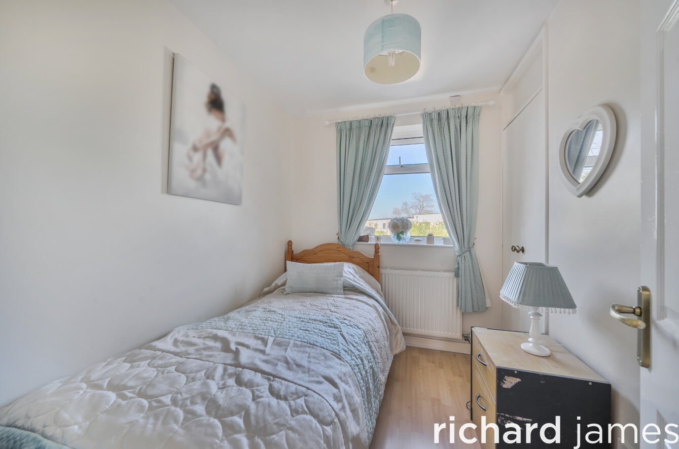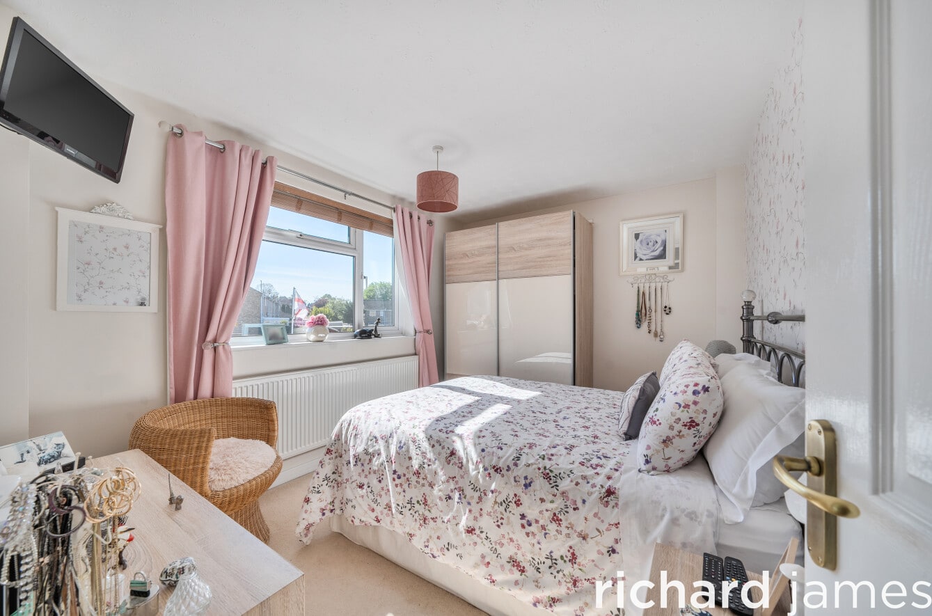 Upstairs, three bedrooms are served by a refitted white bathroom suite, WC and wash hand basin. The principal bedroom sits to the front and is a comfortable double, with two further bedrooms to the rear, one of which has a built-in cupboard.