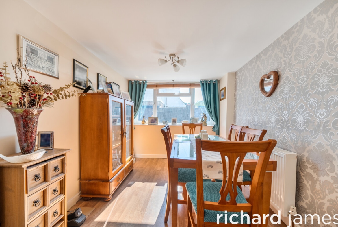 A three-bedroom mid-terraced home in a quiet Haydon Wick cul-de-sac, offering well-proportioned family accommodation across two floors. The ground floor includes a converted garage dining room, refitted kitchen and a generous twenty-foot lounge opening to the rear garden. Upstairs are three bedrooms and a refitted white bathroom suite. Further benefits include off-road parking for two cars, gas central heating and an enclosed rear garden with patio and lawn. Ready to move into and priced to sell.