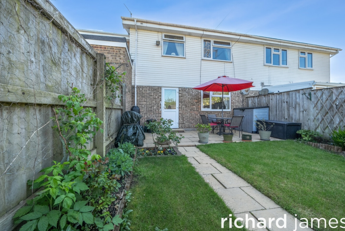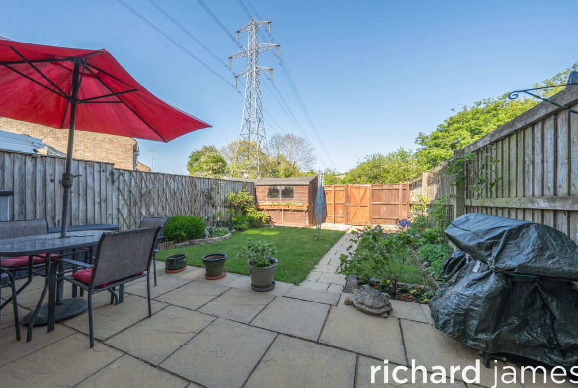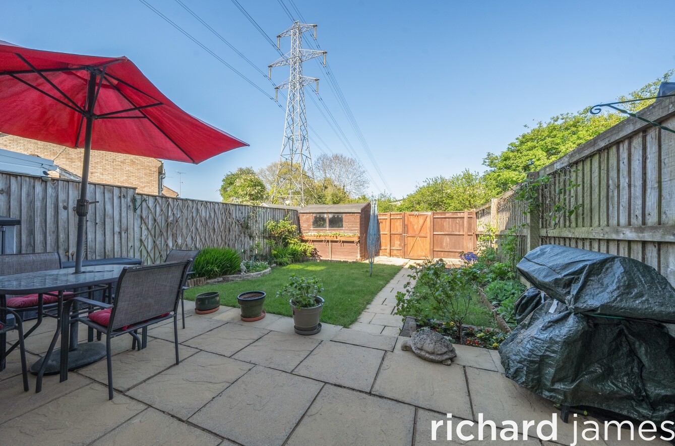 To the rear, the enclosed garden has been laid out for easy enjoyment, with a paved patio leading to a lawned area, planted borders and a garden shed with rear access. The vendors are ready to move and are inviting early viewings.