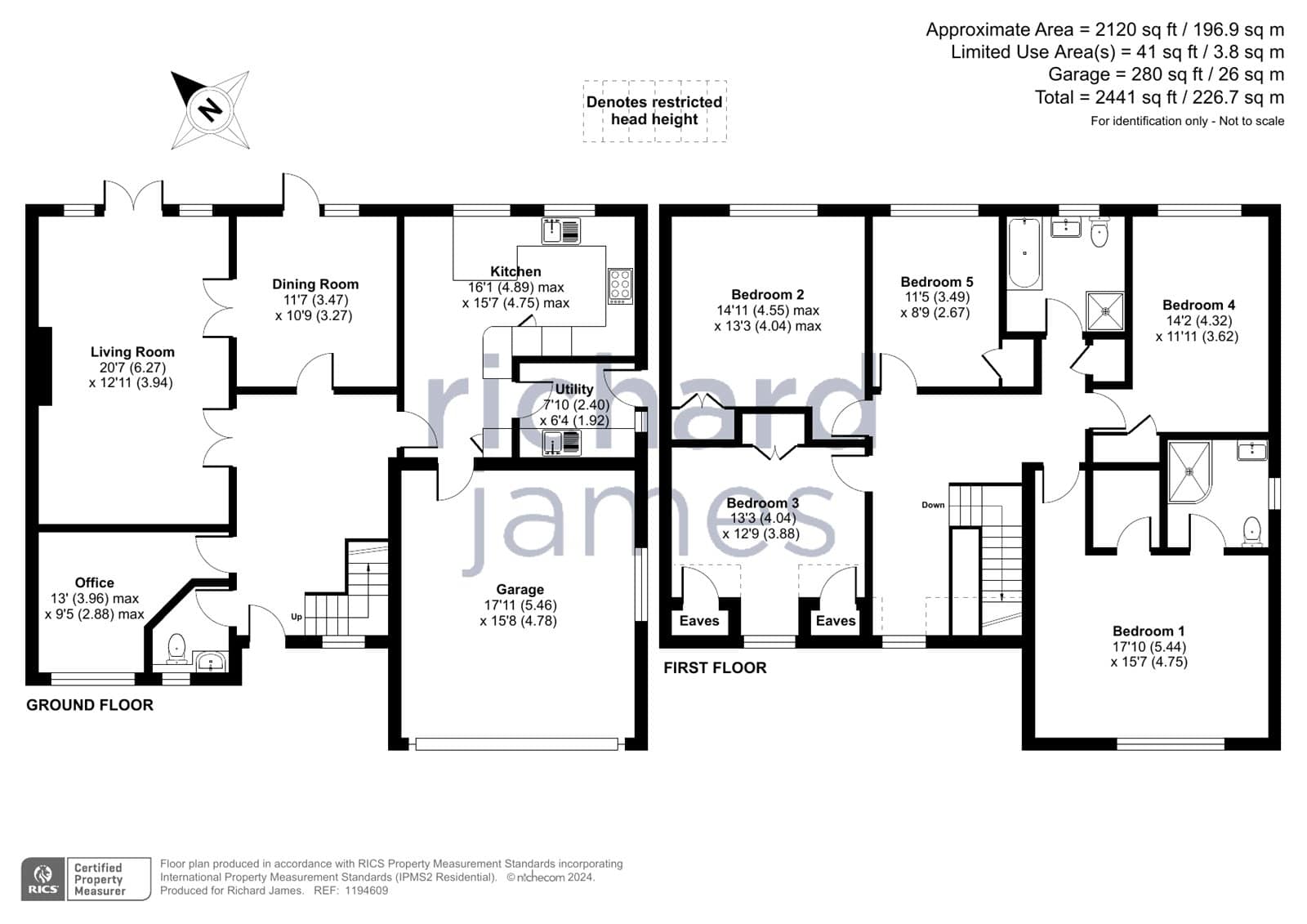 Nestled in the desirable cul-de-sac of ‘Brookfield’ in Highworth, this impressive five-bedroom detached family home offers spacious and versatile accommodation spanning 2,441 sq ft. The property boasts three reception rooms, including a large living room, a dining room, and a study, providing ample space for family life or entertaining guests. The kitchen is generous and well-equipped, with an adjoining utility room adding further convenience.Upstairs, five well-proportioned bedrooms provide plenty of sleeping quarters for a growing family. The principle bedroom includes a luxurious walk-in wardrobe, which offers the potential to be converted into an ensuite for bedroom 4 if desired. A modern ensuite also serves the principle bedroom, while a modern four-peice bathroom ensures convenience for all other bedrooms.Outside, the enclosed rear garden is both private and mature, featuring a lush lawn, vibrant flower borders, and a charming decking area – ideal for relaxation or outdoor dining. The front of the property offers a paved driveway with space to park multiple vehicles, in addition to a substantial double garage.This home is a rare opportunity in a prime location, perfect for those seeking comfort, space, and potential in a peaceful setting.