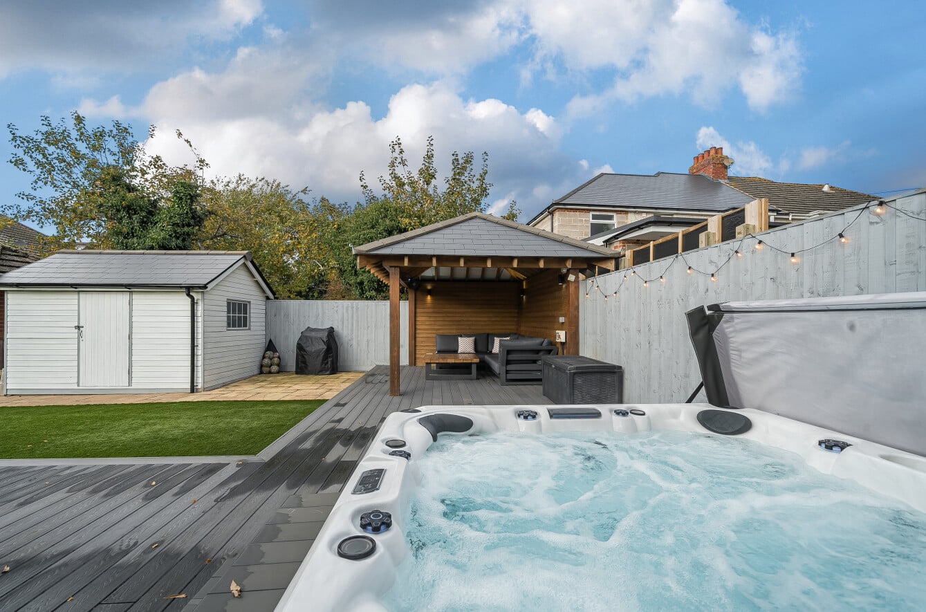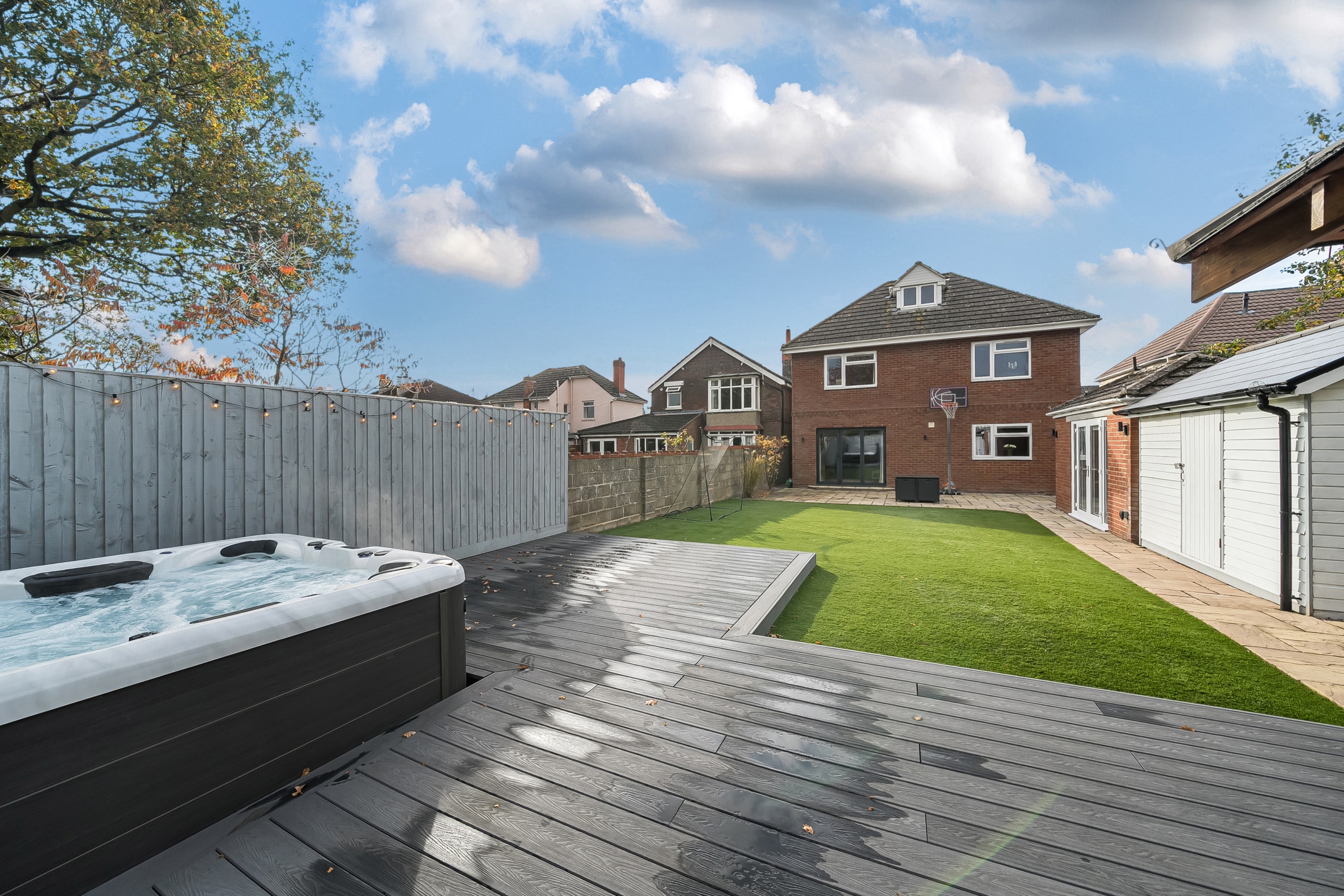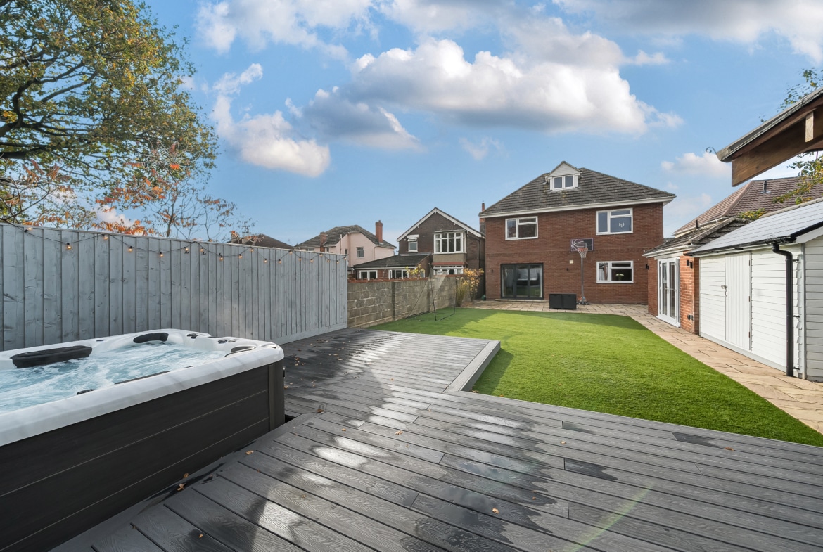 To the Outside, the property enjoys a large enclosed rear garden, which has been designed with low maintenance in mind, with patio area leading from the house, opening to generous artificial lawned area. With path leading to the Home Office, with attractive wooden gazebo offering a covered seating area and further decked area with hot tub and large storage shed. Enclosed by timber fencing and offers a high degree of privacy with a pleasant aspect to the rear. With block paved driveway to front offering off road parking and access to the Garage, which is currently converted to provide a gym area.