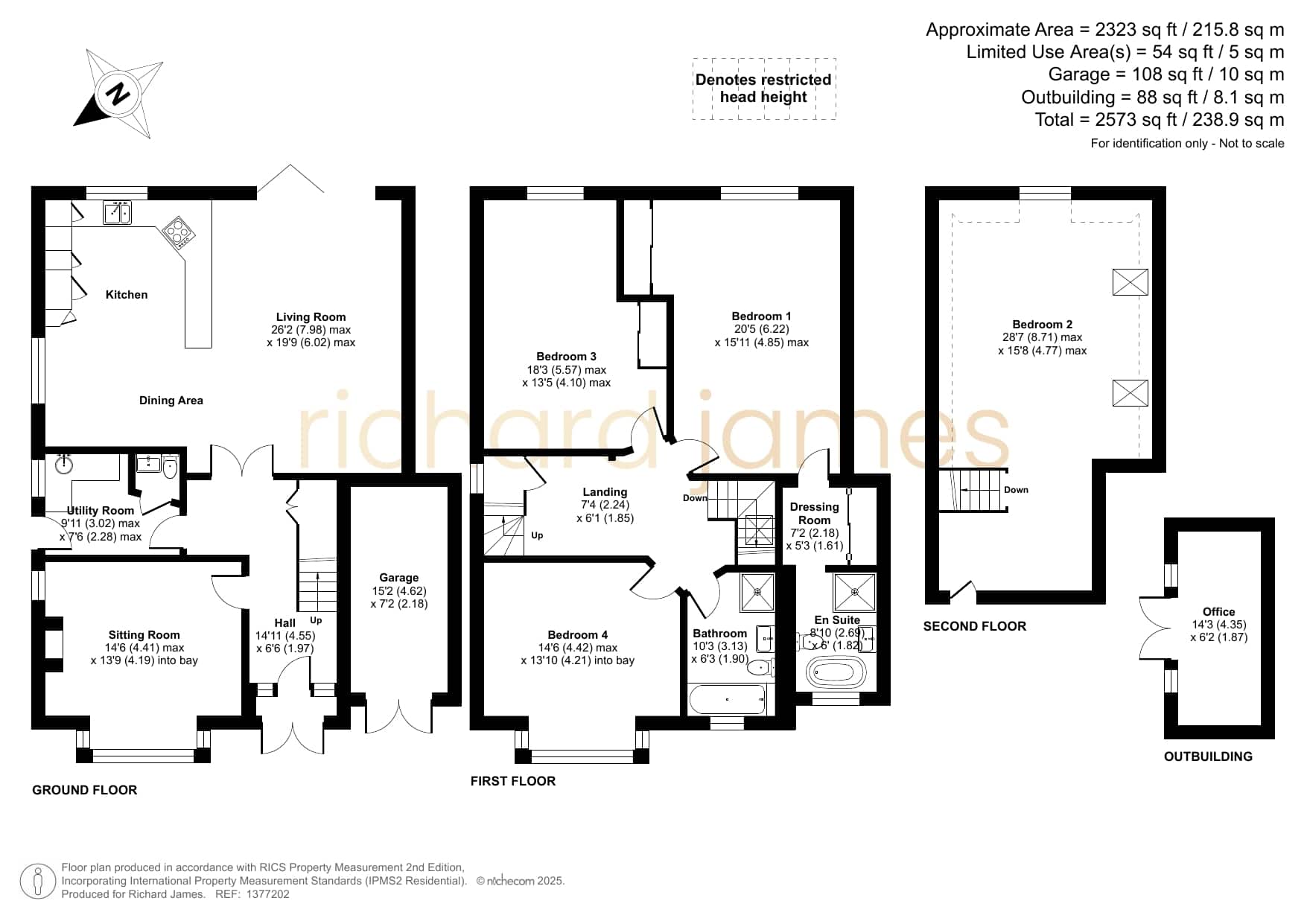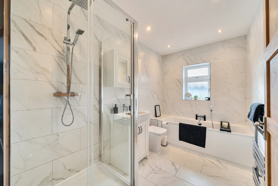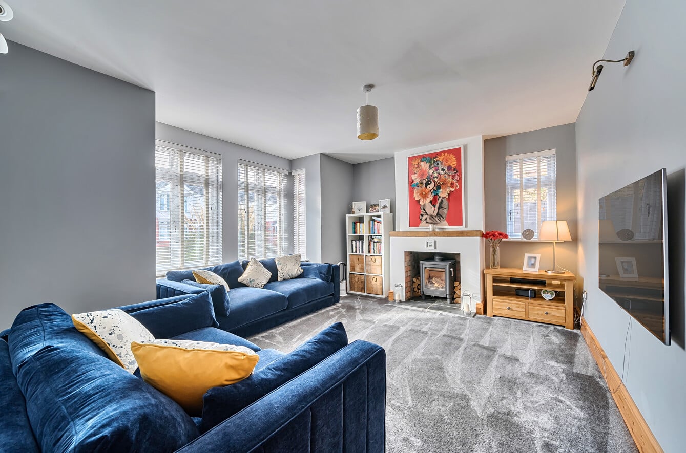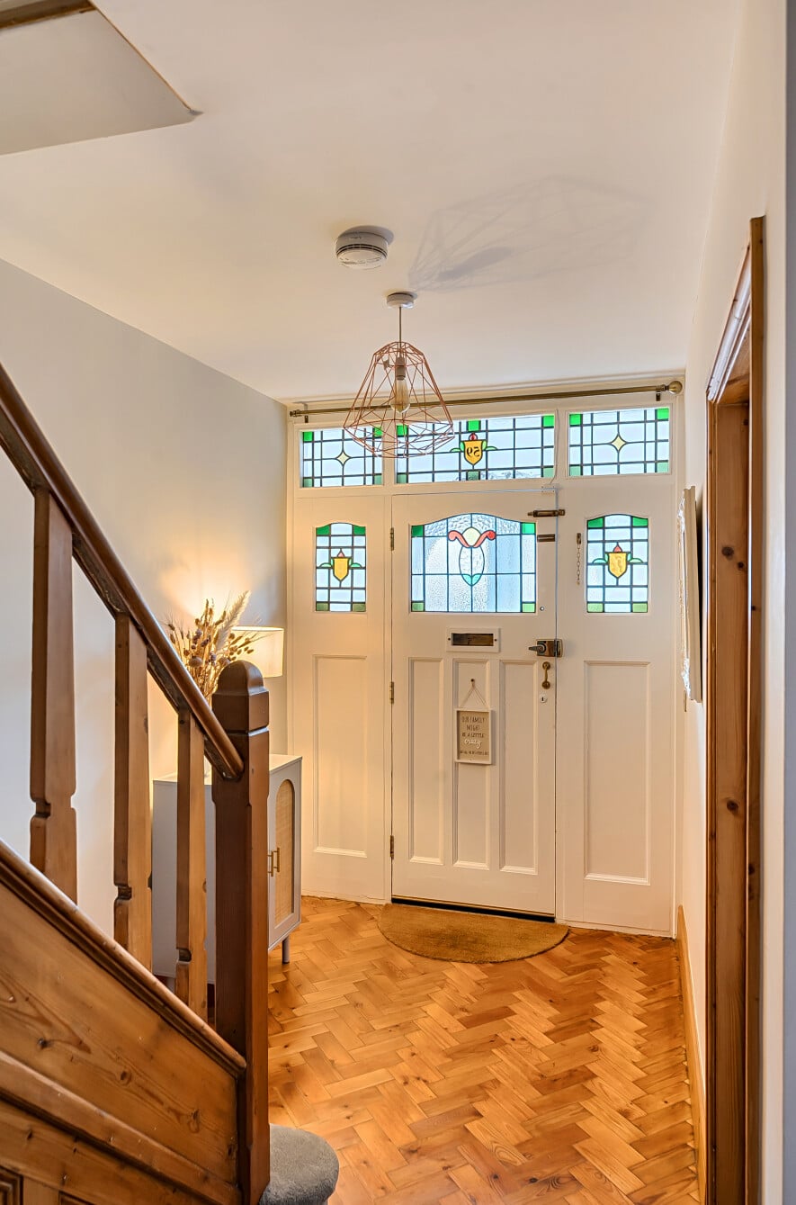 With the ground floor featuring an impressive entrance hallway with original parquet flooring and stained glass door and surround, a welcoming Sitting Room with bay window and log burner, a fitted Utility Room and Cloakroom, with double doors leading to the outstanding 26′ x 19′ open-plan Kitchen/Dining/Family Room. This contemporary space boasts bi-fold doors opening directly into the landscaped Rear Garden with Home Office, creating an ideal setting for both everyday living and entertaining.