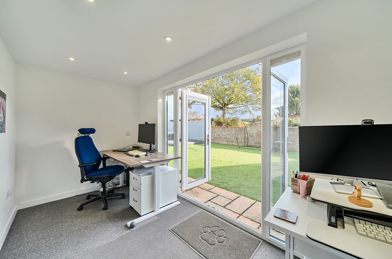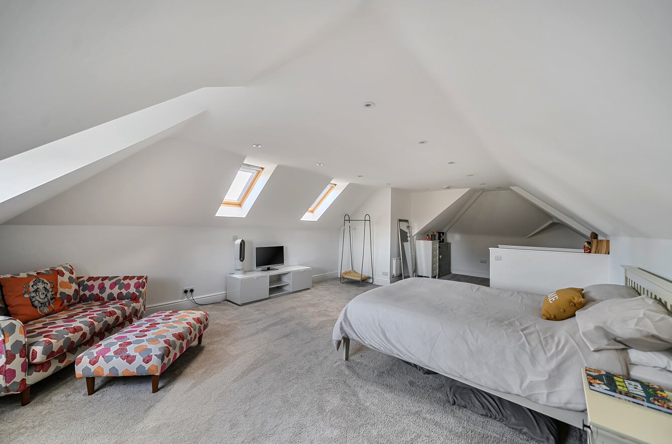 The top floor offers a superb additional 28′ Bedroom, providing excellent flexibility for guests or teenagers or additional office.