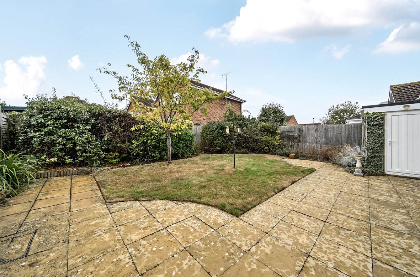 The large, well-maintained rear garden is a fantastic outdoor space, perfect for both relaxation and recreation. This spacious area is ideal for catching the sun and offers a mix of a paved patio, great for outdoor dining, and a lush lawn.