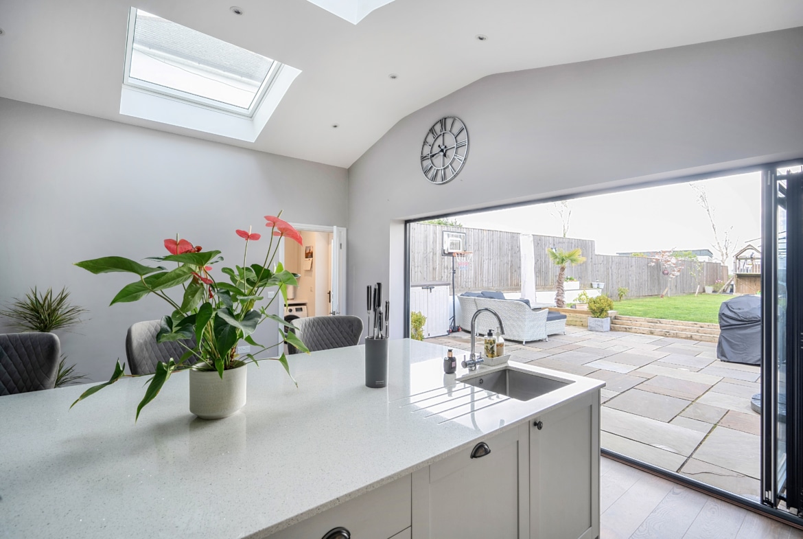 This beautifully extended semi-detached home delivers modern family living at its best, combining generous proportions with striking contemporary design. At its heart is an impressive open-plan kitchen, dining and family space—thoughtfully extended to create a bright, sociable hub. Bi-fold doors span the rear, seamlessly connecting indoors with the garden and flooding the room with natural light—perfect for entertaining or everyday living.