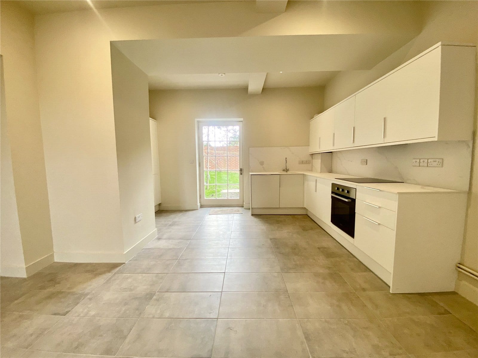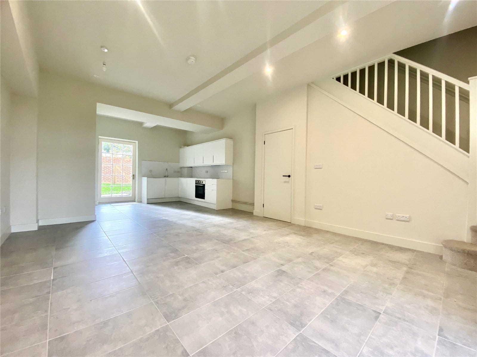 The property features a spacious open-plan living area with a modern kitchen/diner, ideal for entertaining or relaxing. Doors open onto private garden, providing a lovely outdoor space.