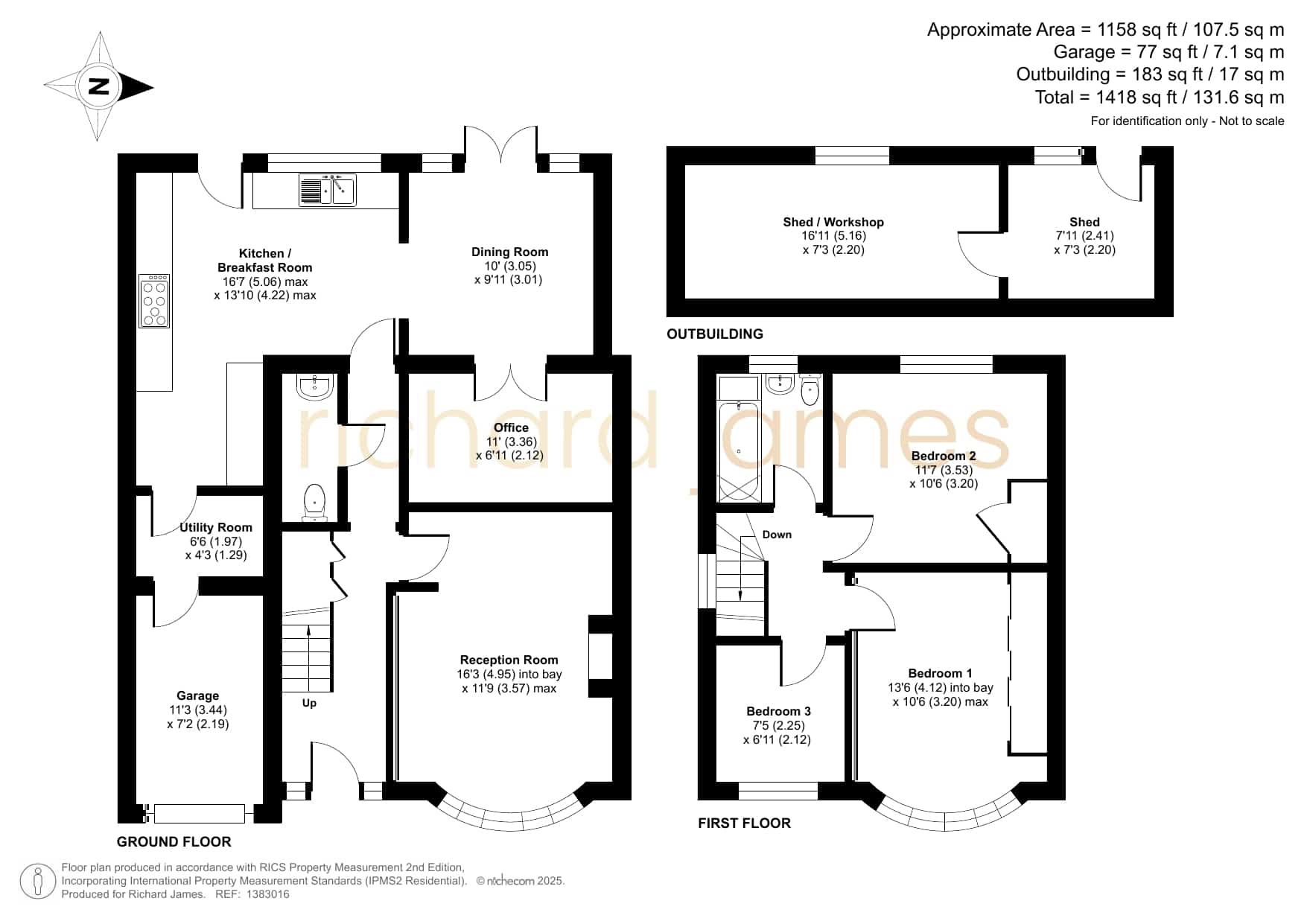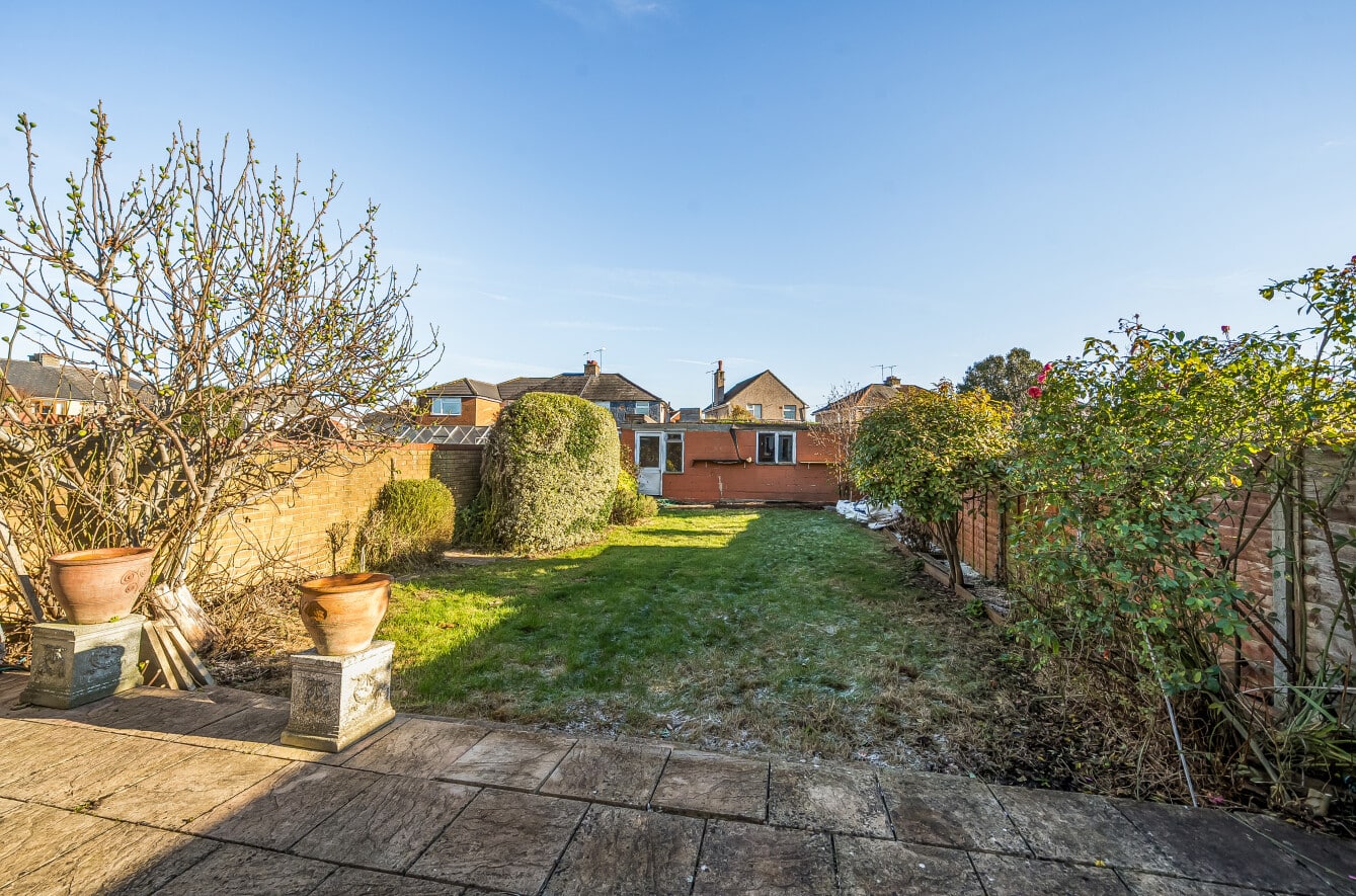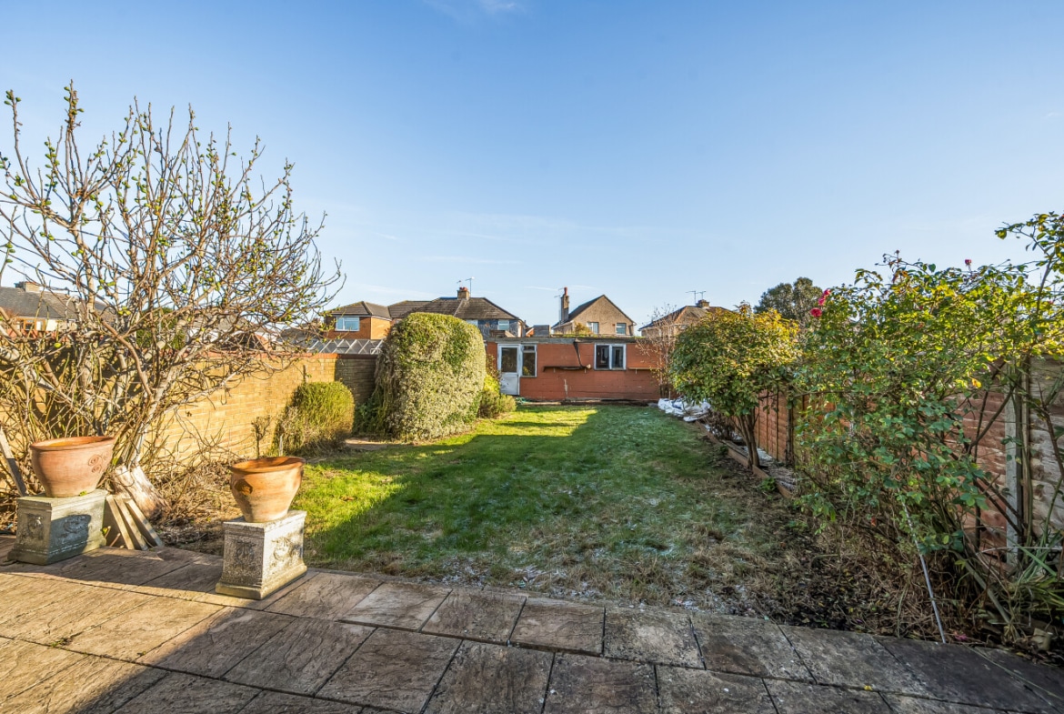 The generous rear garden is accessible from the ground floor extension and provides plenty of outdoor space, complete with an outbuilding at the far end—ideal for storage or potential workshop use.