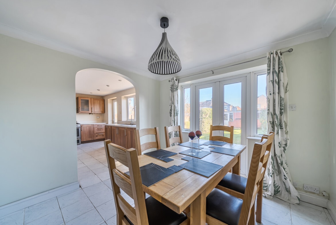 Upon entering, you are greeted by a large and welcoming hallway. To the front sits a bright bay-fronted lounge, perfect for relaxing. The rear of the home features a full-width kitchen with an archway leading into the dining room, as well as access to an additional office space—great for home working or flexible use. There is also a utility room, a downstairs WC under the stairs, and a garage area offering excellent storage.