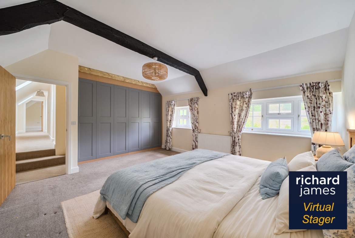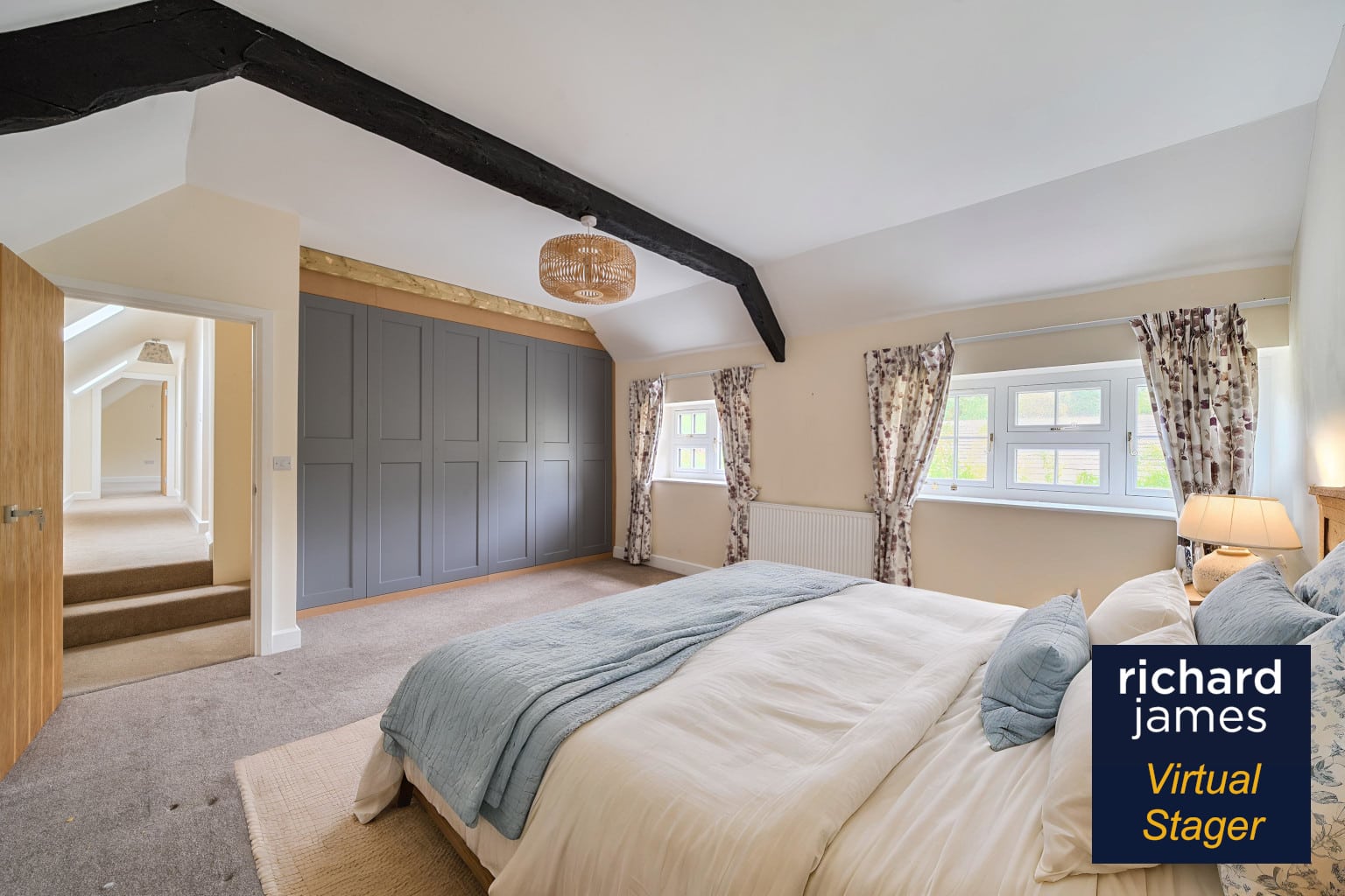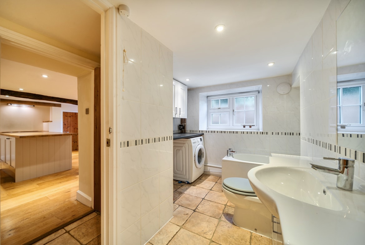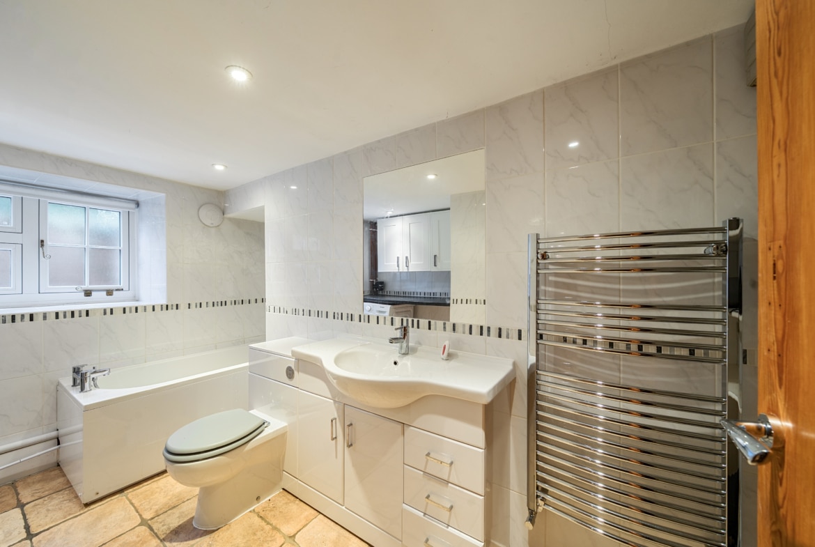 Upstairs, the first floor offers three generous bedrooms, including a luxurious principal suite with its own stylish en suite bathroom. Two further double bedrooms share a modern family bathroom, each with charming cottage windows and ample storage.