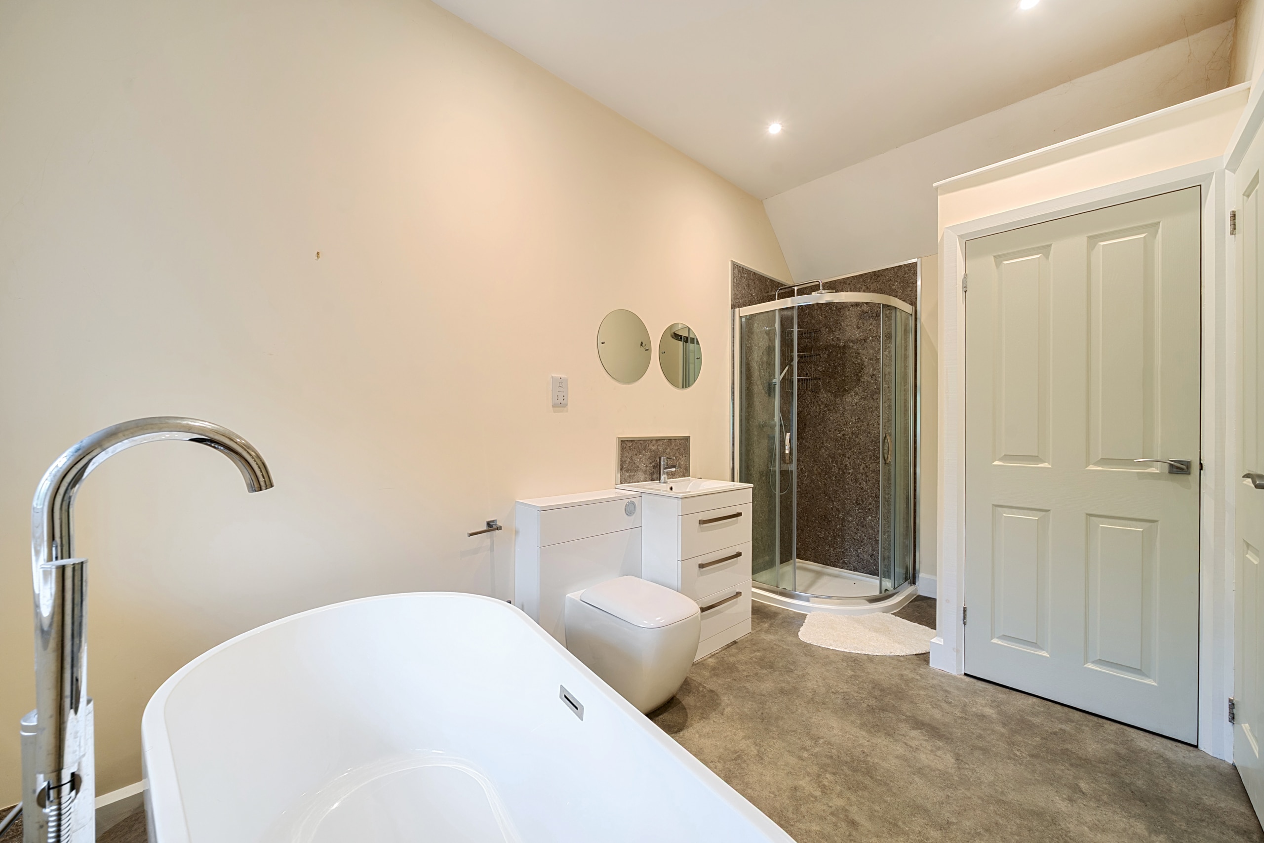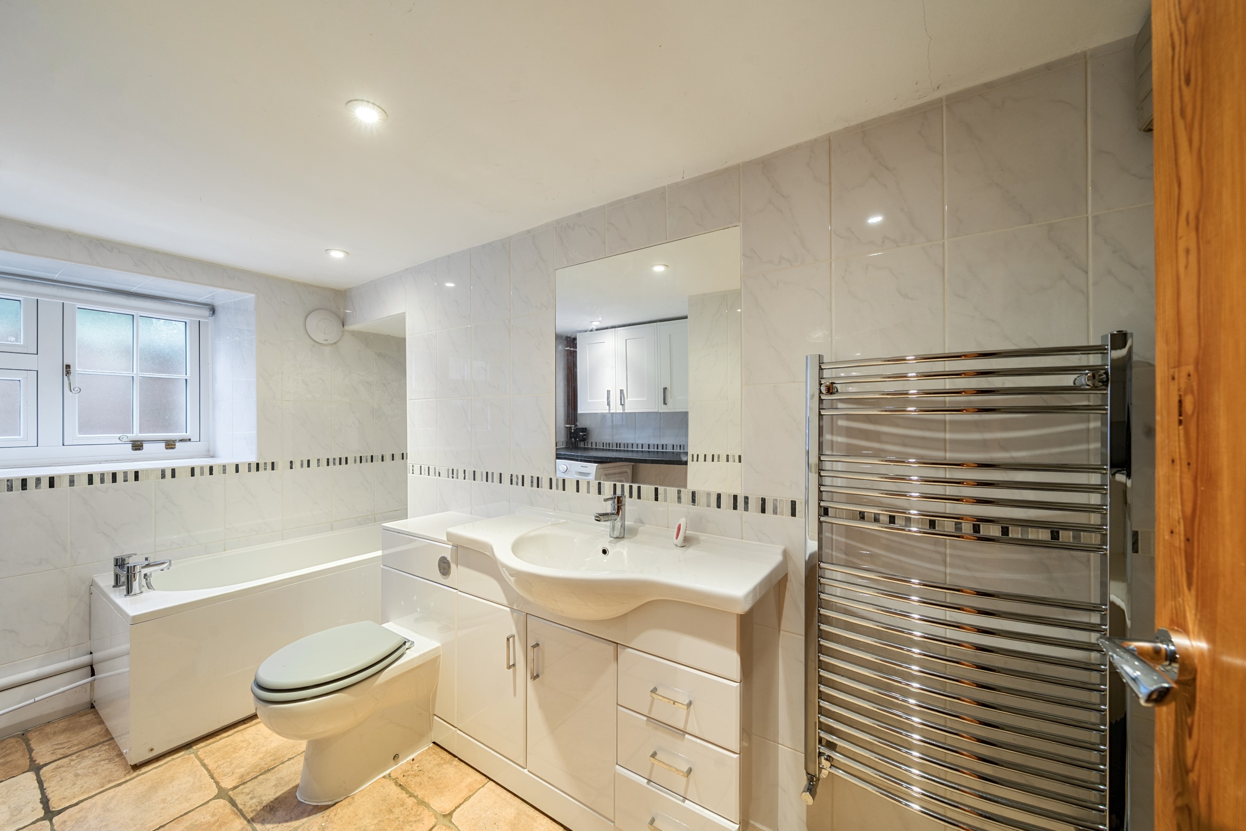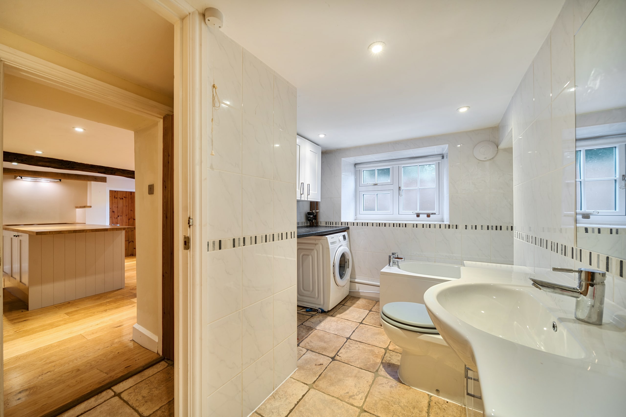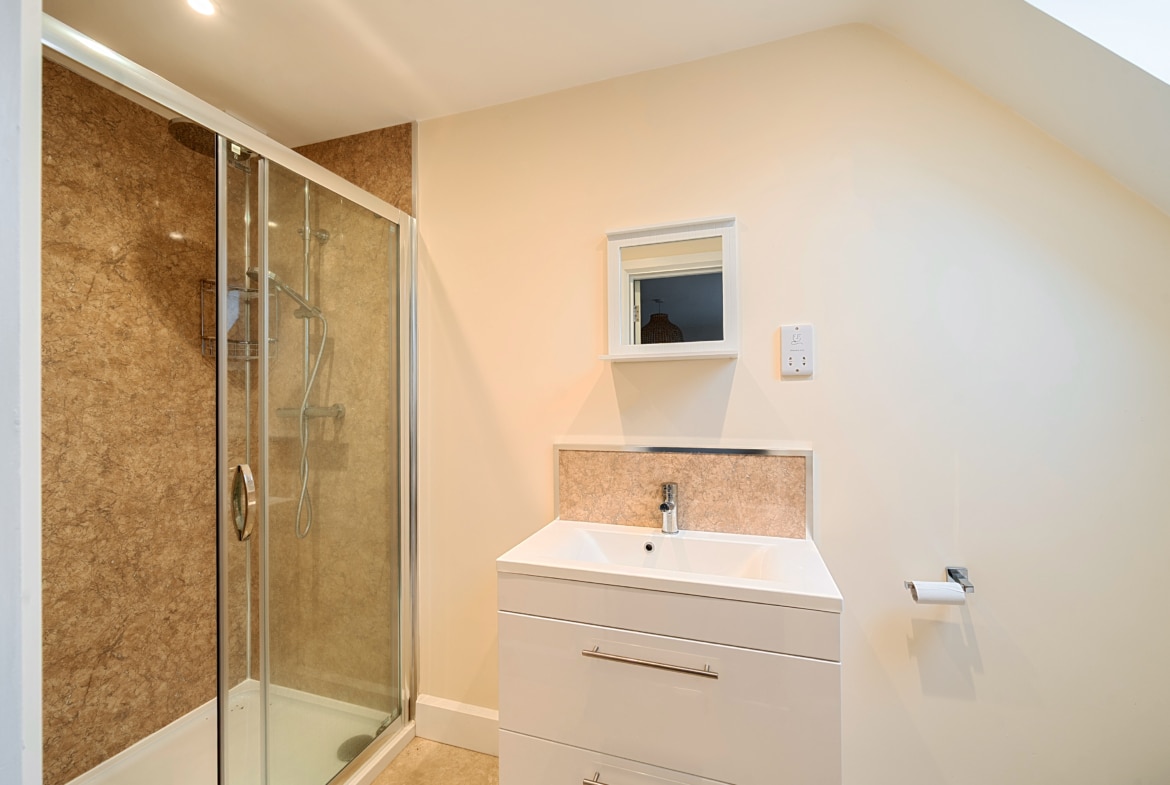 Upstairs, the first floor offers three generous bedrooms, including a luxurious principal suite with its own stylish en suite bathroom. Two further double bedrooms share a modern family bathroom, each with charming cottage windows and ample storage.