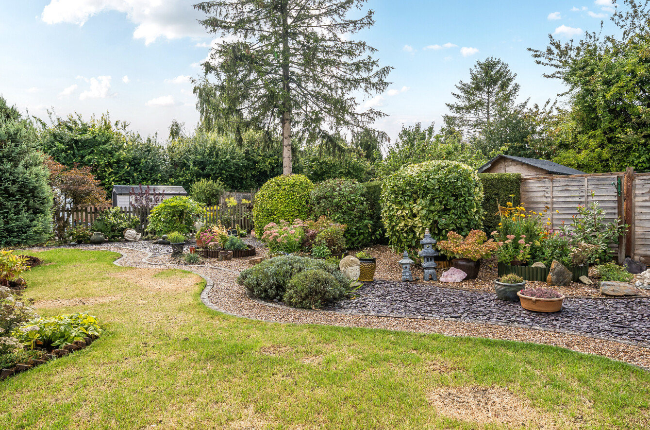 Externally, the property delivers strong kerb appeal with its in-and-out driveway, ample parking, and single garage. The rear garden is substantial, combining lawn and entertaining space to suit both family living and summer gatherings.