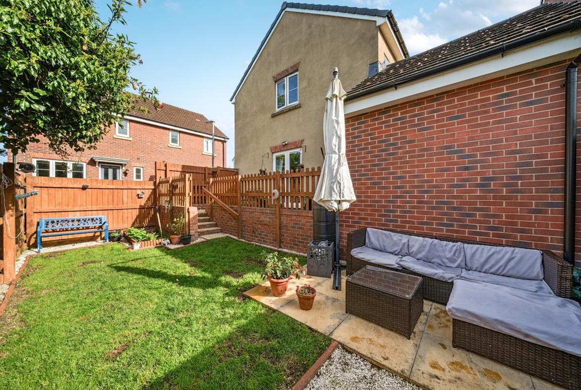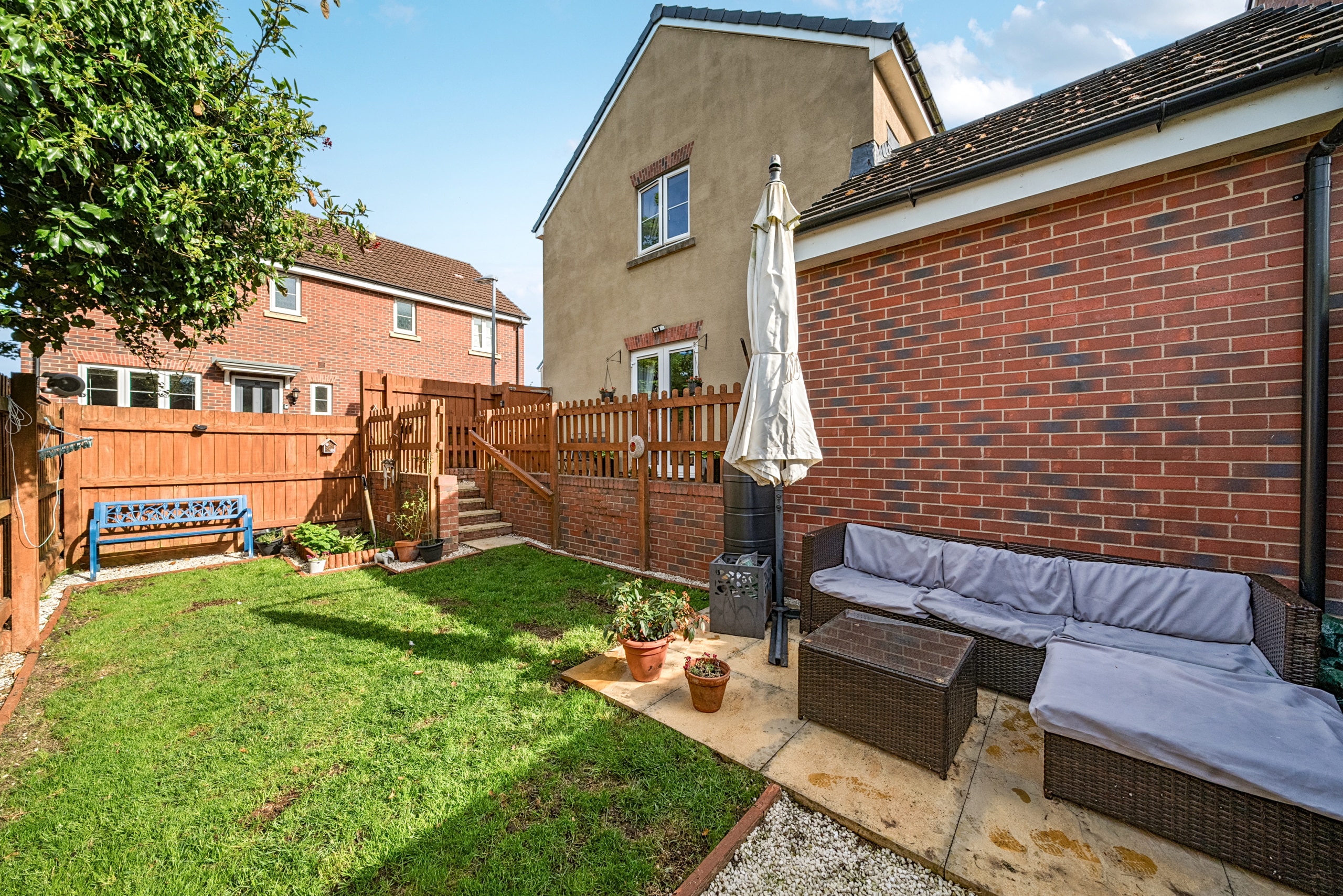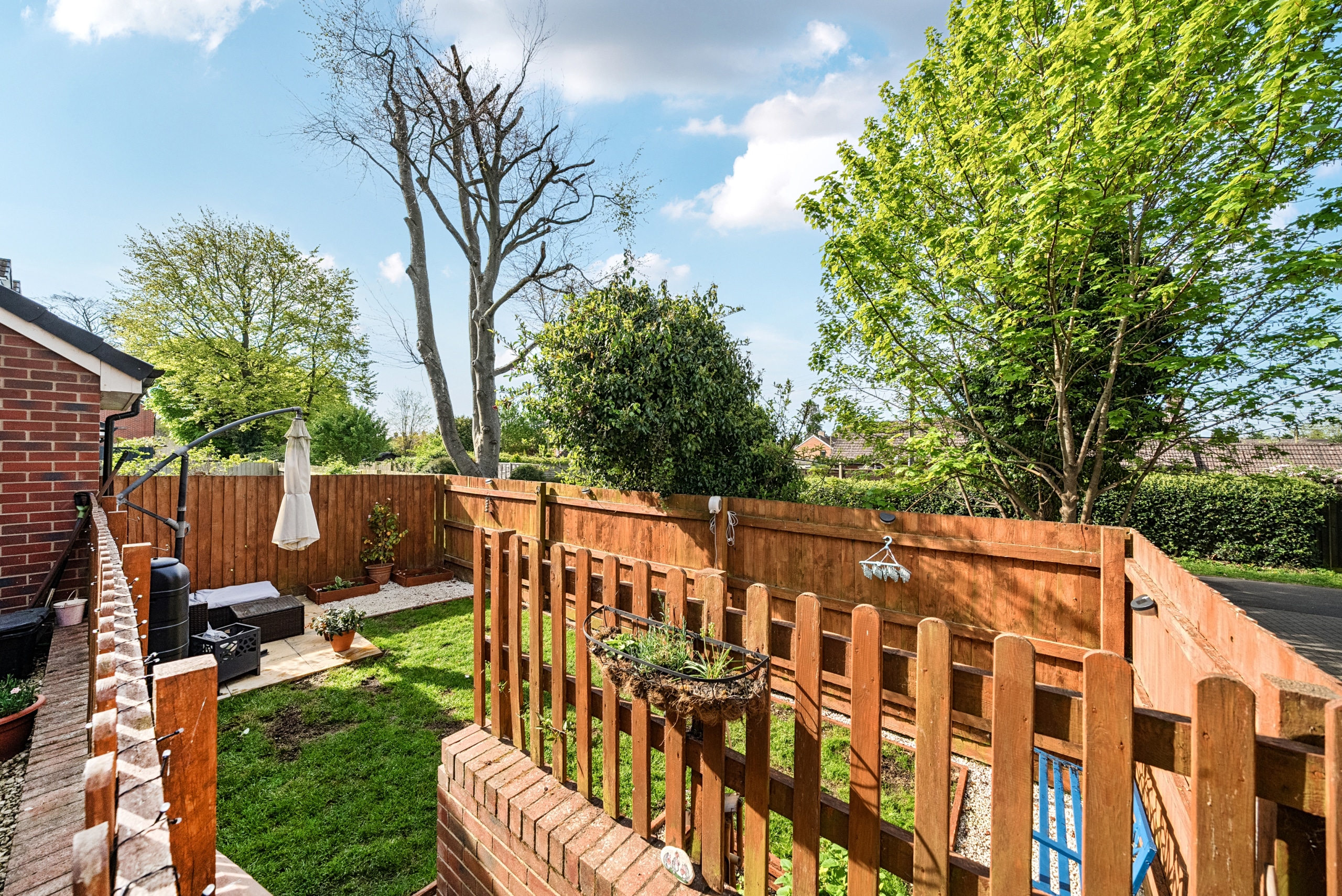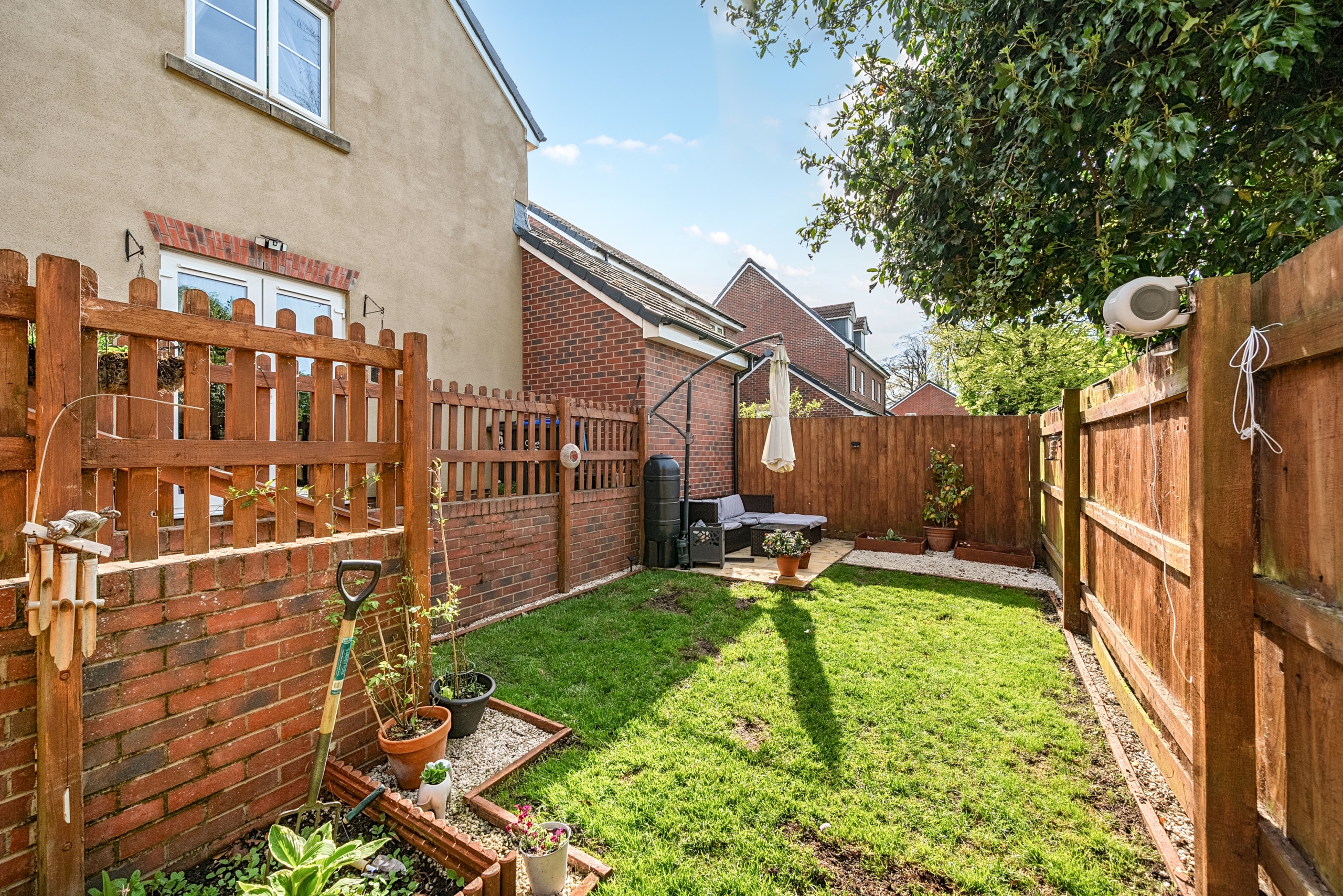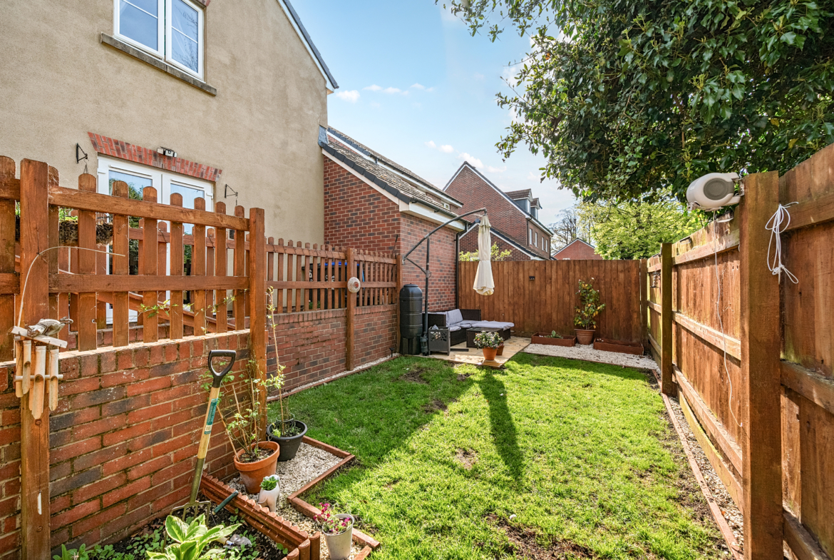 The property boasts a private garden—perfect for family gatherings and outdoor play. To the front, the property provides driveway parking and a garage, adding further practicality.