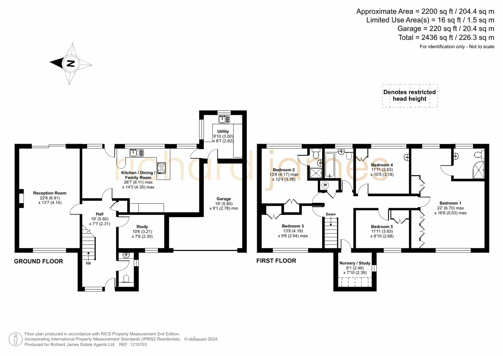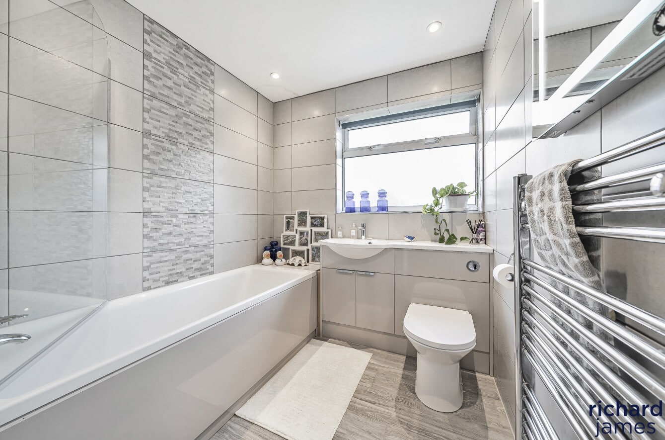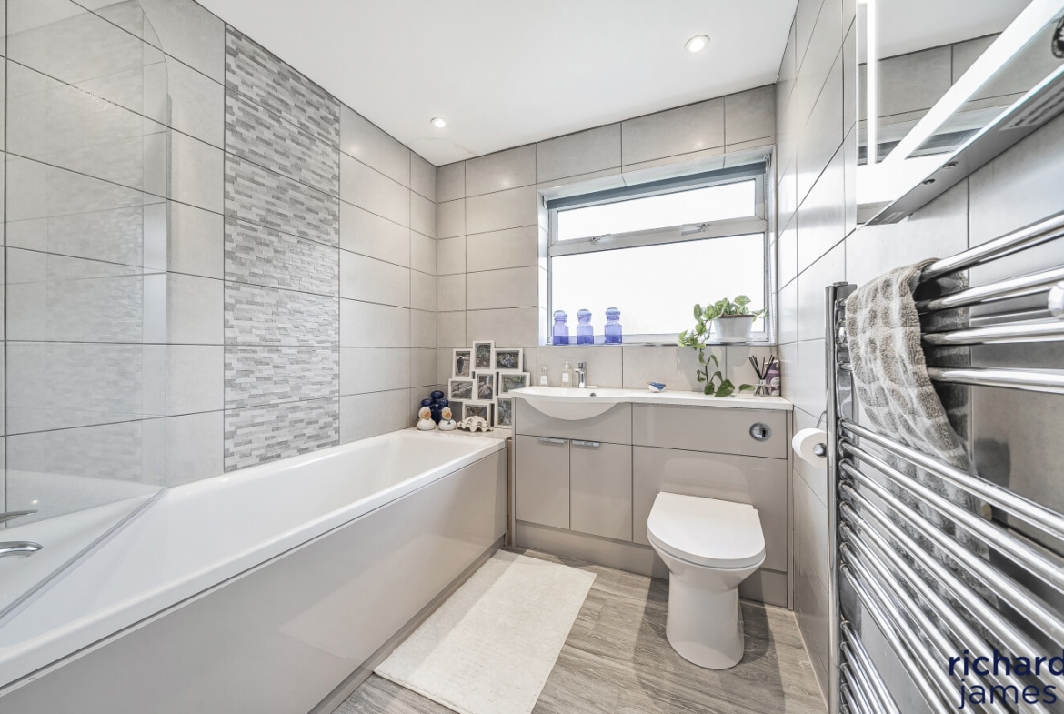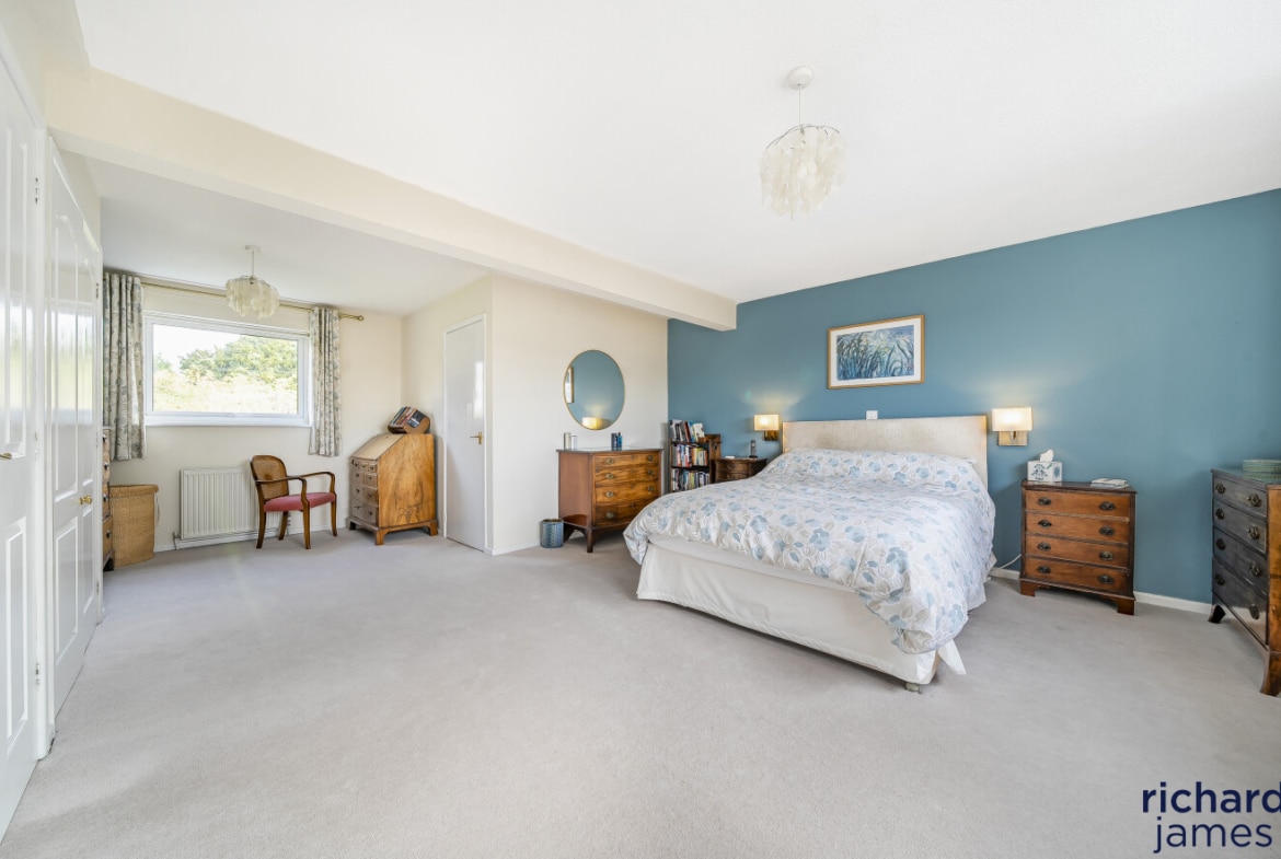 On the first floor, there are five well-proportioned bedrooms, two of which have en-suite bathrooms, providing convenience and privacy for family members or guests. Additionally, there’s a family bathroom and a sixth bedroom that could serve as a nursery or extra study.