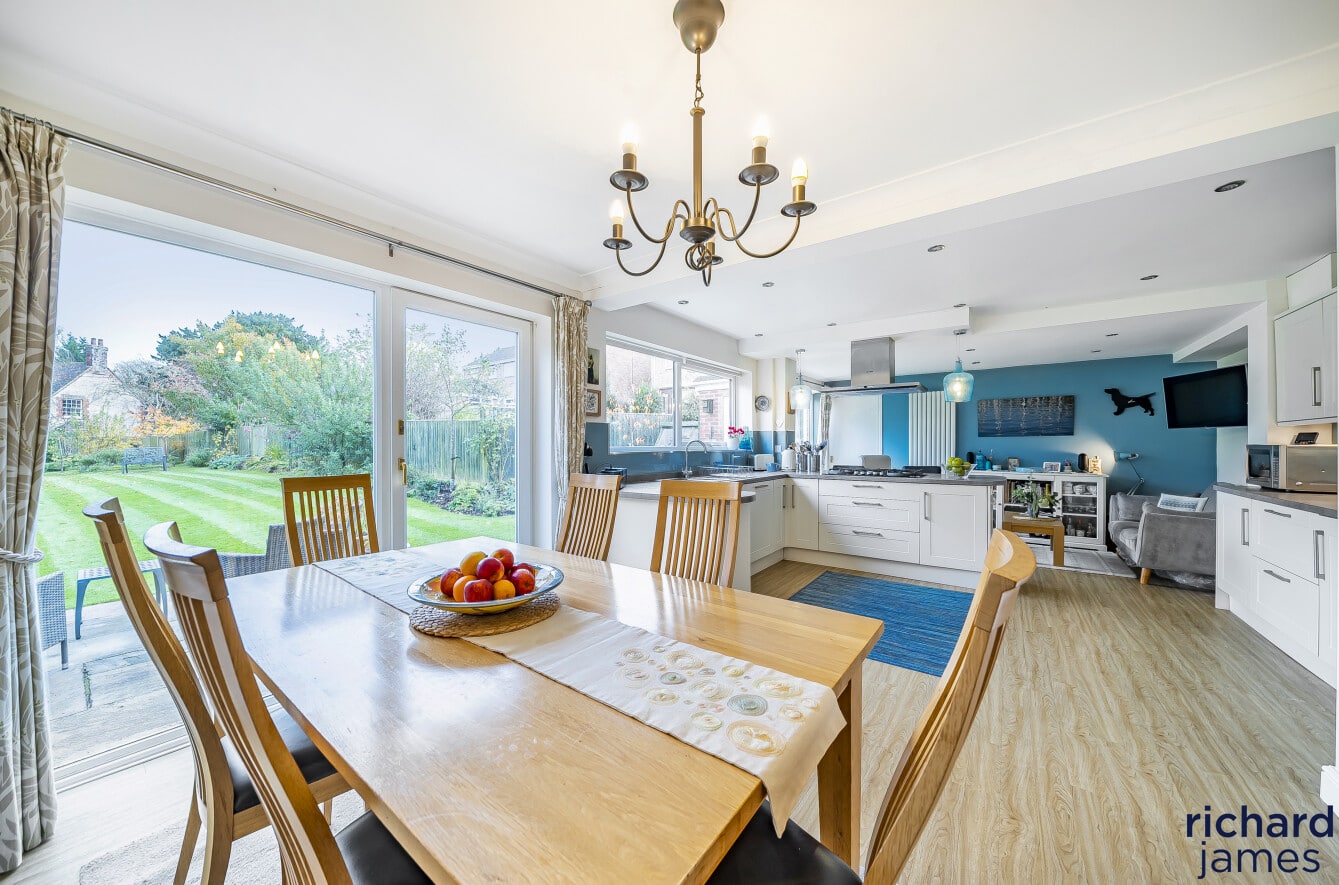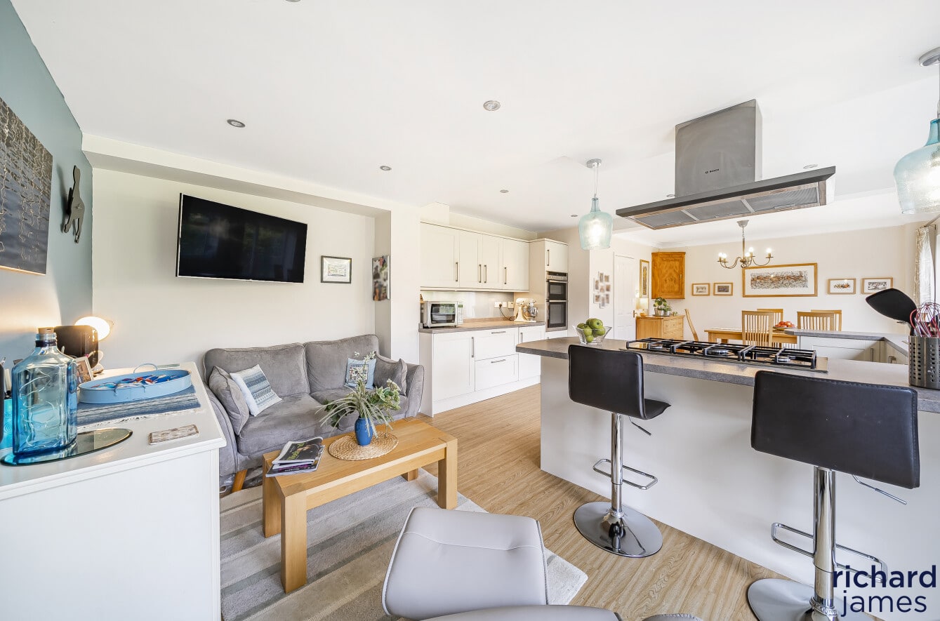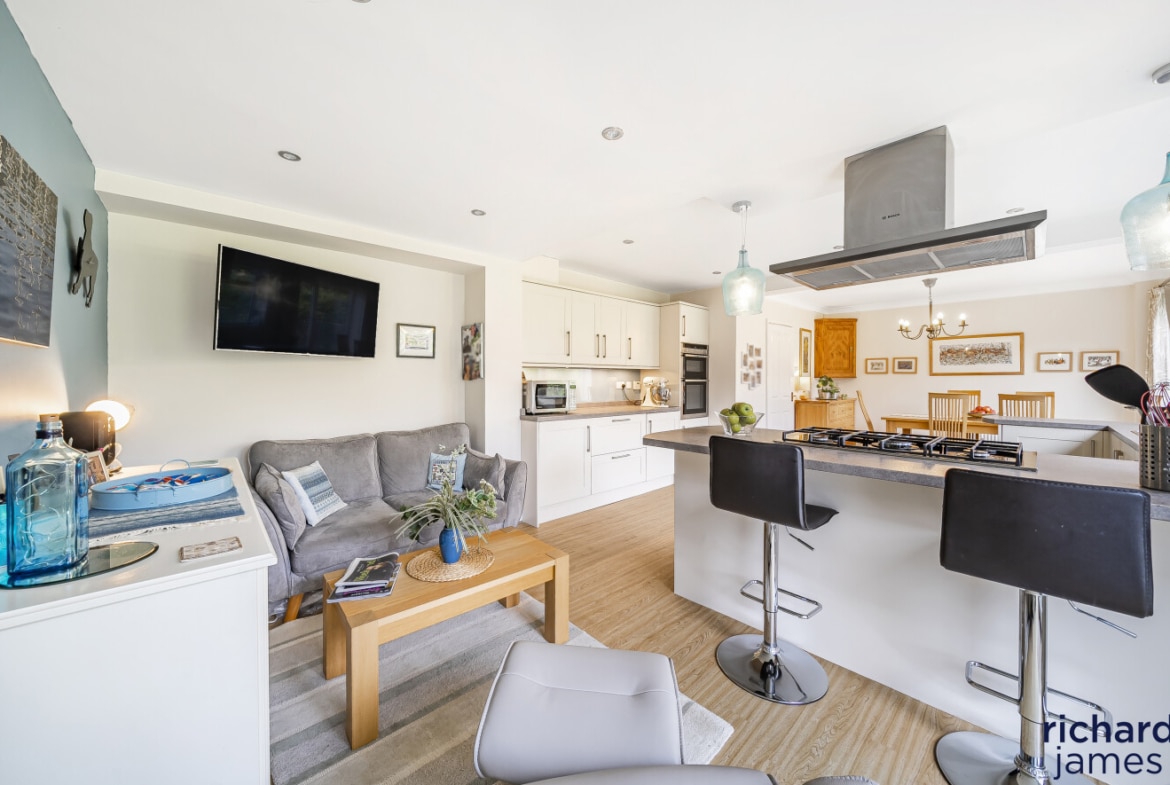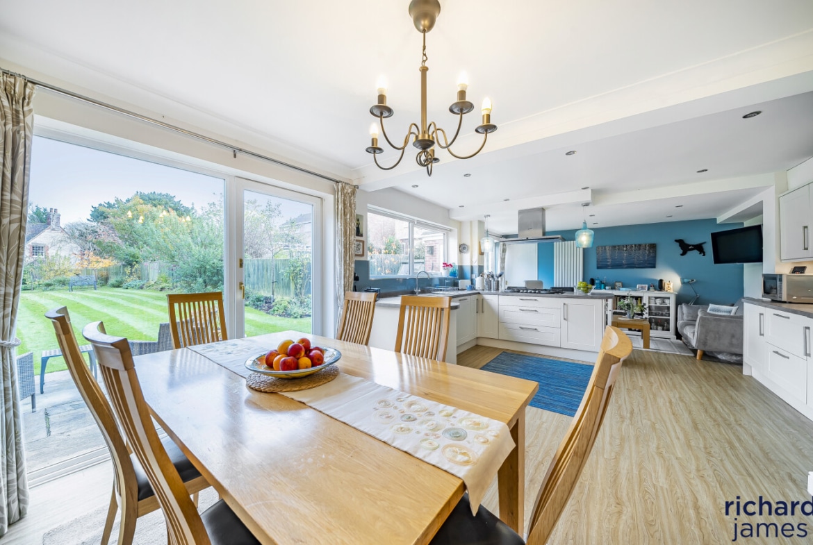 The property has been contiually enhanced for both style and functionality, the home features a large, open-plan kitchen, dining, and family room—a true focal point of the property with a dual-aspect living room that fills the space with light as well as study, cloakroom, and a utility room, as well as a one-and-a-half garage for added storage or parking.