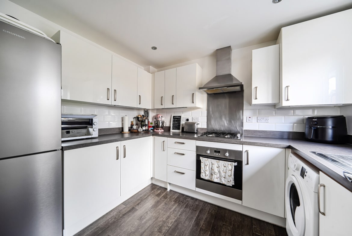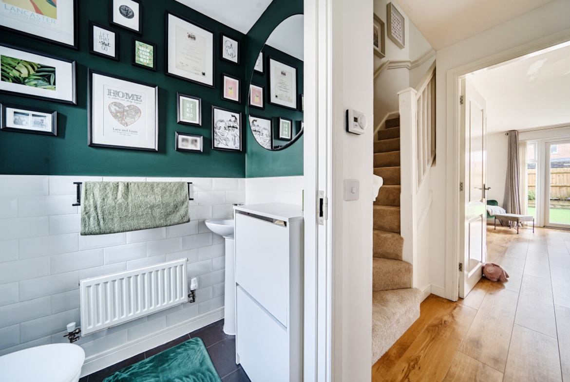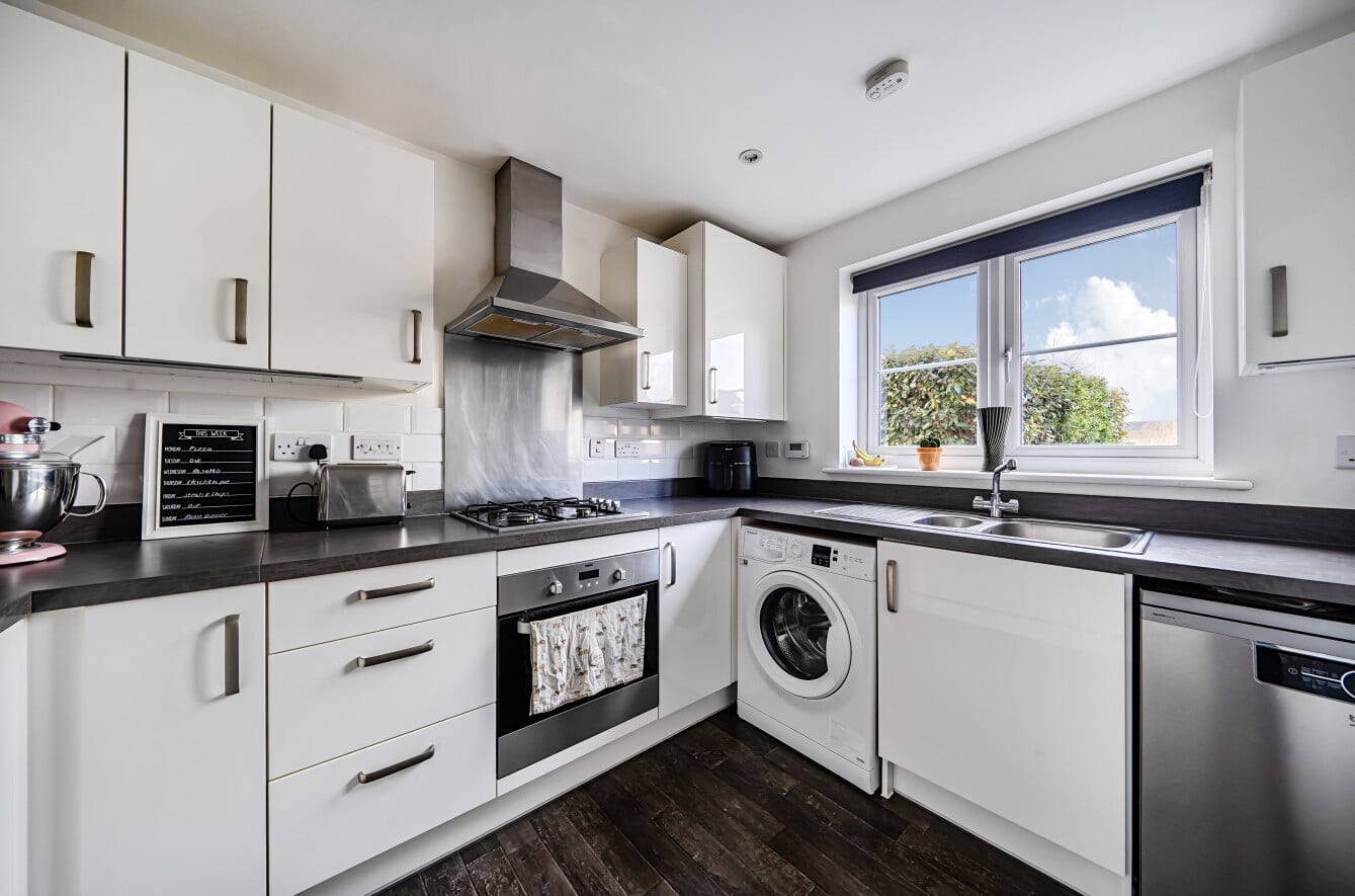 To the front of the property, you’re greeted by a private driveway offering convenient off-road parking. Step inside and you’ll find a convenient downstairs WC, ideal for guests and everyday practicality. The lovely kitchen offers ample storage and generous workspace, making it both stylish and functional for busy households.