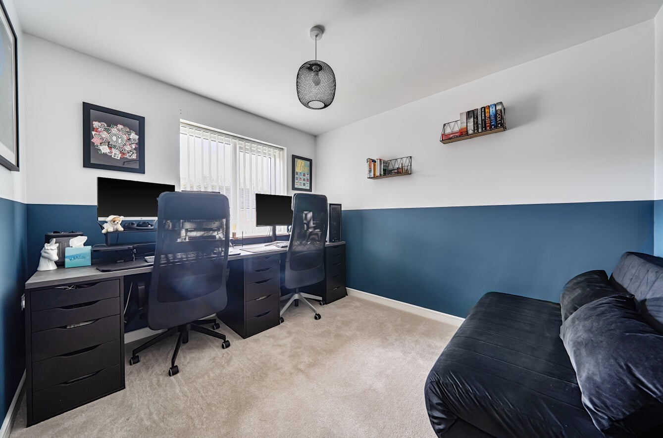 Upstairs, the property continues to impress. The master bedroom benefits from its own private ensuite, creating a peaceful retreat. There is also a bright double bedroom and a versatile third room, ideal as a nursery, home office, or guest bedroom. The upstairs is completed by a well-appointed and functional family bathroom.