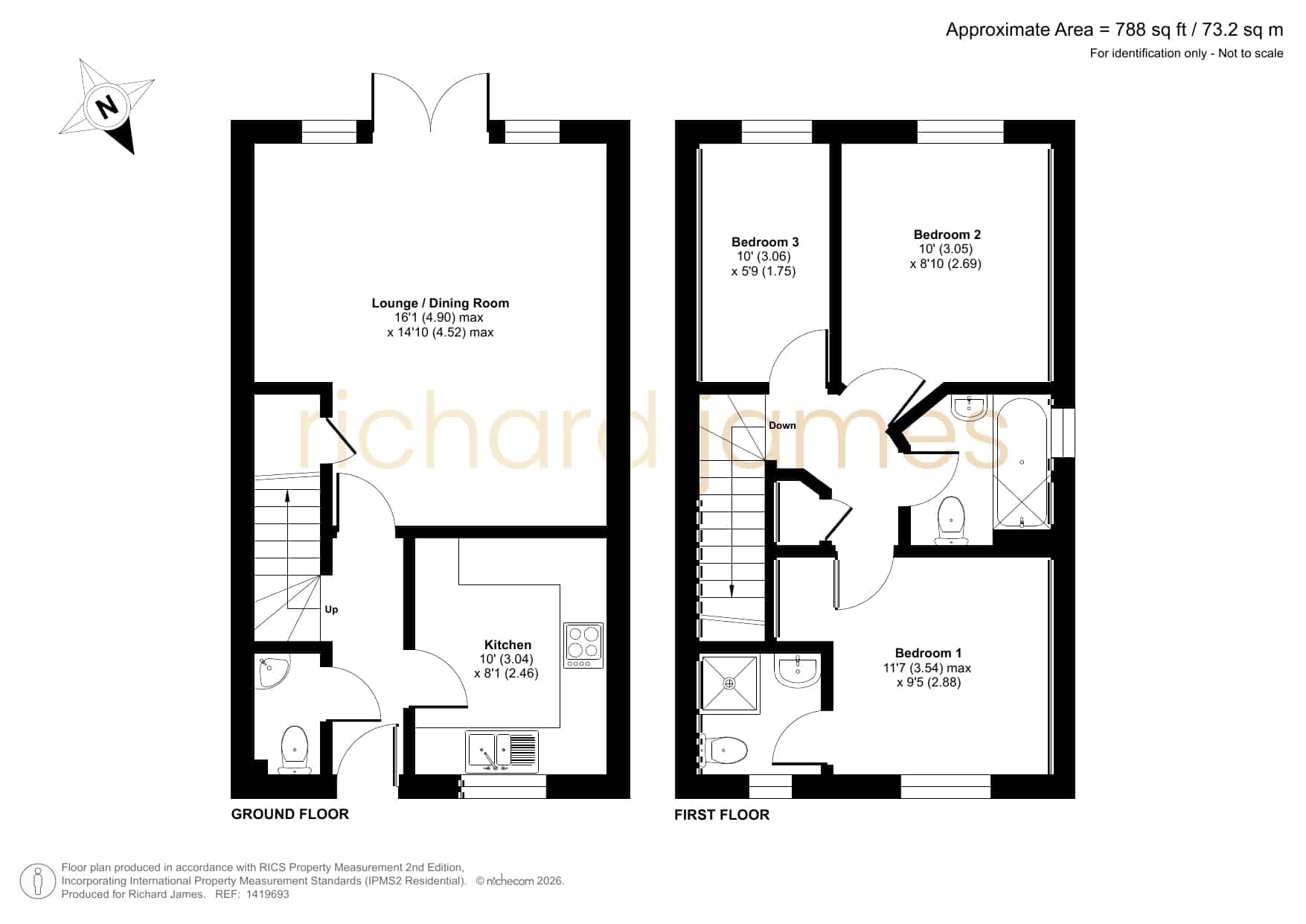 A beautifully presented three-bedroom home in an ideal location, featuring a private driveway, downstairs WC, and a well-equipped kitchen with ample storage. The spacious and bright lounge/diner offers excellent living and entertaining space, with access to a modern rear garden. Upstairs boasts a master bedroom with ensuite, a further bright double room, a versatile third bedroom, and a functional family bathroom. Conveniently located close to local amenities, shops, and transport links, this property is perfect for modern family living.