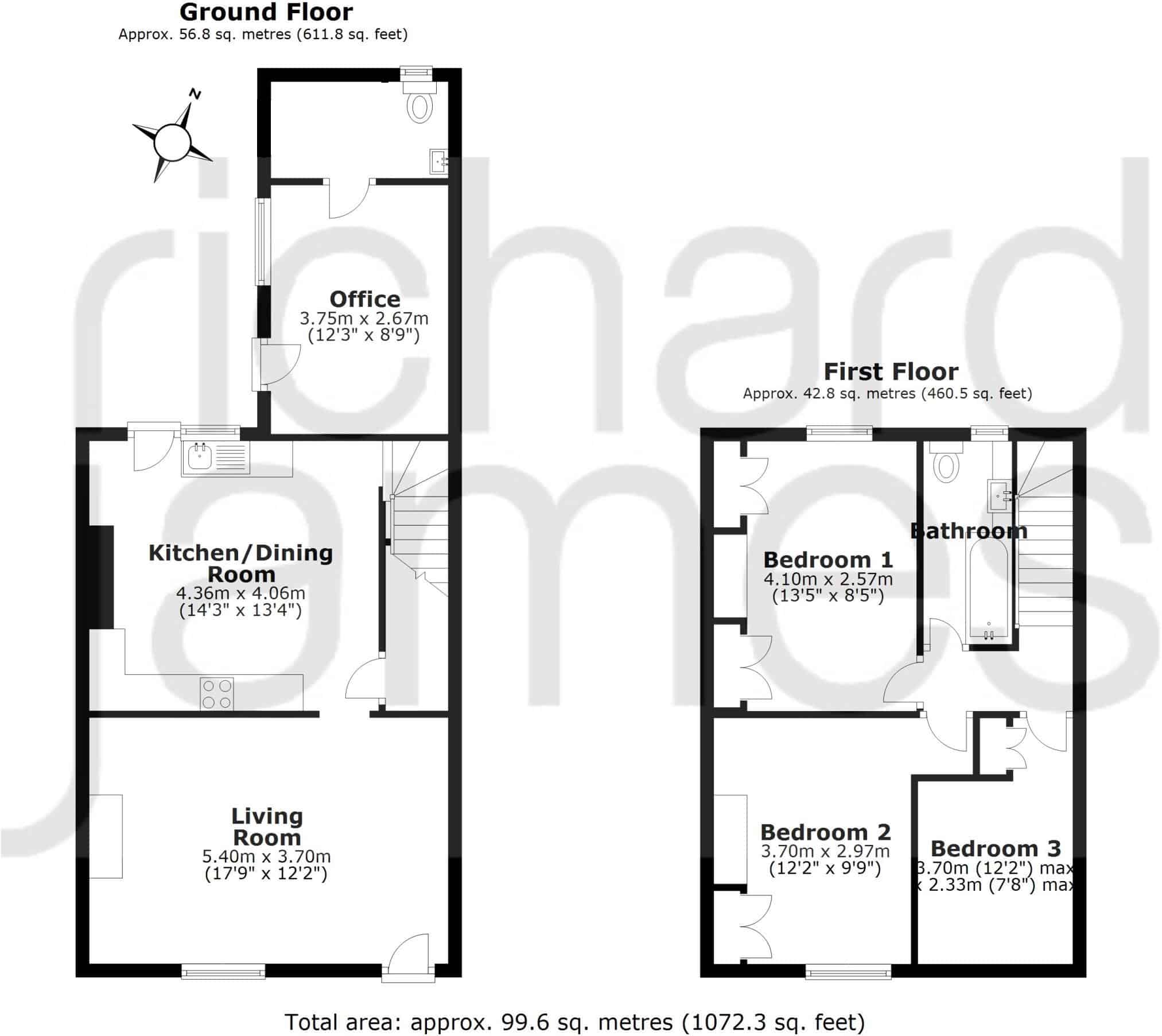 Upstairs, there are three well-proportioned bedrooms, two of which are doubles, along with a family bathroom.