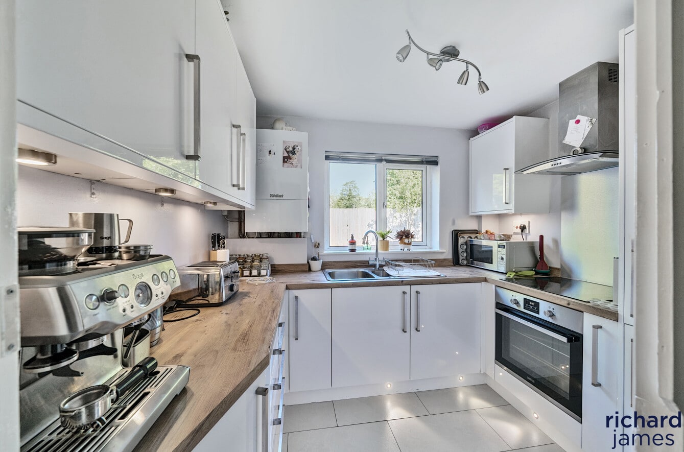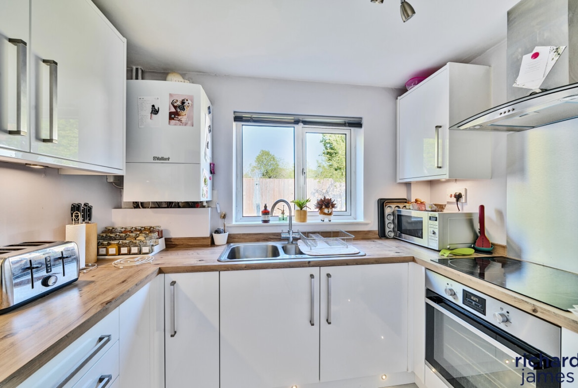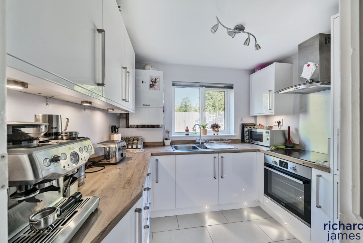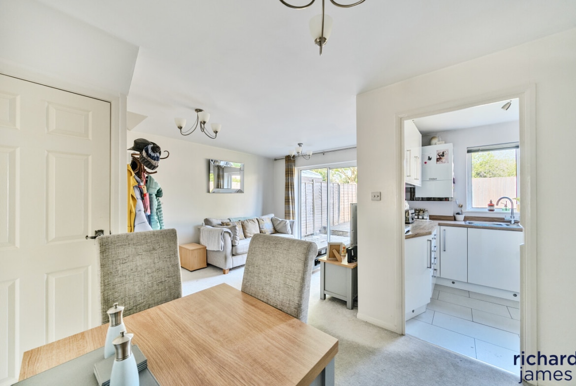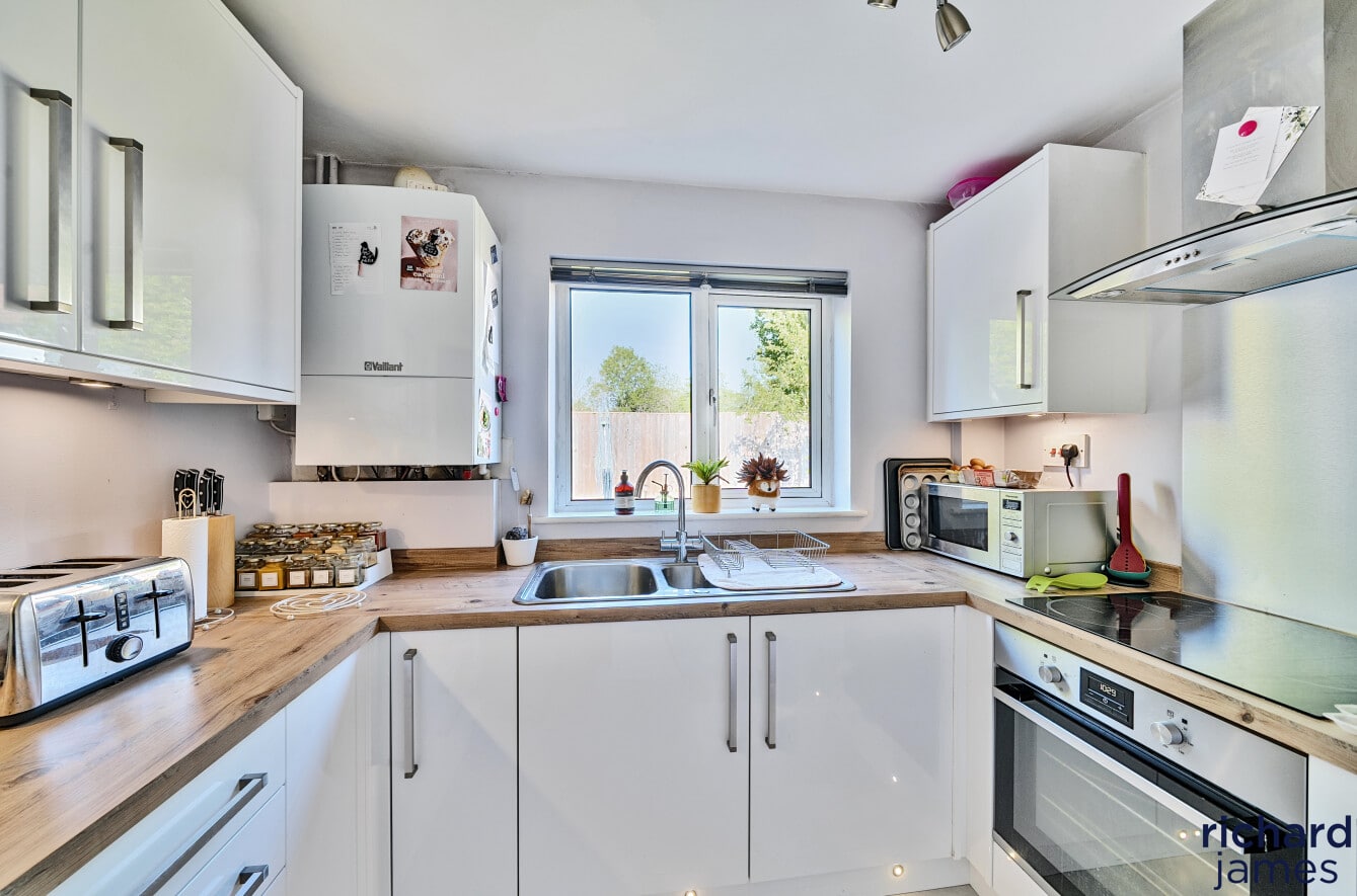 The house is situated within a courtyard of a cul-de-sac and benefits from parking for two vehicles. The rear of the property overlooks a green area/childrens play area giving an element of privacy.