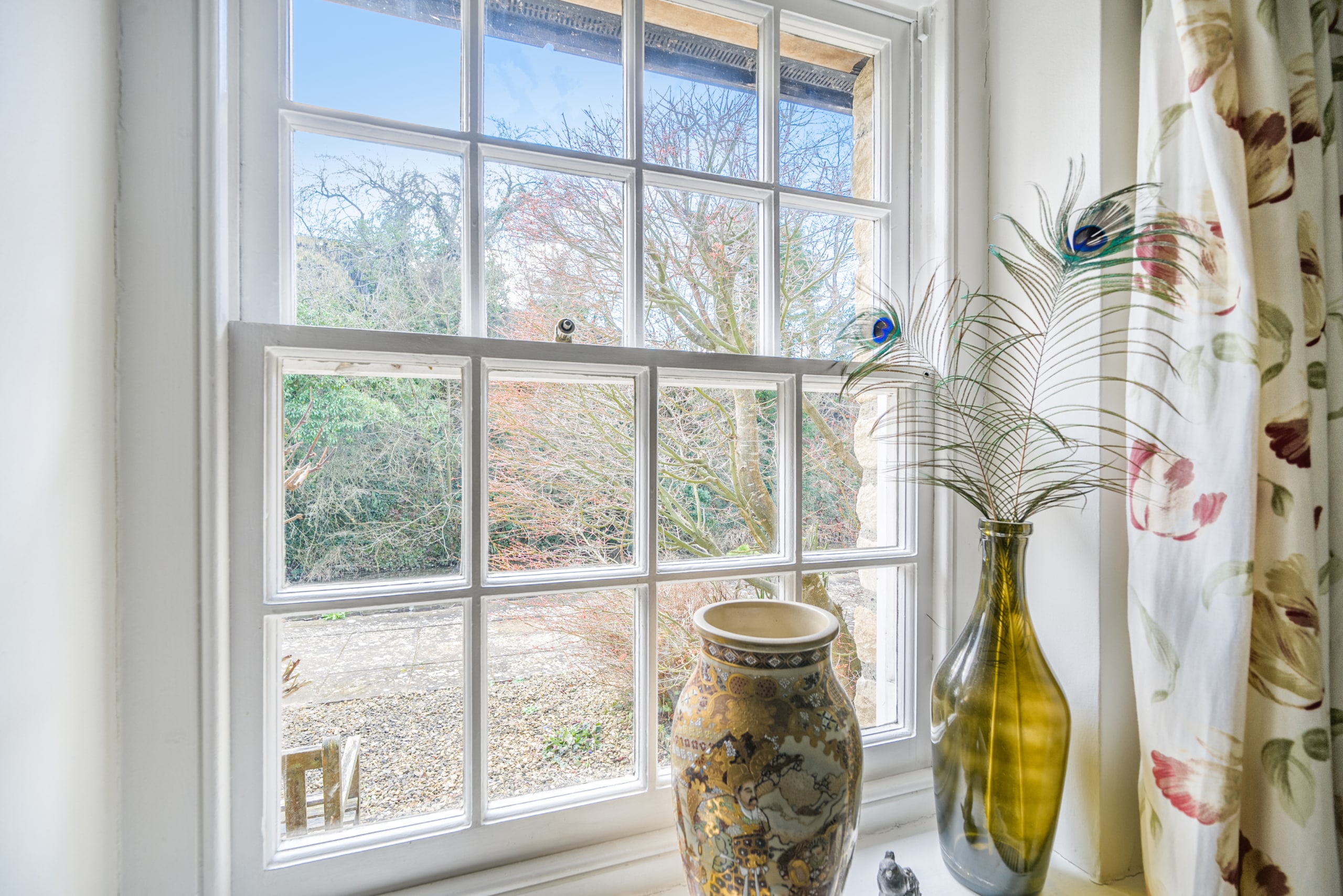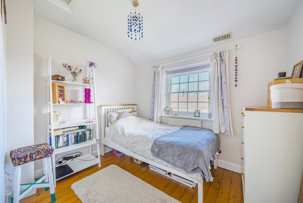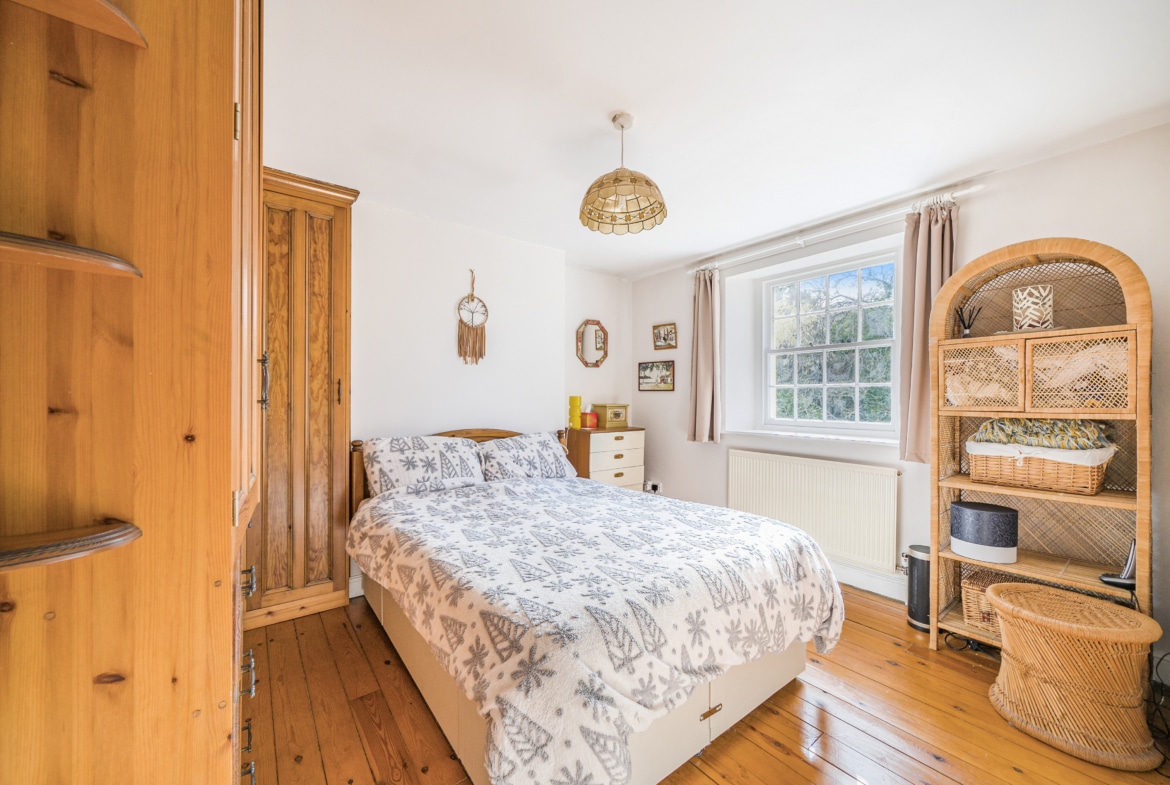 Bedroom two offers polished floorboards, space for a double bed and a sash window to the rear overlooking the garden and countryside beyond.