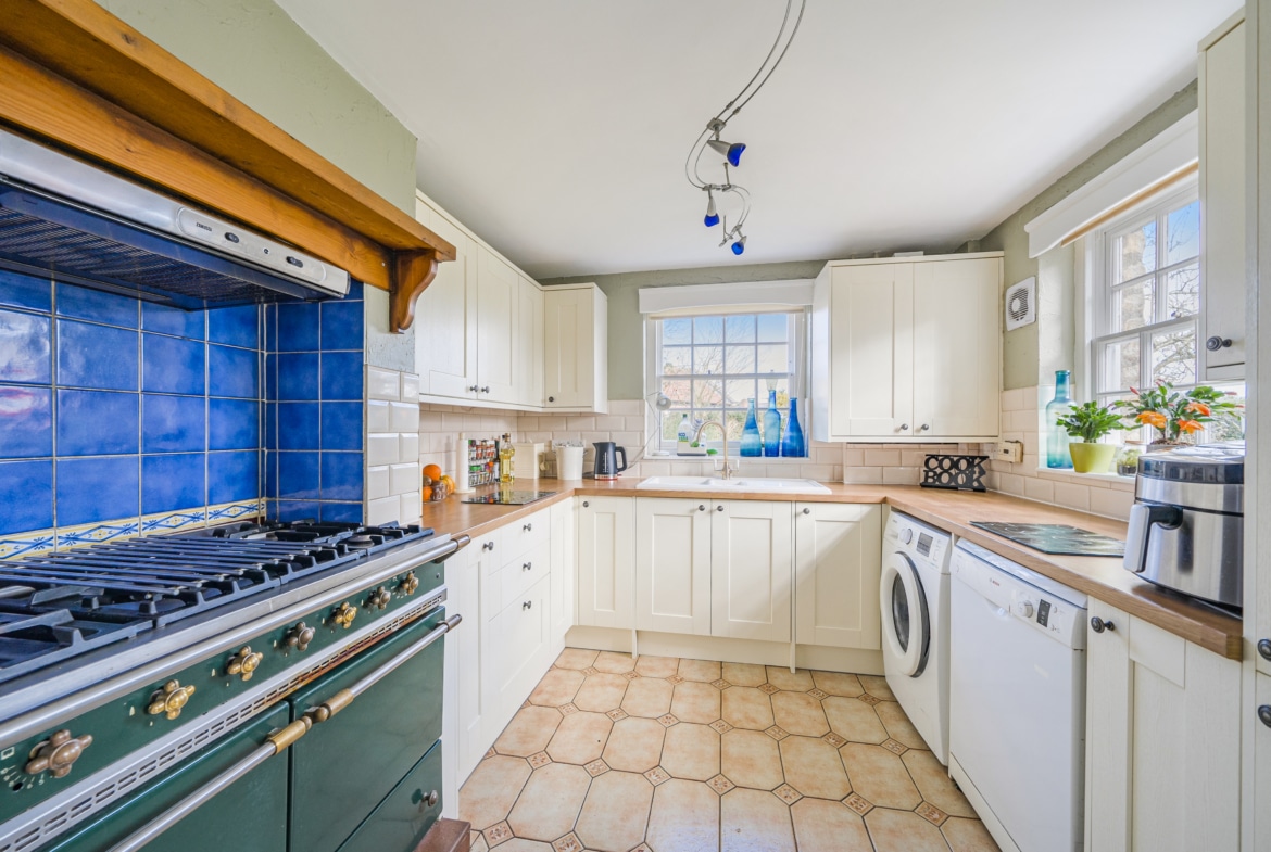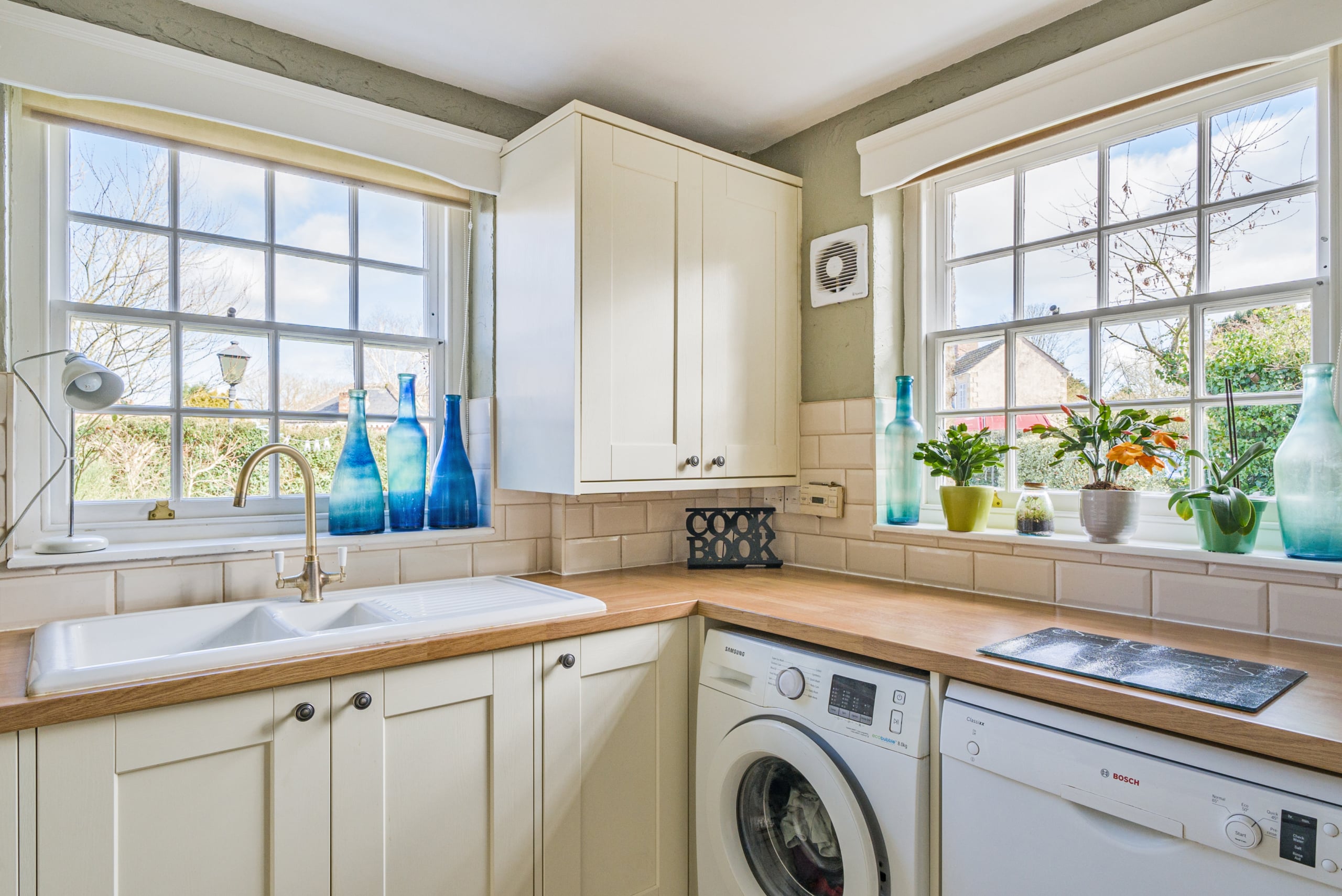 The Kitchen/Breakfast room is light and spacious enjoying a lovely country kitchen with a Range cooker and integrated fridge/freezer. There is plenty of space for breakfast/dining table and French glazed doors out to the garden