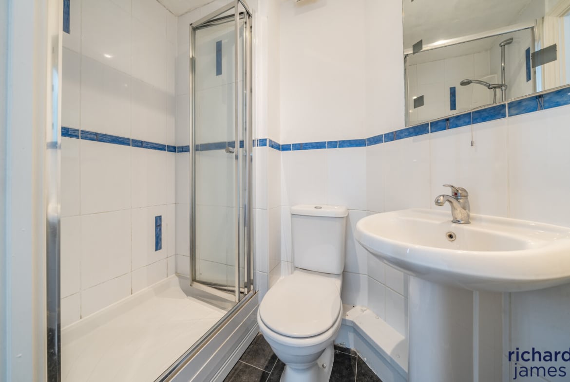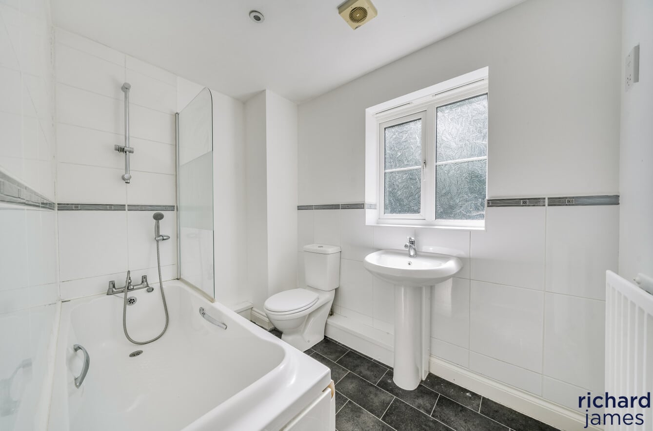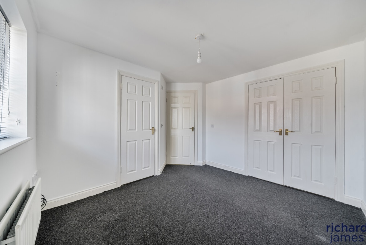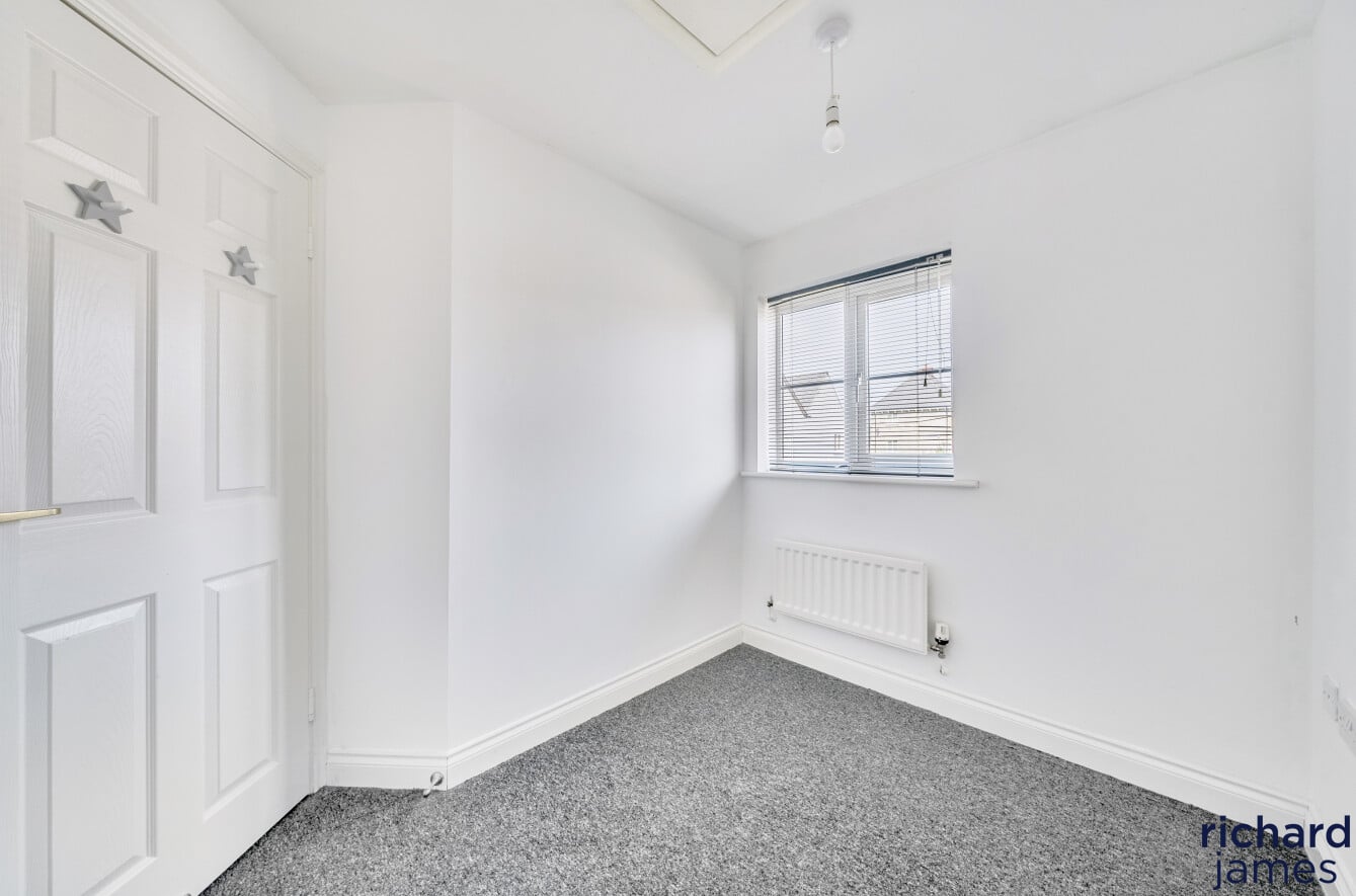 Upstairs there are two double bedrooms and a single bedroom that is noticeably larger than those typically found in three-bedroom homes — ideal as a comfortable bedroom, spacious home office, or hobby room. The main bedroom features built-in wardrobes and an en-suite shower room, while a family bathroom serves the remaining bedrooms.