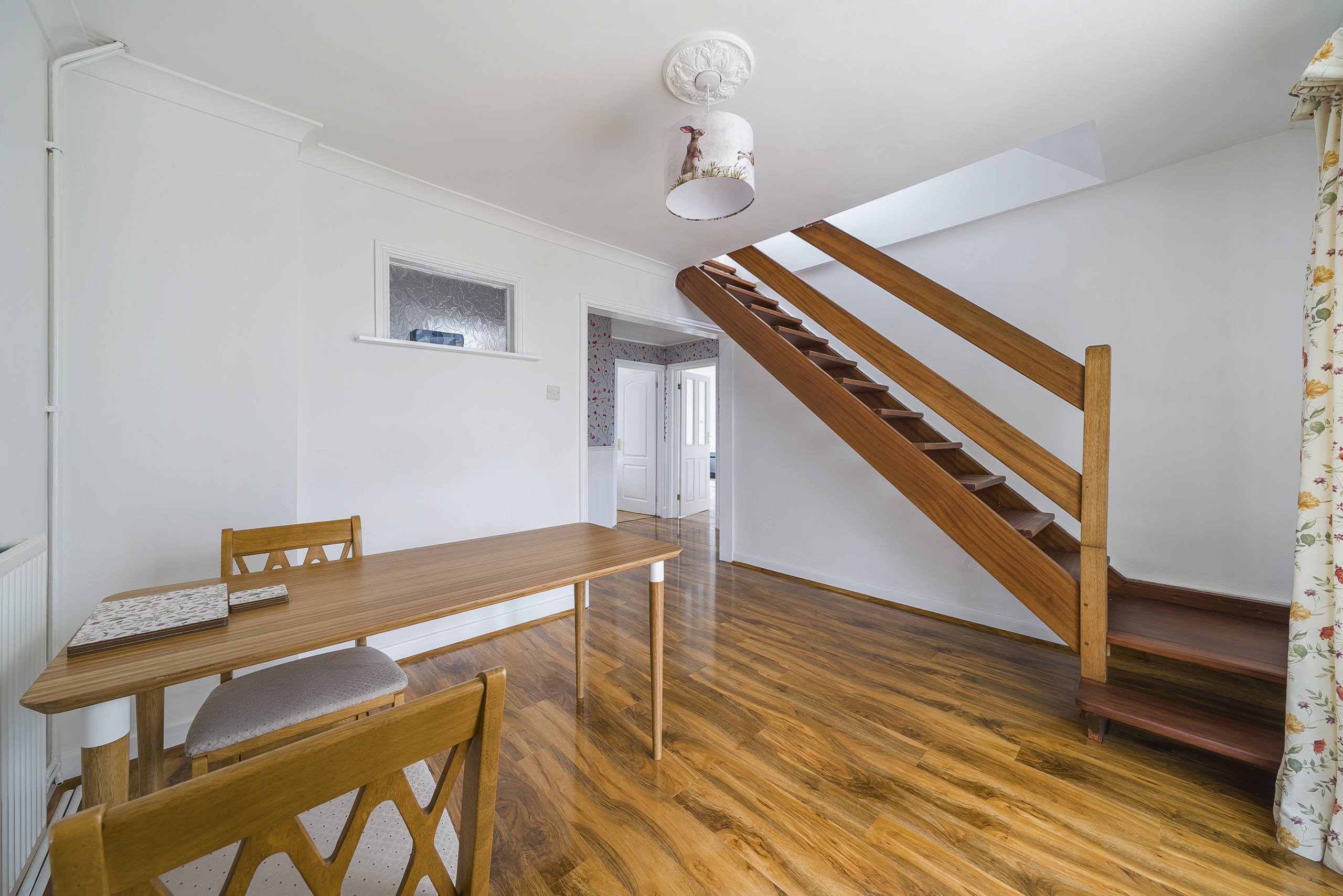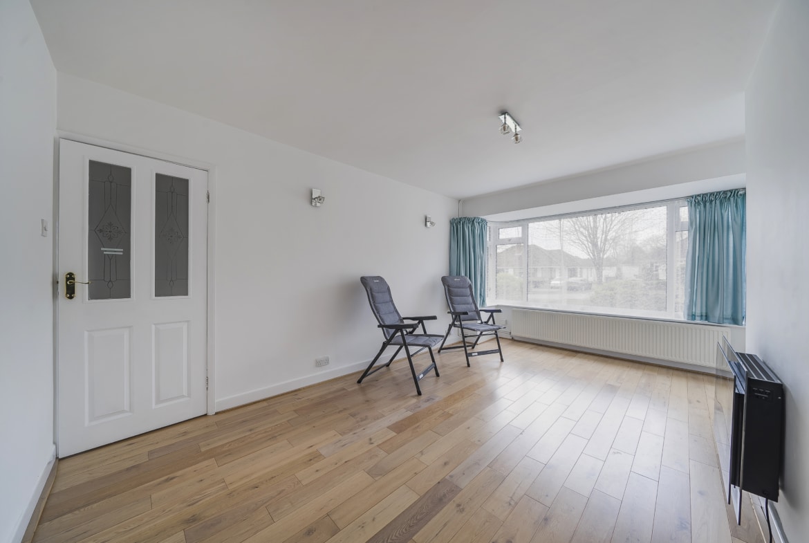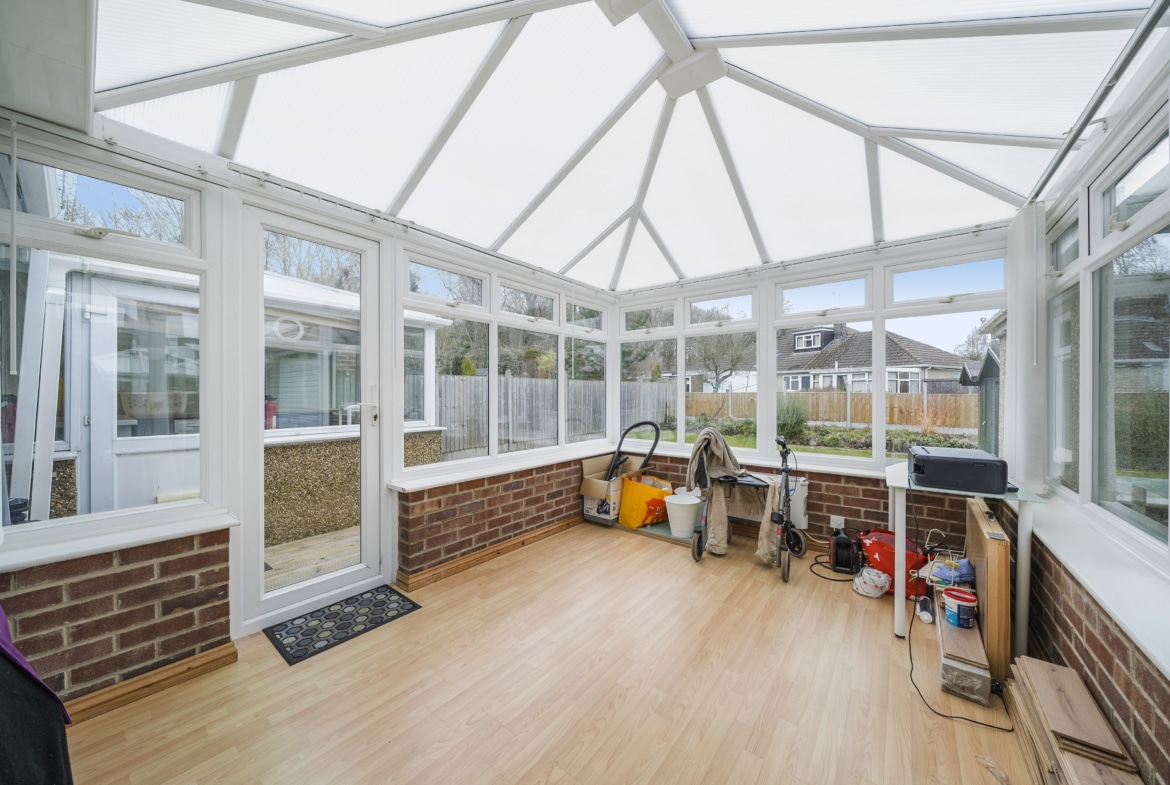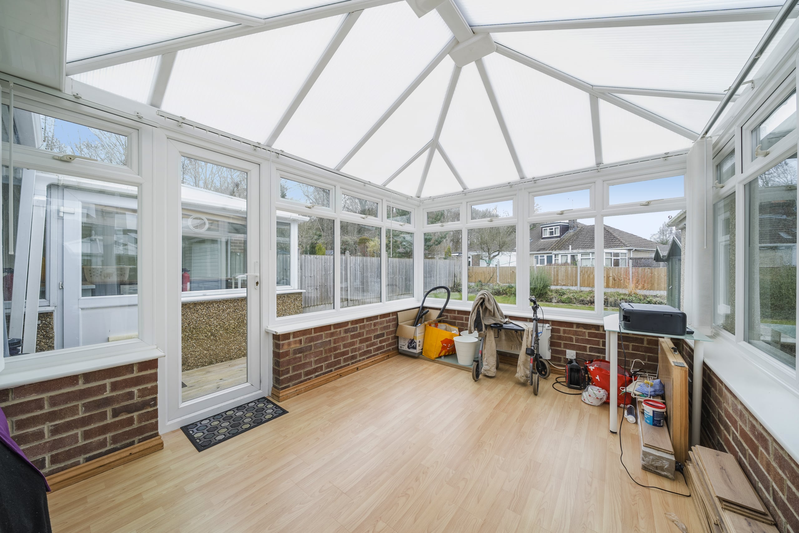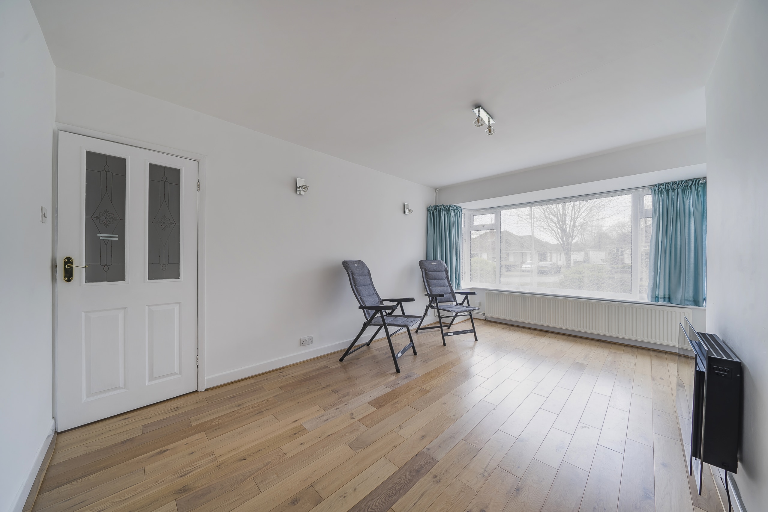 As you approach the front the property you will see it has a large front garden, that is set back from the public road. There is off-road parking for cars on the driveway leading to the garage. Upon entry there is a bright entrance hall with doors leading to all ground floor rooms. The Bay window in the living room affords a wonderful view across the front garden, to trees and grass beyond. The open and bright family room has stairs rising to the first floor and wide patio doors to the conservatory. There is a smart, modern re-fitted kitchen, and a door that leads to a second conservatory serving as a utility room.