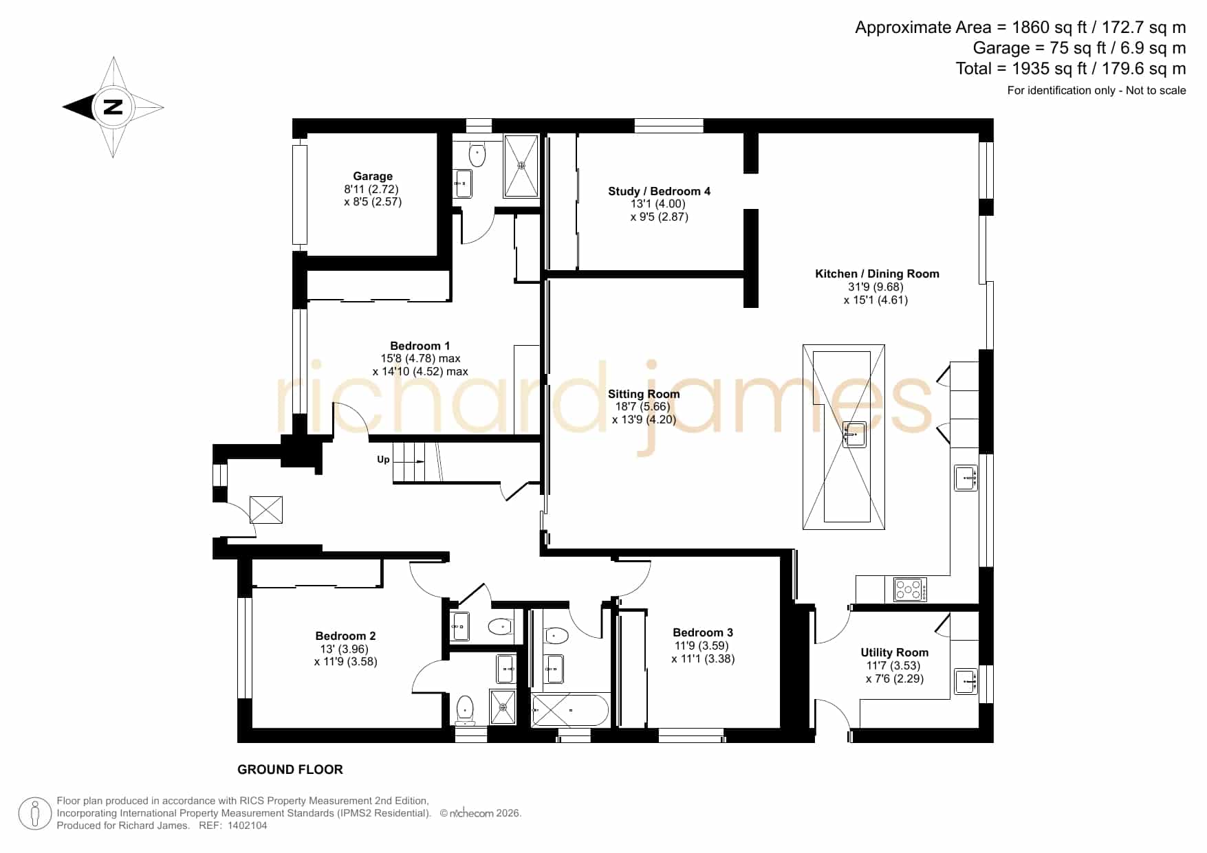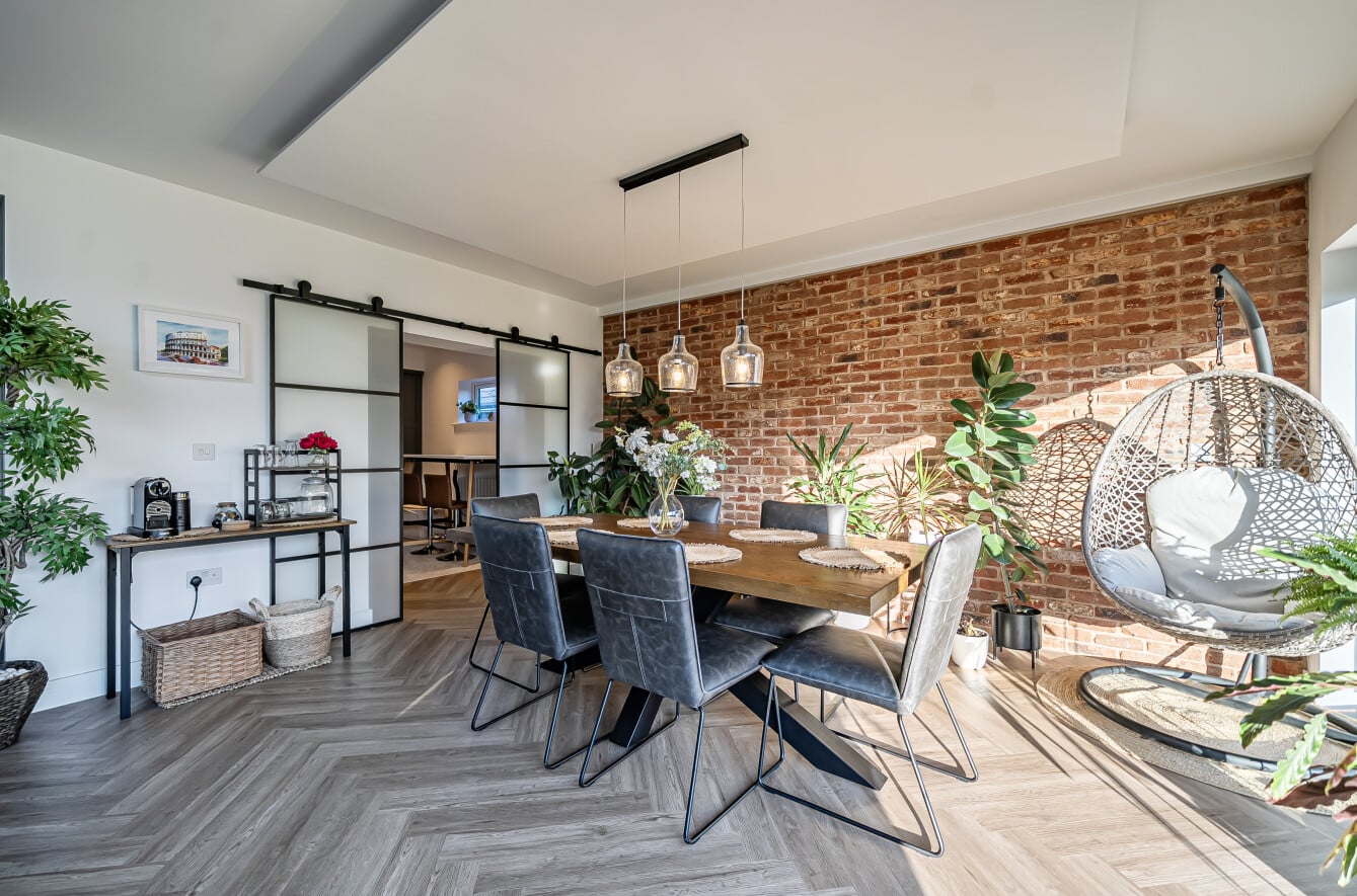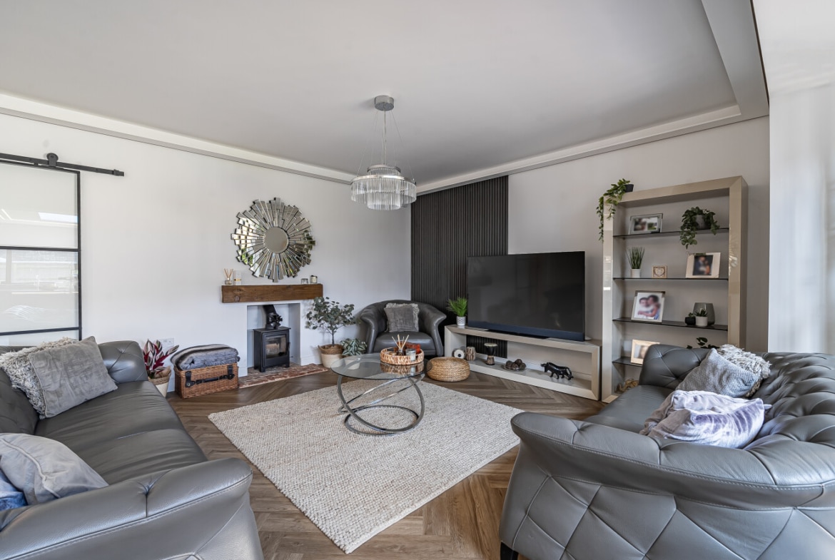 The heart of the home is a stunning open-plan living space flowing seamlessly into a beautifully refitted kitchen and breakfast room, complete with a central island and dedicated dining area, ideal for both everyday family life and entertaining. The property further benefits from uPVC double glazing, gas radiator central heating and underfloor heating to the main living areas.