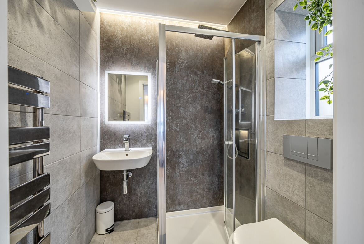 The accommodation is generous and flexible, comprising a spacious principal bedroom with ensuite, a second bedroom also benefitting from its own ensuite, two further well-proportioned bedrooms, and a stylish family bathroom, with the added benefit of a separate wet room, providing a total of three bathrooms.