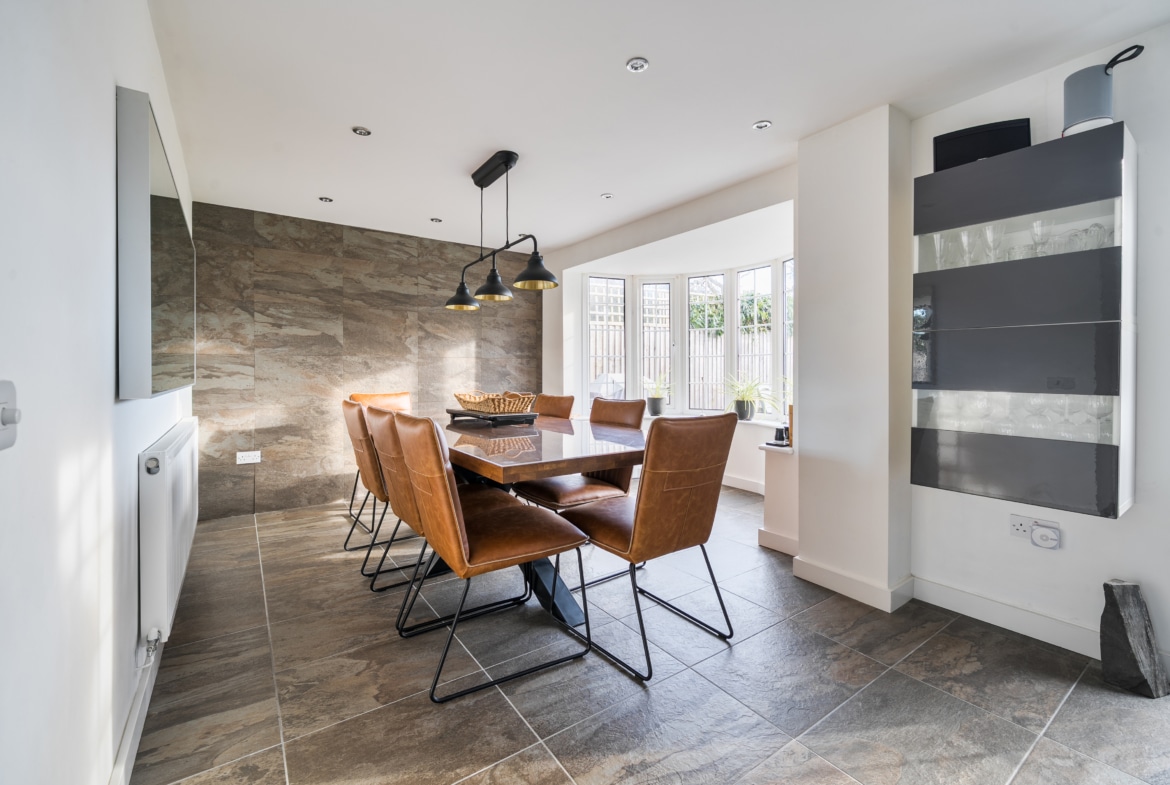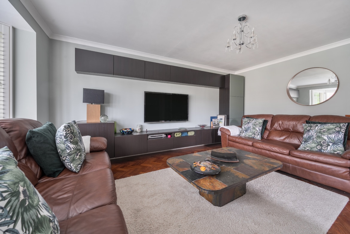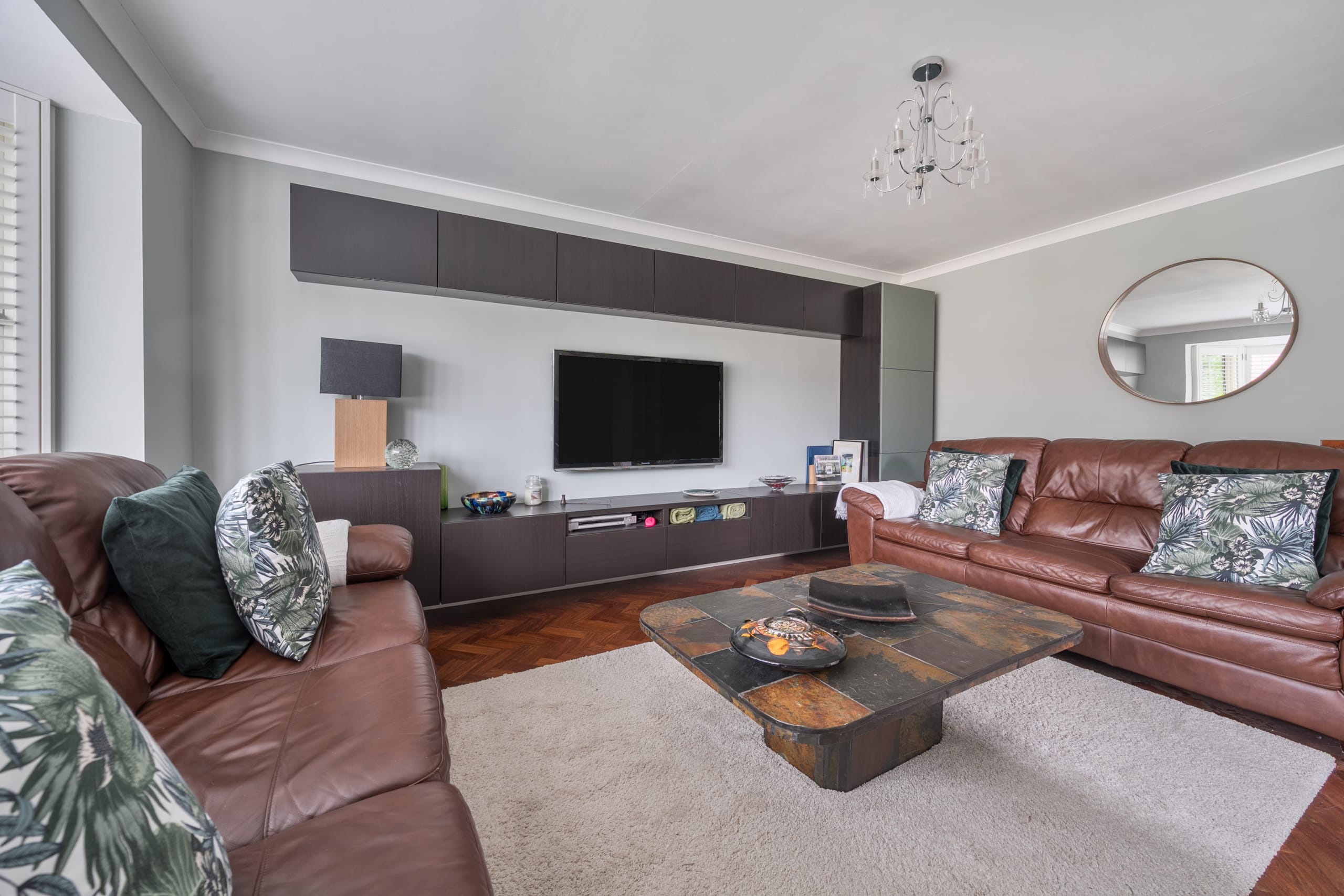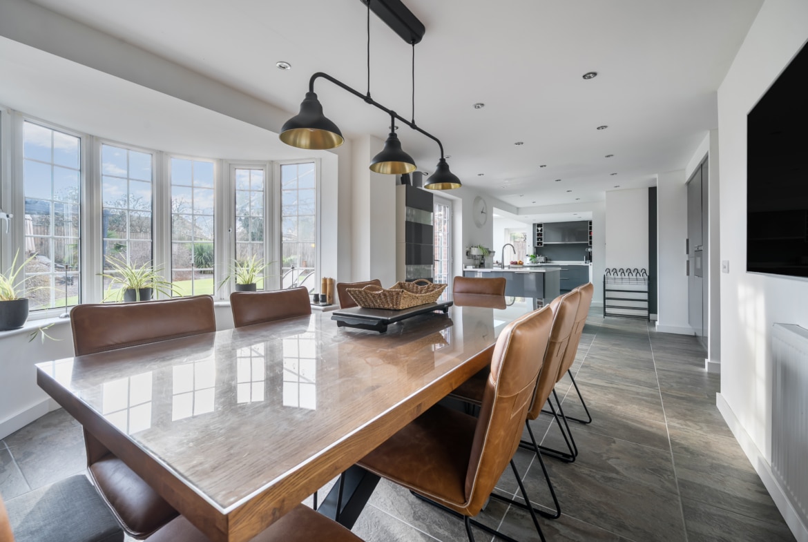 The immaculately presented accommodation now includes: impressive Hall with solid wood parquet style flooring which continues through the glazed double doors into the 19′ Sitting Room with bay window, refitted Cloakroom and the stunning 21′ open plan Dining Room with bay window overlooking the gardens and then leads into the refitted 19′ Kitchen/Family Room, with modern units and integrated appliances, island unit with seating under, making this an ideal entertaining space, which also features an Orangery style roof and bi-folding doors opening onto the patio. The ground floor is completed with a separate Utility Room and useful Lobby, giving additional access from the drive.