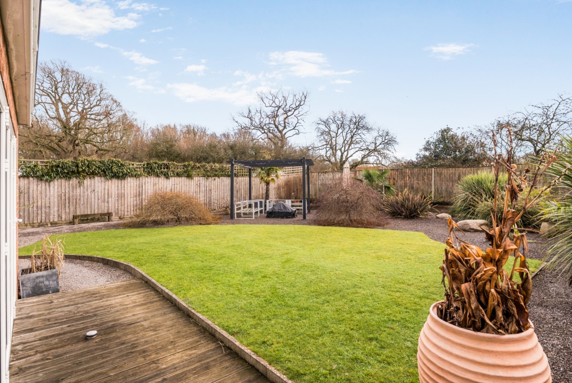 Further features include a generous sized front garden laid predominantly to lawn, with driveway leading to the property, providing ample off road parking and leads to the Garage. To the Rear, there is a large mature enclosed garden, which enjoys a sunny south facing aspect, with stone chipped and decked seating area leading out from the house and opens to the lawn. Large area to rear laid to stone chippings with selection of grasses and shrubs, pergola and all enclosed by timber fencing, with additional area to side.