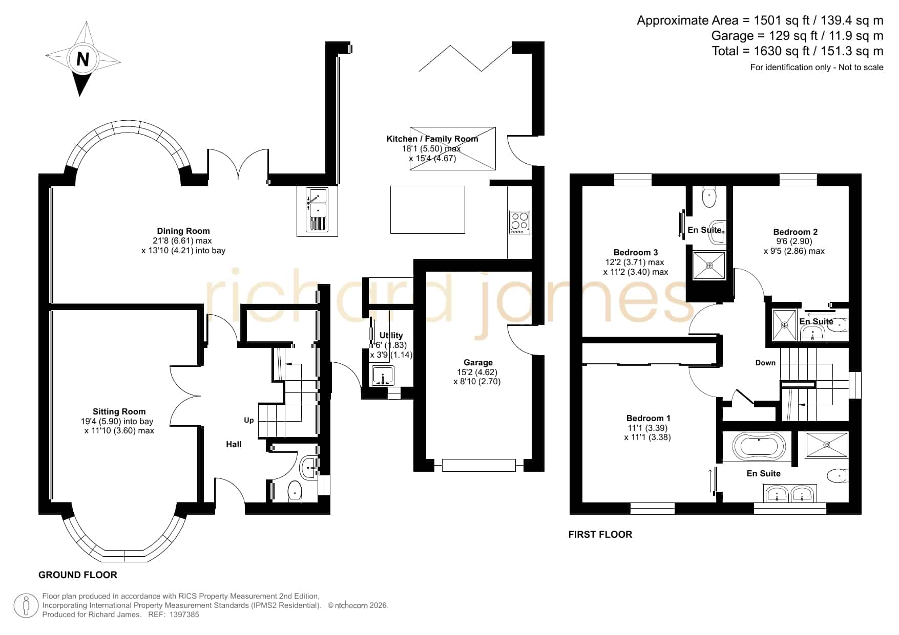 The first floor has been extensively re-modelled and now features Three double Bedrooms, all enjoying their own En-suite facilities. With Bedroom One also benefitting from wall length built-in wardrobes and four piece Ensuite Bathroom.