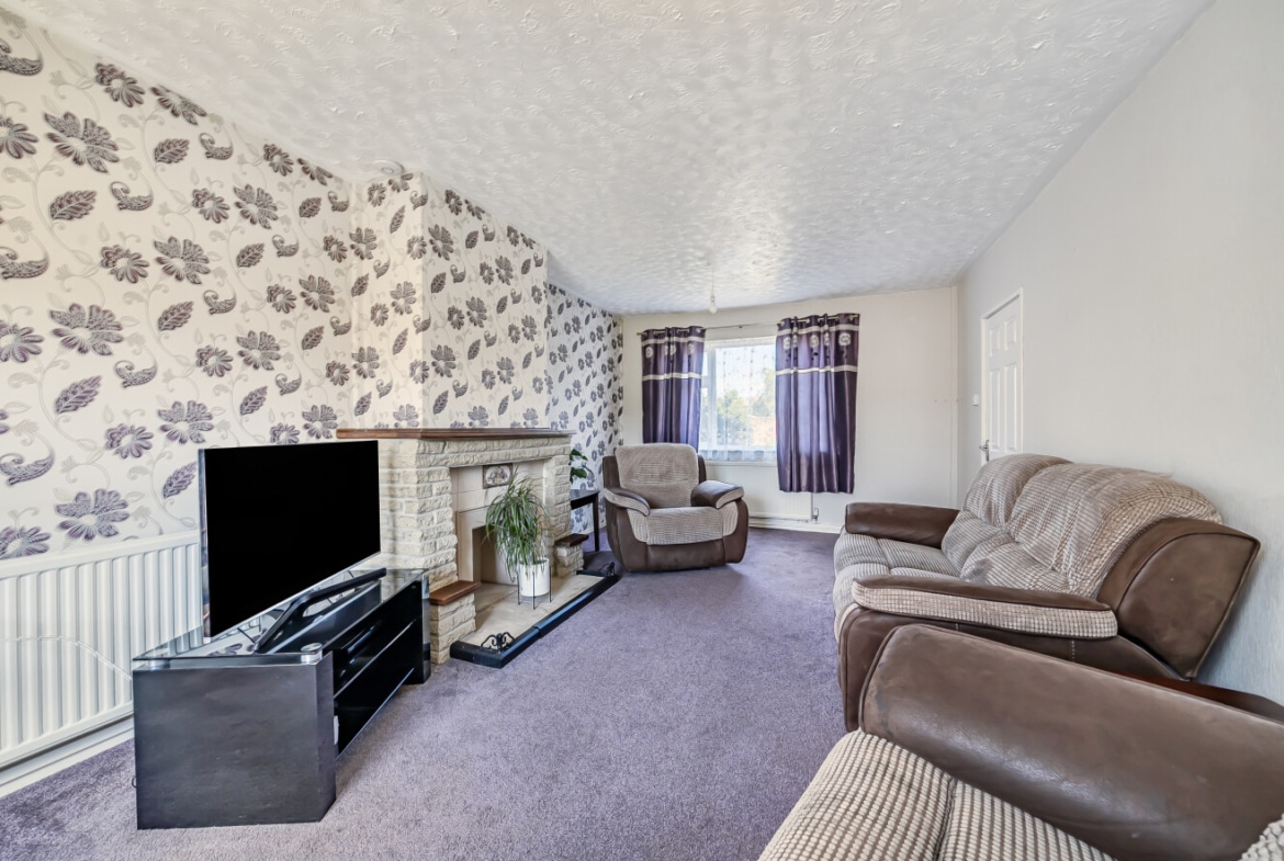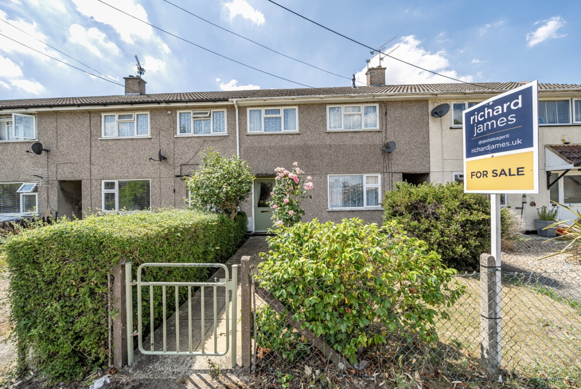 Chain-free 3-bedroom terraced home featuring a kitchen, open-plan living/dining area, two double bedrooms, a family bathroom, and private front and rear gardens with outdoor storage. Ideal for families or first-time buyers. New to the market – don’t miss out!