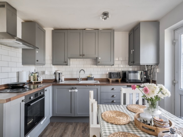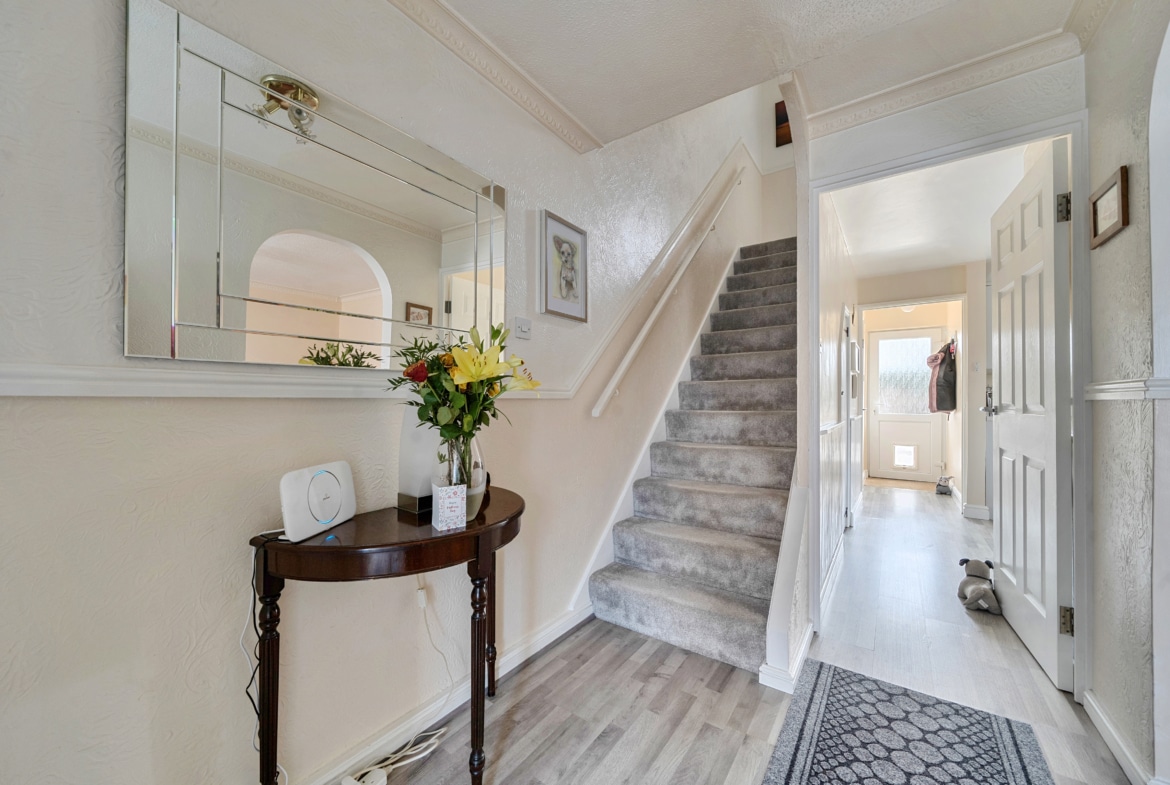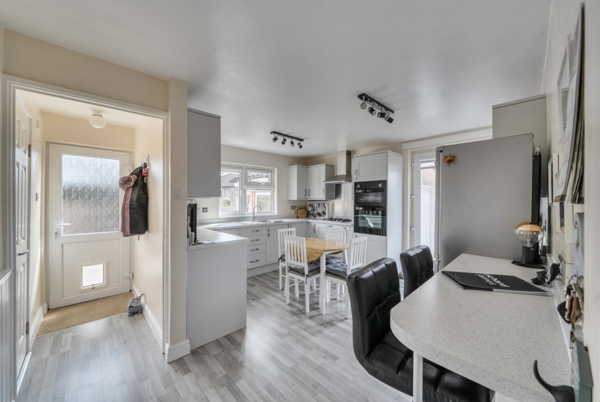 Nestled within a peaceful cul-de-sac, this much-improved three-bedroom end of terrace home offers a harmonious blend of comfort and modern living. Upon entering, you are greeted by a spacious entrance porch, a practical area for shedding coats and shoes. To the right, the generously sized living room beckons, providing a warm and inviting space for relaxation and entertaining. At the rear, the updated kitchen diner boasts great views of the private rear garden. This delightful space also offers the convenience of direct access to outside parking through a set of patio doors. Additional downstairs amenities include bathroom facilities and also provide easy access to the well-maintained garden.