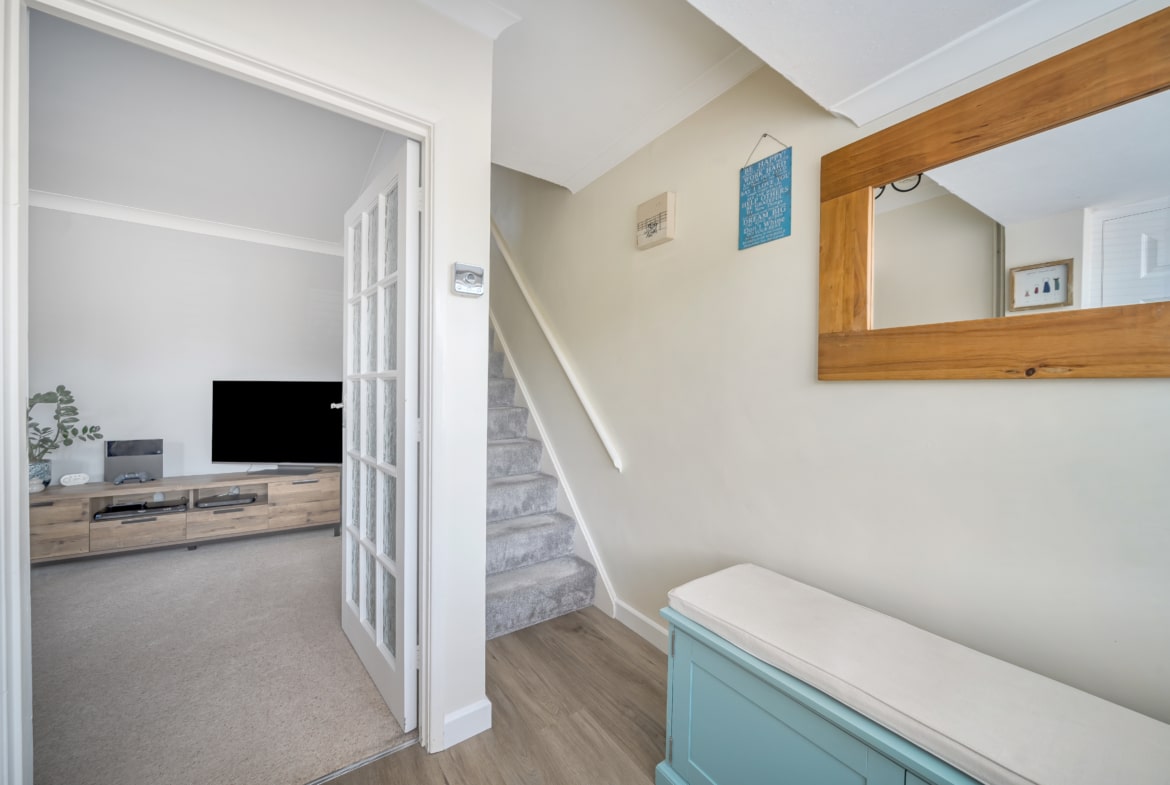 Upstairs, the property offers three well-proportioned bedrooms, including two spacious doubles and a third single bedroom ideal as a home office or nursery. The family bathroom completes the first-floor layout.