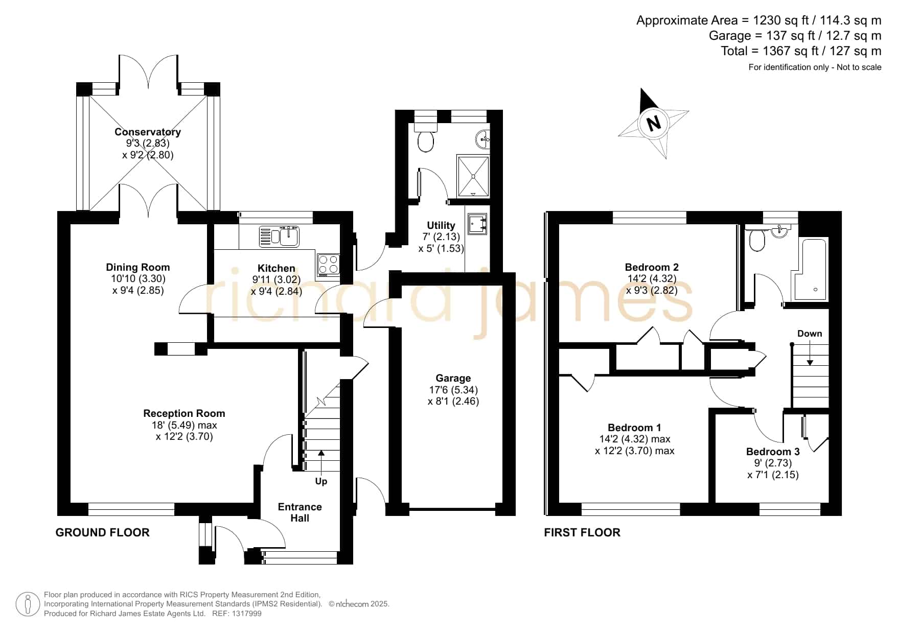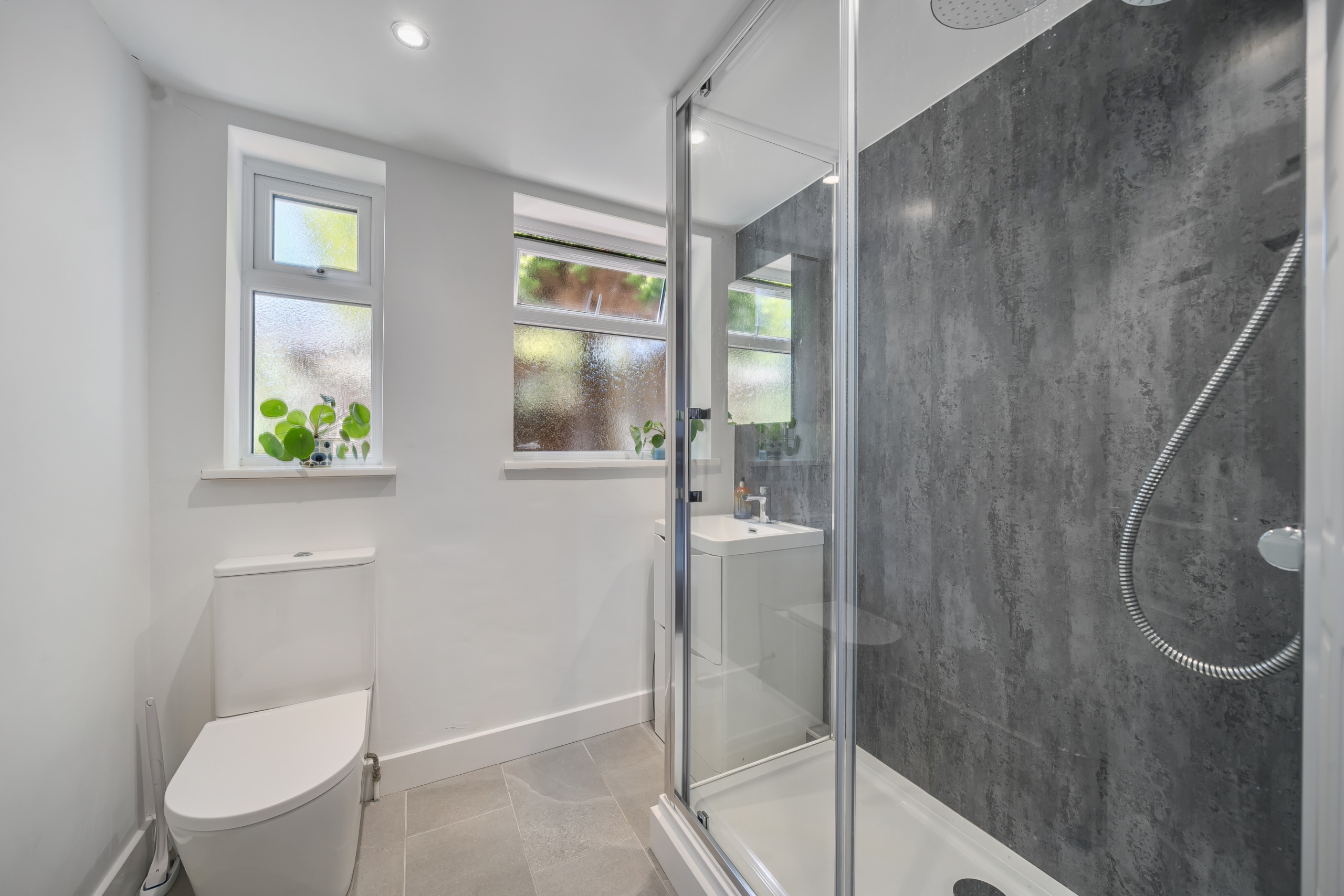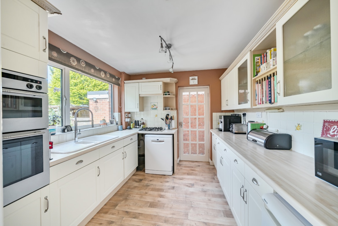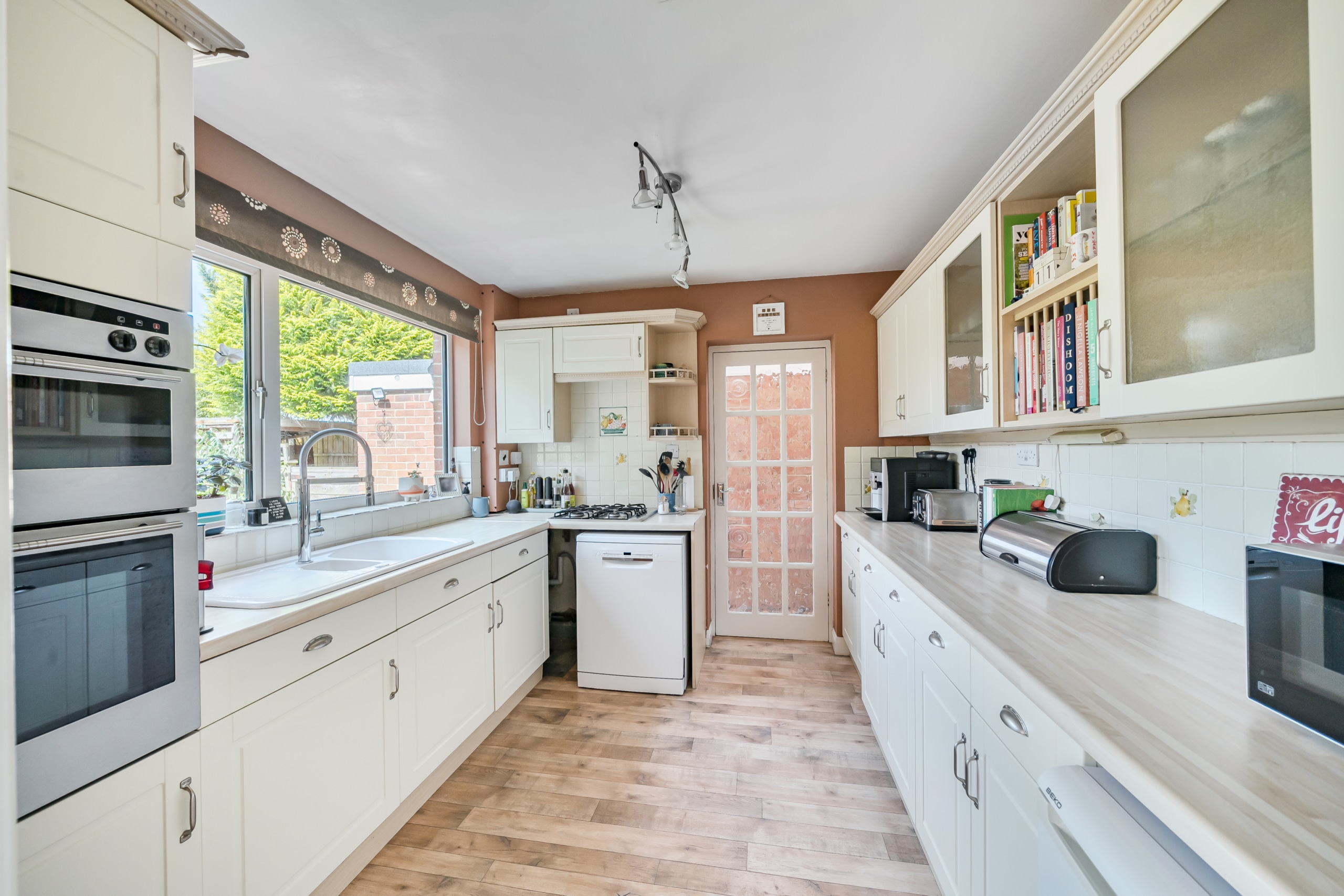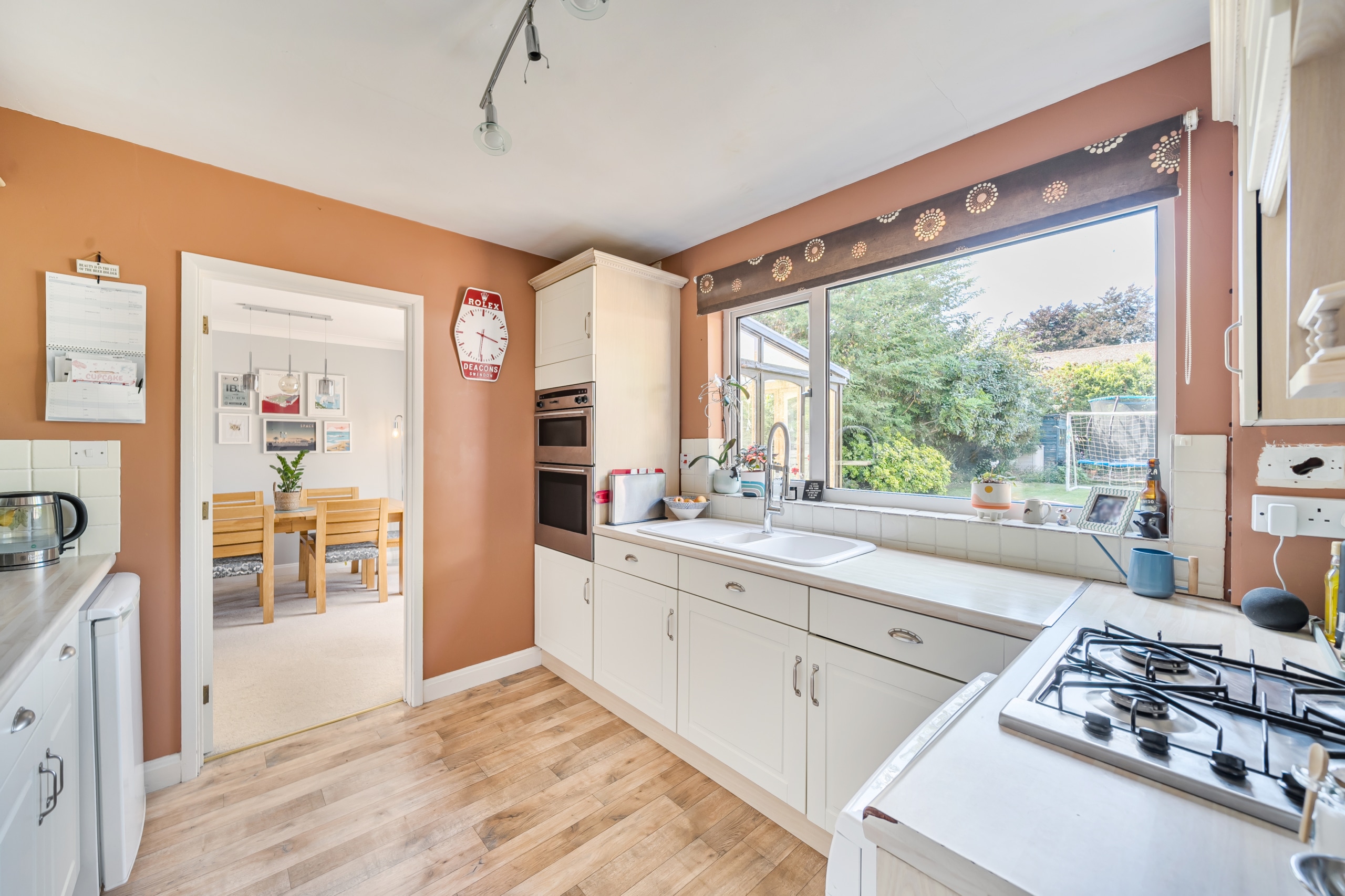 The well-appointed kitchen, overlooking the rear garden, offers plentiful storage, integrated appliances, and generous worktop space—perfect for home cooking. Adjacent to the kitchen is a practical utility room and ground-floor shower room, with internal access to the garage, adding everyday convenience.
